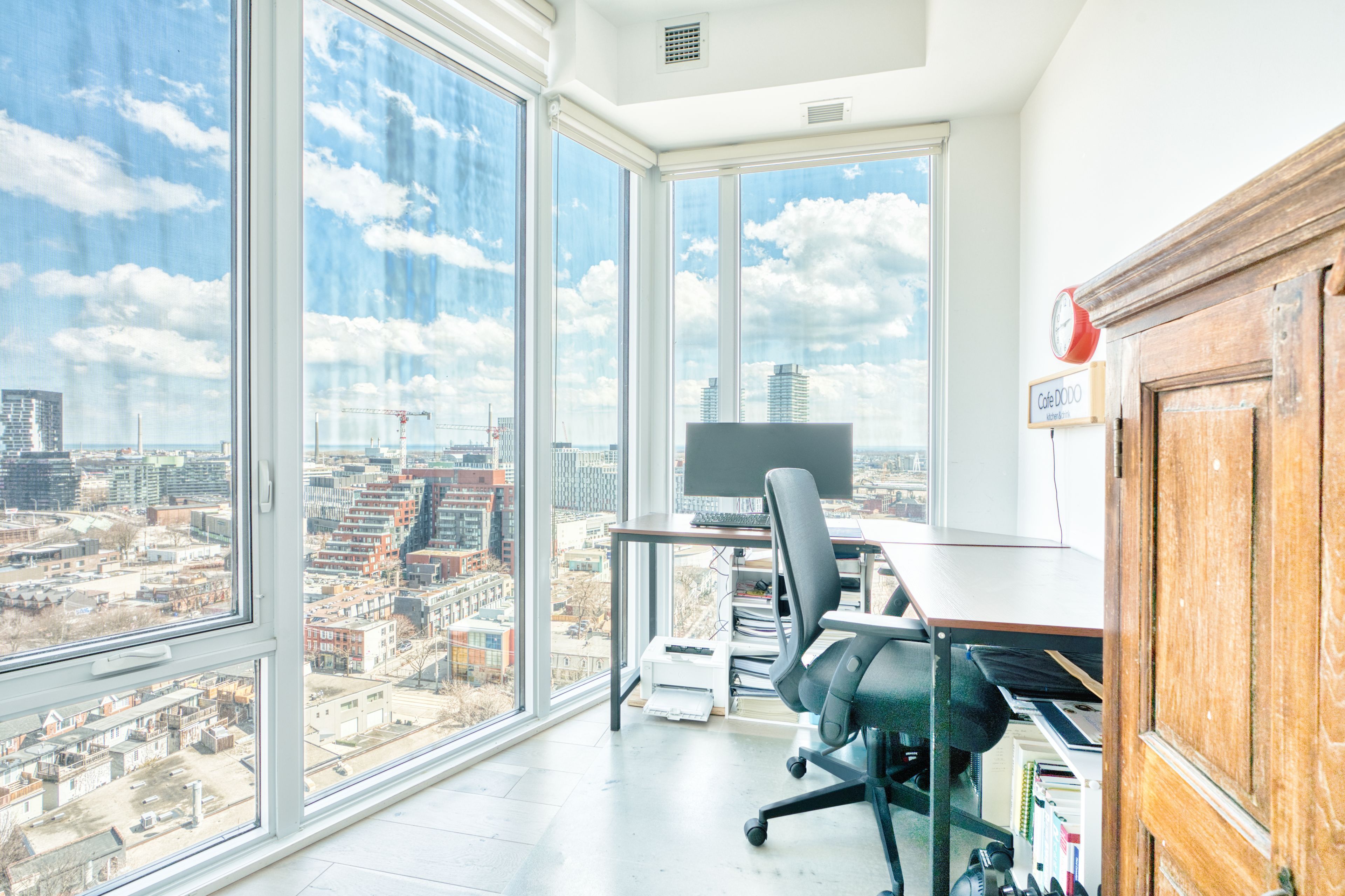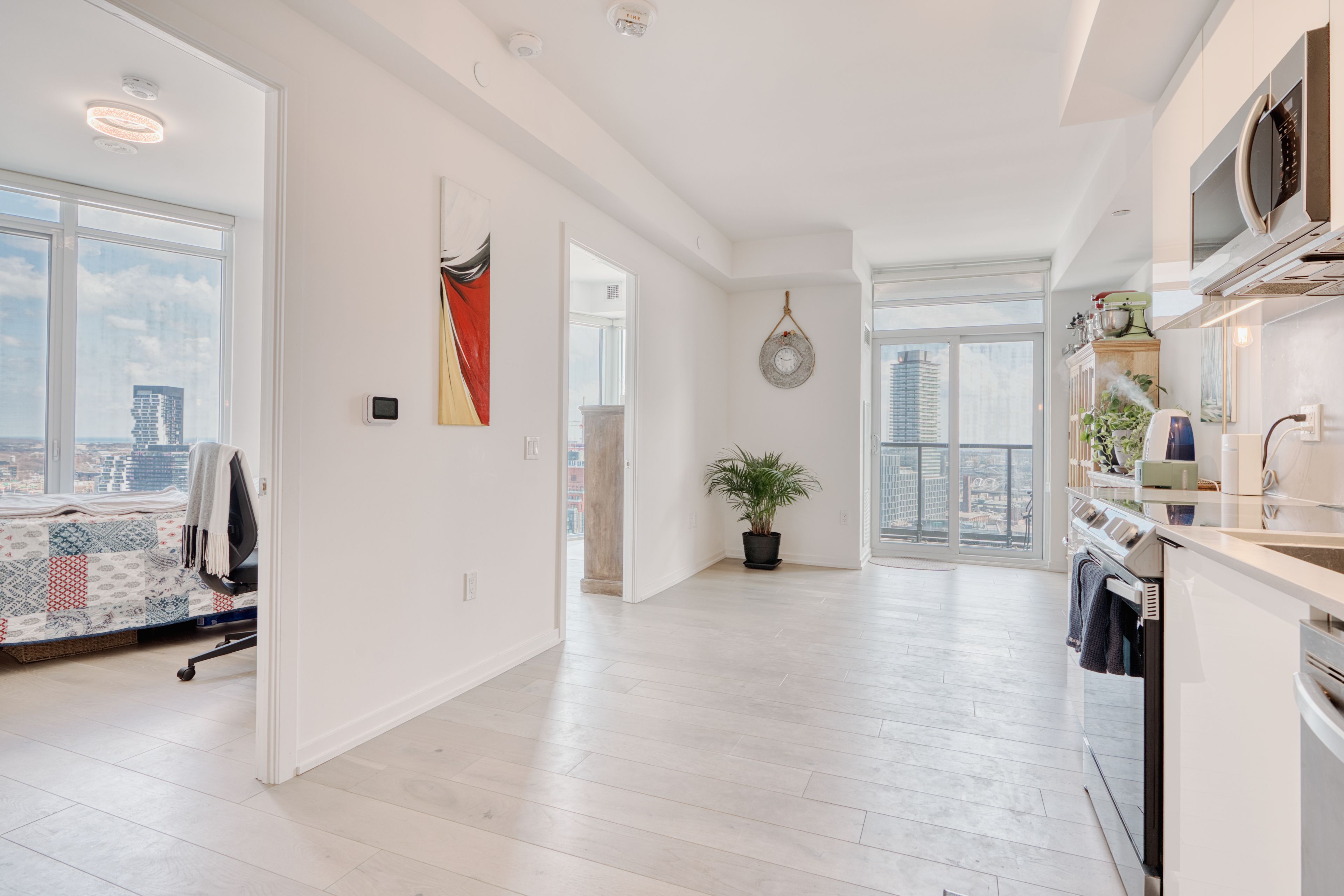Rarely available three-bedroom, two-bathroom corner suite at home power & adelaide. This thoughtfully designed residence offers a highly functional layout ideal for urban families or investors seeking strong rental potential. Expansive floor-to-ceiling windows frame unobstructed panoramic views, filling the space with natural light throughout the day and enhancing the open-concept living environment. Located in the heart of corktown, this home combines great gulf's proven track record of quality with exceptional connectivity-just steps to the distillery district, future ontario line, and quick access to the dvp. A compelling opportunity for buyers who value space, light, and long-term upside in a dynamic downtown setting. ***** virtual tour available *****