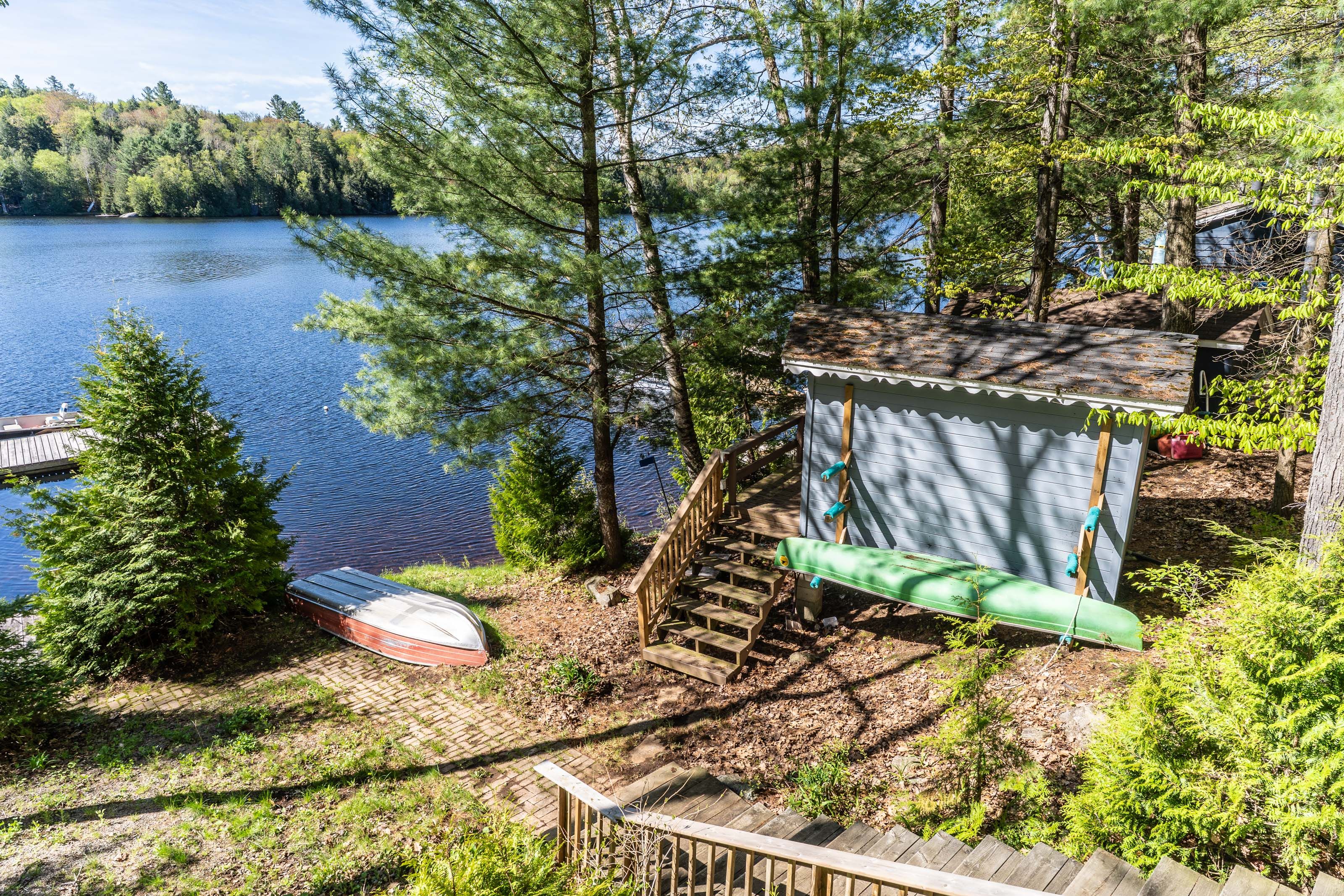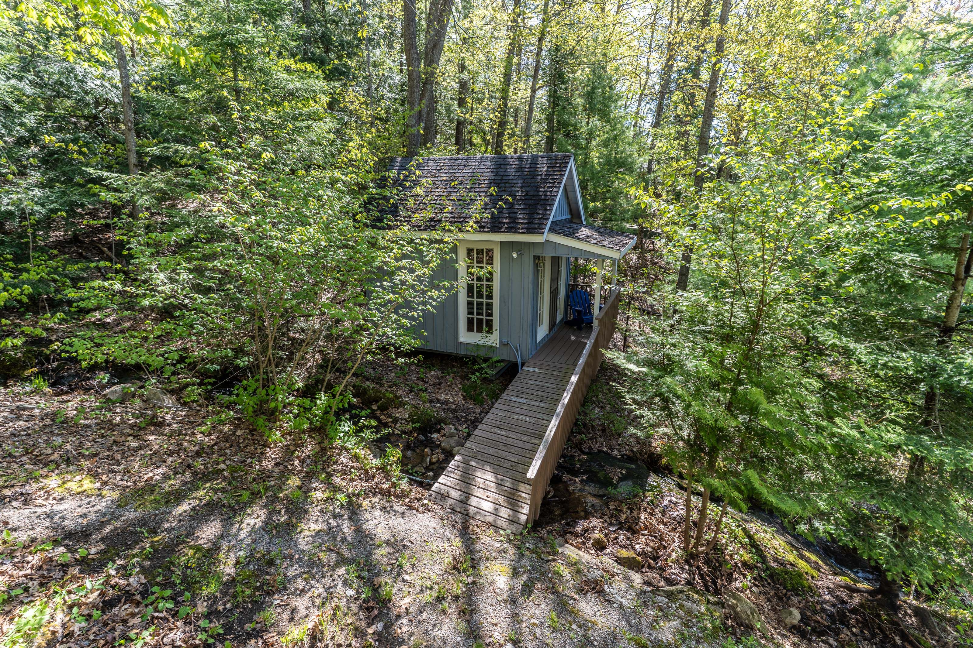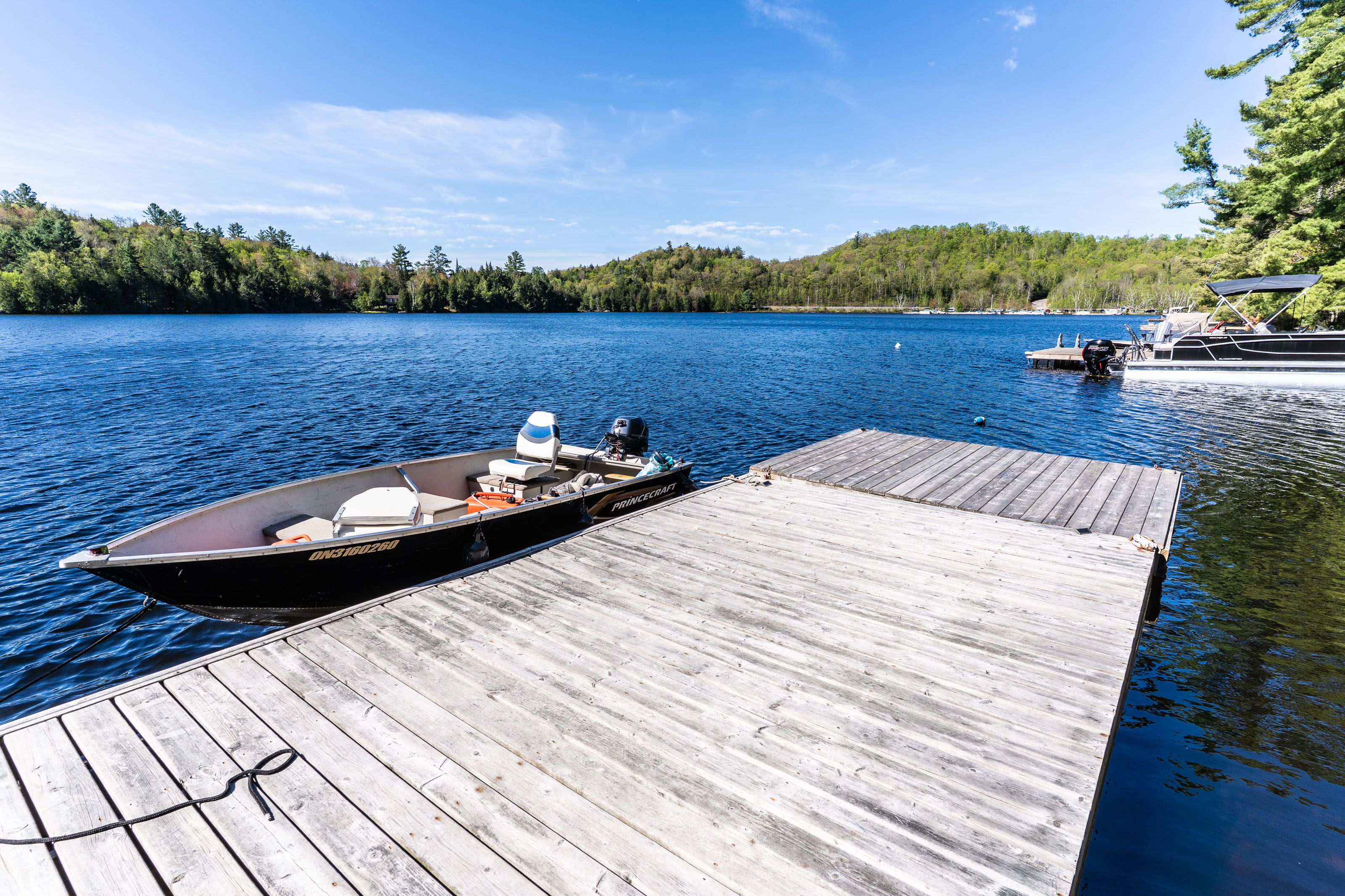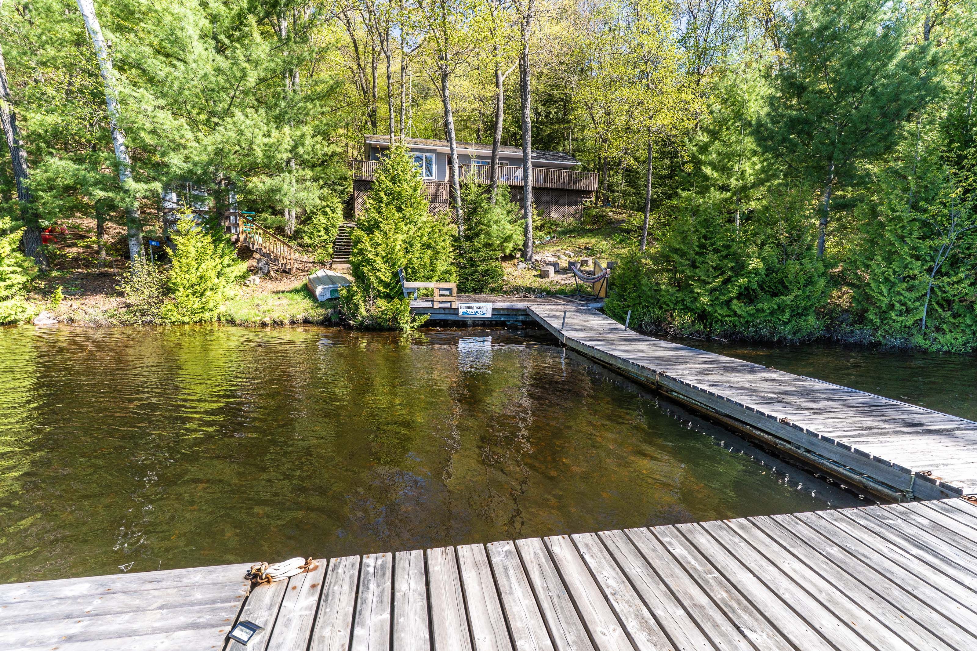Charming waterfront retreat on raven lake. Fully furnished! Welcome to your private lakeside paradise with 141 feet of waterfront on sought-after raven lake. Set in a tranquil bay, just a short 1-minute boat ride from your own private boat slip, this fully furnished 3-bedroom cottage + large bunkie offers the perfect blend of rustic charm and modern comfort. The main cottage features an open-concept layout with stunning lake views from the kitchen and living room with a walkout to a large sundeck. The primary bedroom is executive-size, and all bedrooms boast new laminate flooring (installed 2 years ago). A quaint stream with a picturesque bridge runs through the property from spring until late july, adding to the serene ambiance. Professionally rebuilt over the last 25 years and supported by solid concrete and wooden piers. Electric baseboard heaters and a cozy wood stove provide warmth throughout. A 3-piece bathroom with laundry, fully equipped kitchen and pine accents enhance the cottage vibe. There is a water purification system (with uv and reverse osmosis) and septic system. High speed internet is available, and newer appliances and furnishings are included. Outdoors, enjoy a large deck wrapping around the front and sides of the cottage, perfect for soaking in gorgeous lake views and nature. The property includes a cedar sauna in the pump house, a spacious workshop man cave with fridge and workbench and a large wooden l-shaped dock with a swim ladder. Bonus: ownership includes a transferable membership and dock slip with raven lake dock association (valued at ~$10,000 & annual fees of $700). Only 5 minutes to dorset, 30 min to huntsville & minden and 45 min to bracebridge and algonquin park. This turn-key property is ready for you - just bring your suitcase and start your memories here!