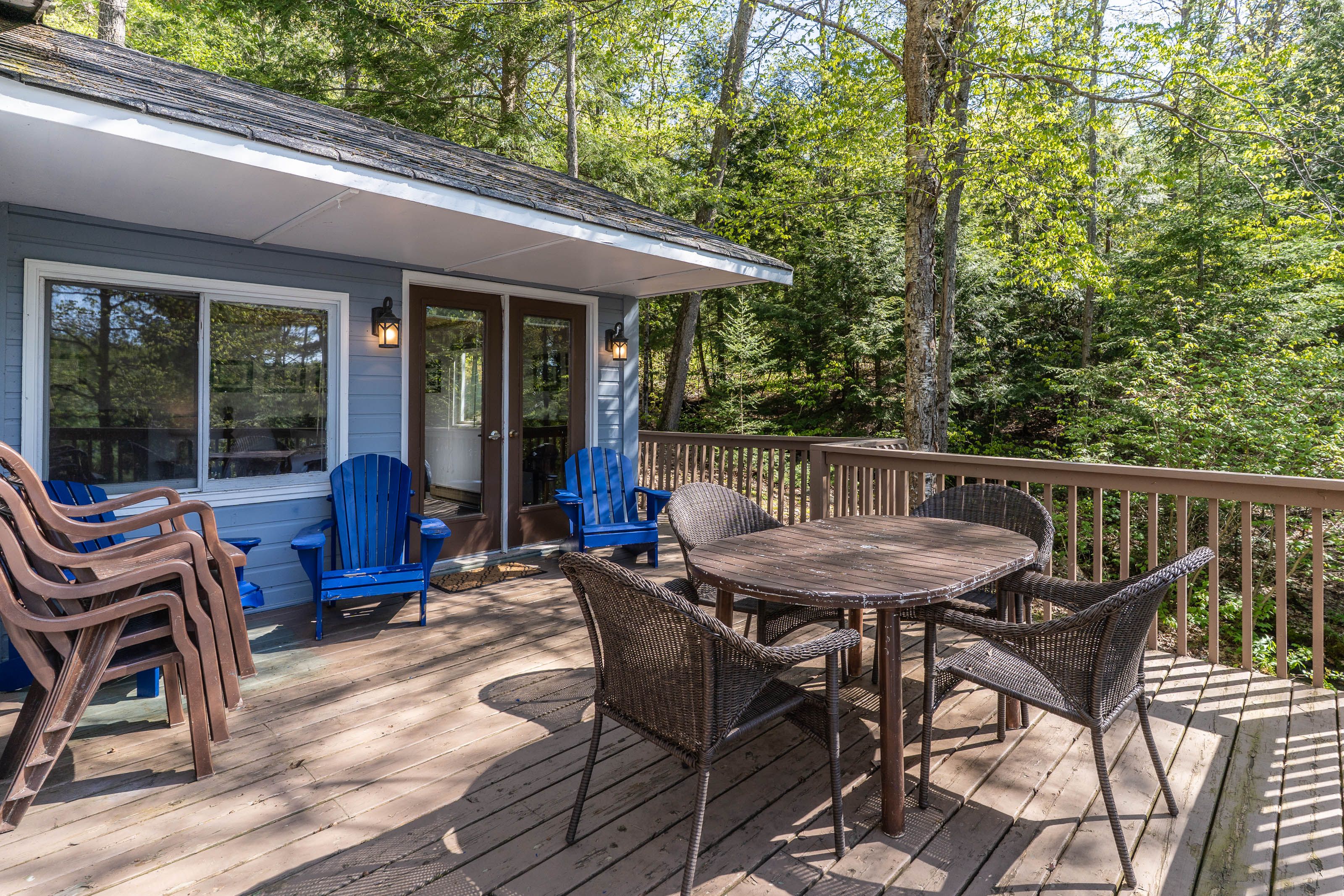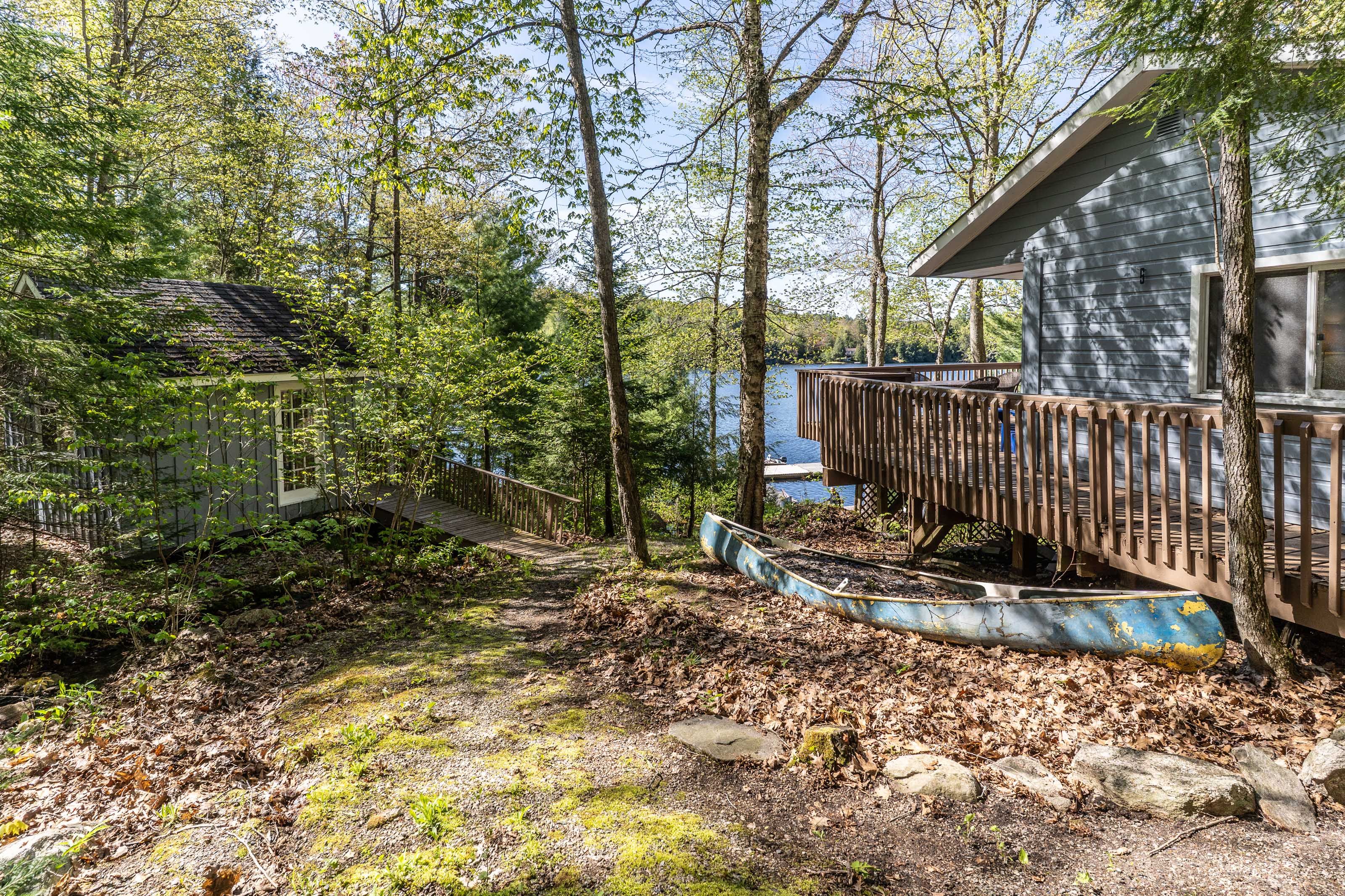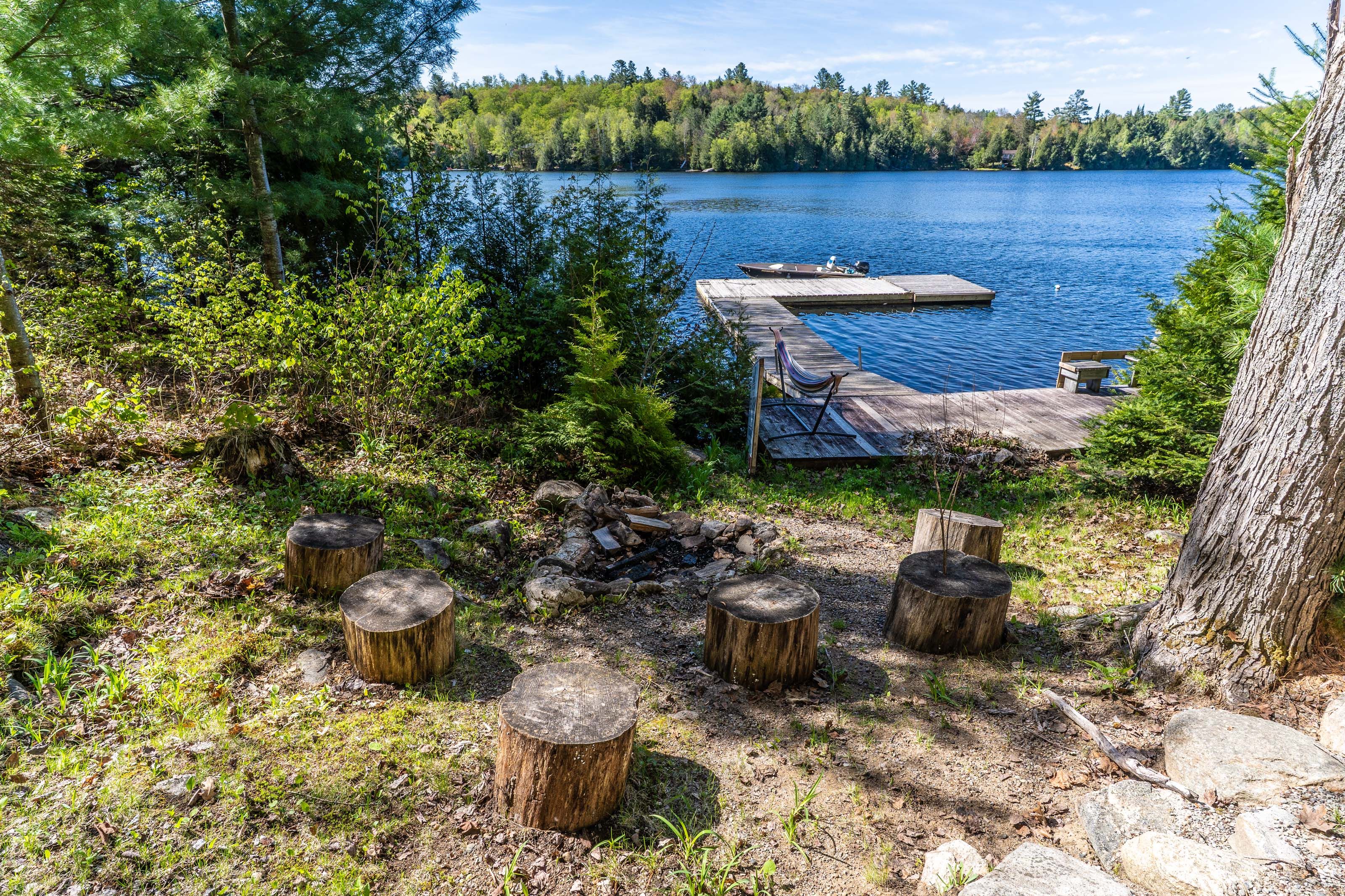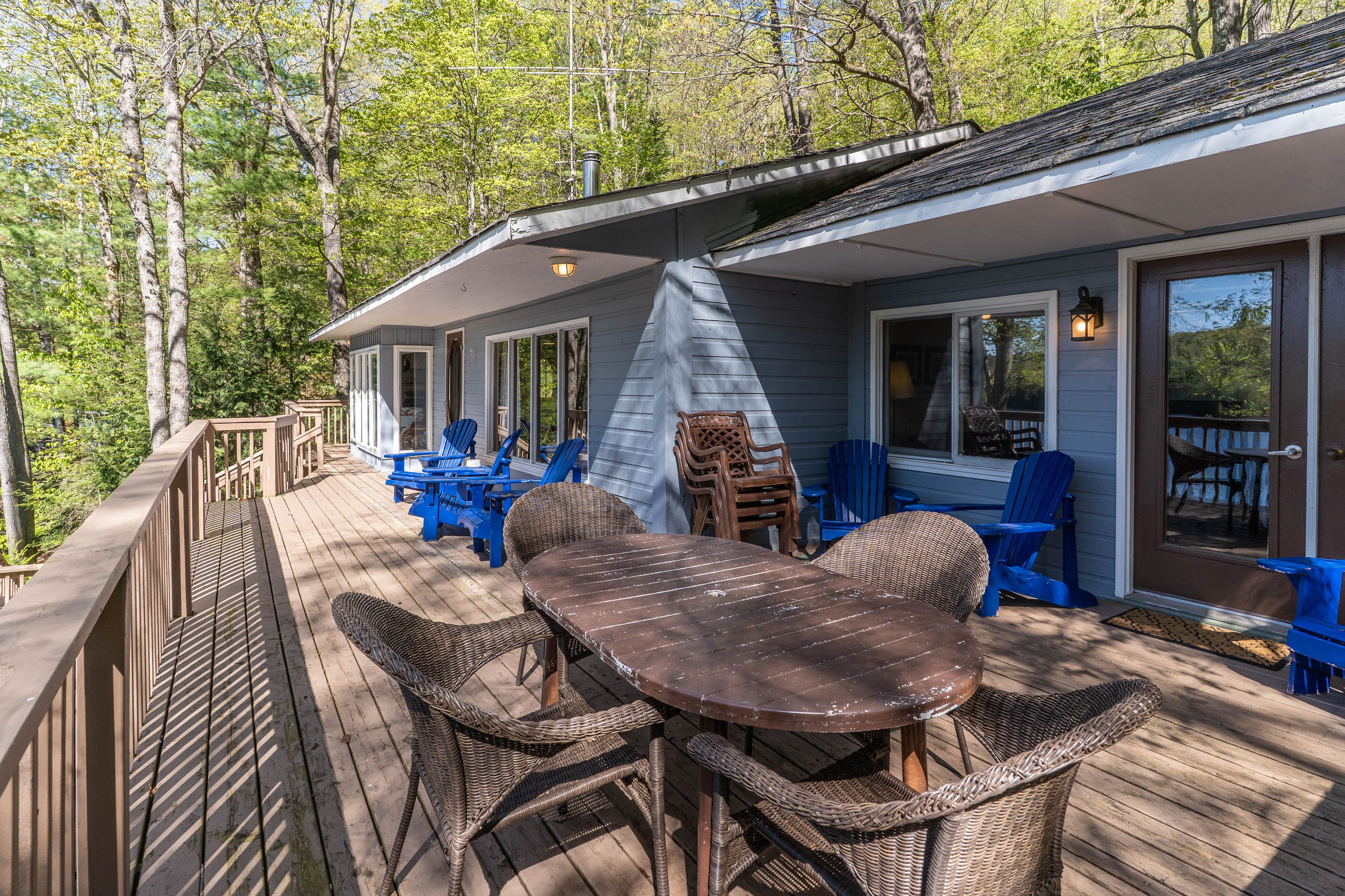 Charming waterfront retreat on raven lake. Fully furnished! Welcome to your private lakeside paradise with 141 feet of waterfront on sought-after raven lake. Set in a tranquil bay, just a short 1-minute boat ride from your own private boat slip, this fully furnished 3-bedroom cottage + large bunkie offers the perfect blend of rustic charm and modern comfort. The main cottage features an open-concept layout with stunning lake views from the kitchen and living room with a walkout to a large sundeck. The primary bedroom is executive-size, and all bedrooms boast new laminate flooring (installed 2 years ago). A quaint stream with a picturesque bridge runs through the property from spring until late july, adding to the serene ambiance. Professionally rebuilt over the last 25 years and supported by solid concrete and wooden piers. Electric baseboard heaters and a cozy wood stove provide warmth throughout. A 3-piece bathroom with laundry, fully equipped kitchen and pine accents enhance the cottage vibe. There is a water purification system (with uv and reverse osmosis) and septic system. High speed internet is available, and newer appliances and furnishings are included. Outdoors, enjoy a large deck wrapping around the front and sides of the cottage, perfect for soaking in gorgeous lake views and nature. The property includes a cedar sauna in the pump house, a spacious workshop man cave with fridge and workbench and a large wooden l-shaped dock with a swim ladder. Bonus: ownership includes a transferable membership and dock slip with raven lake dock association (valued at ~$10,000 & annual fees of $700). Only 5 minutes to dorset, 30 min to huntsville & minden and 45 min to bracebridge and algonquin park. This turn-key property is ready for you - just bring your suitcase and start your memories here!