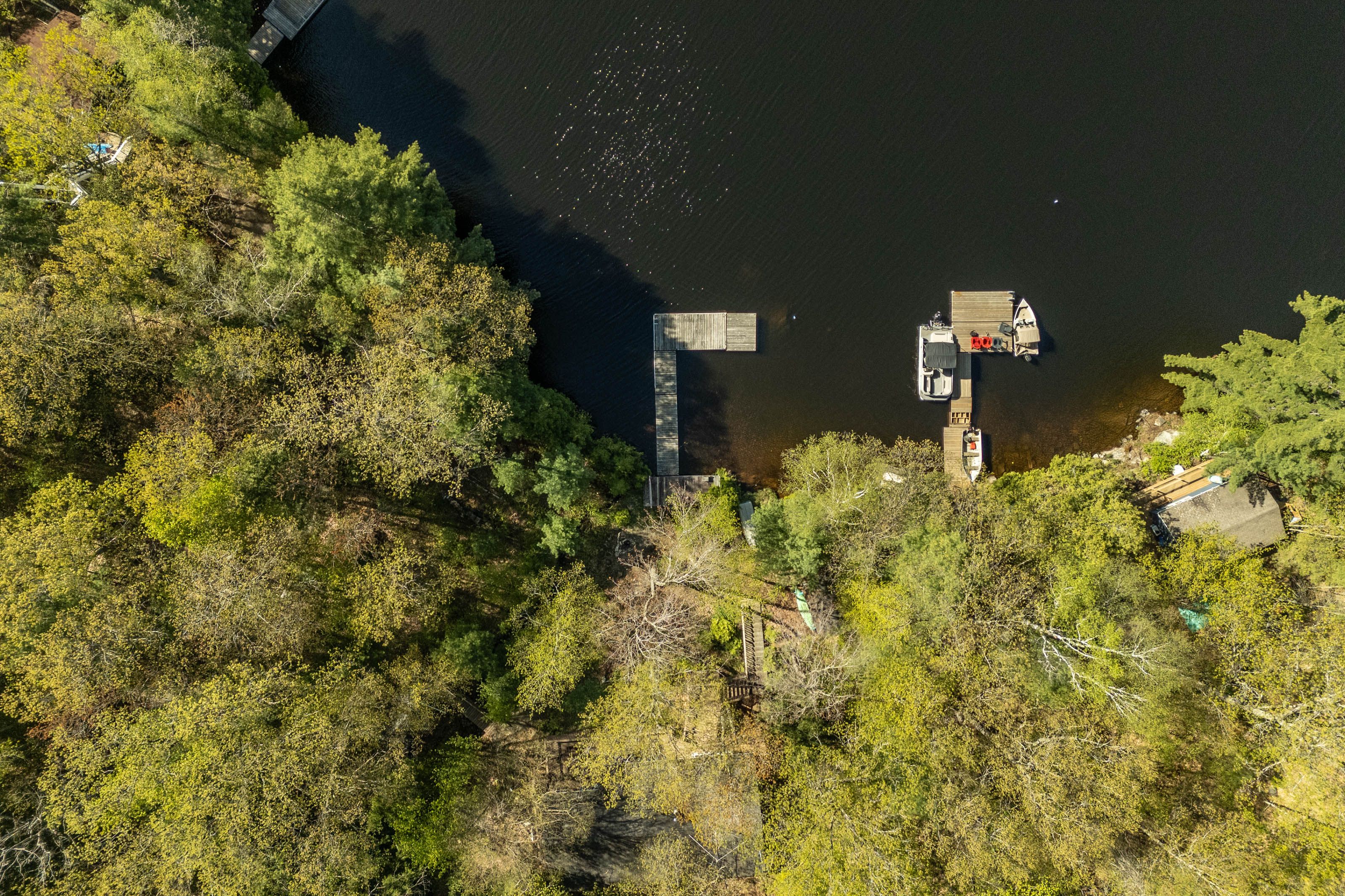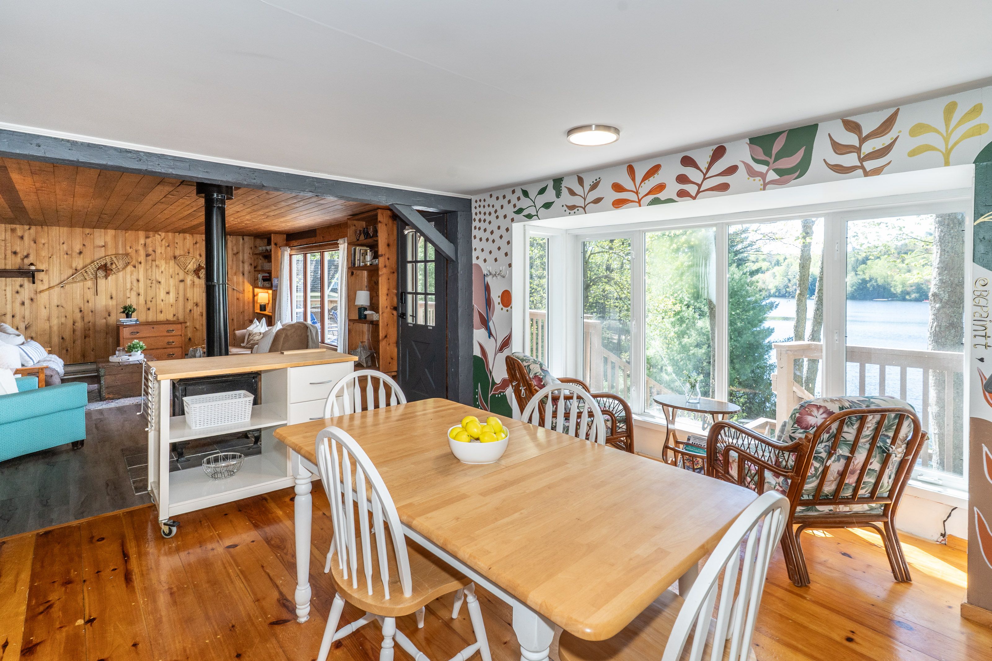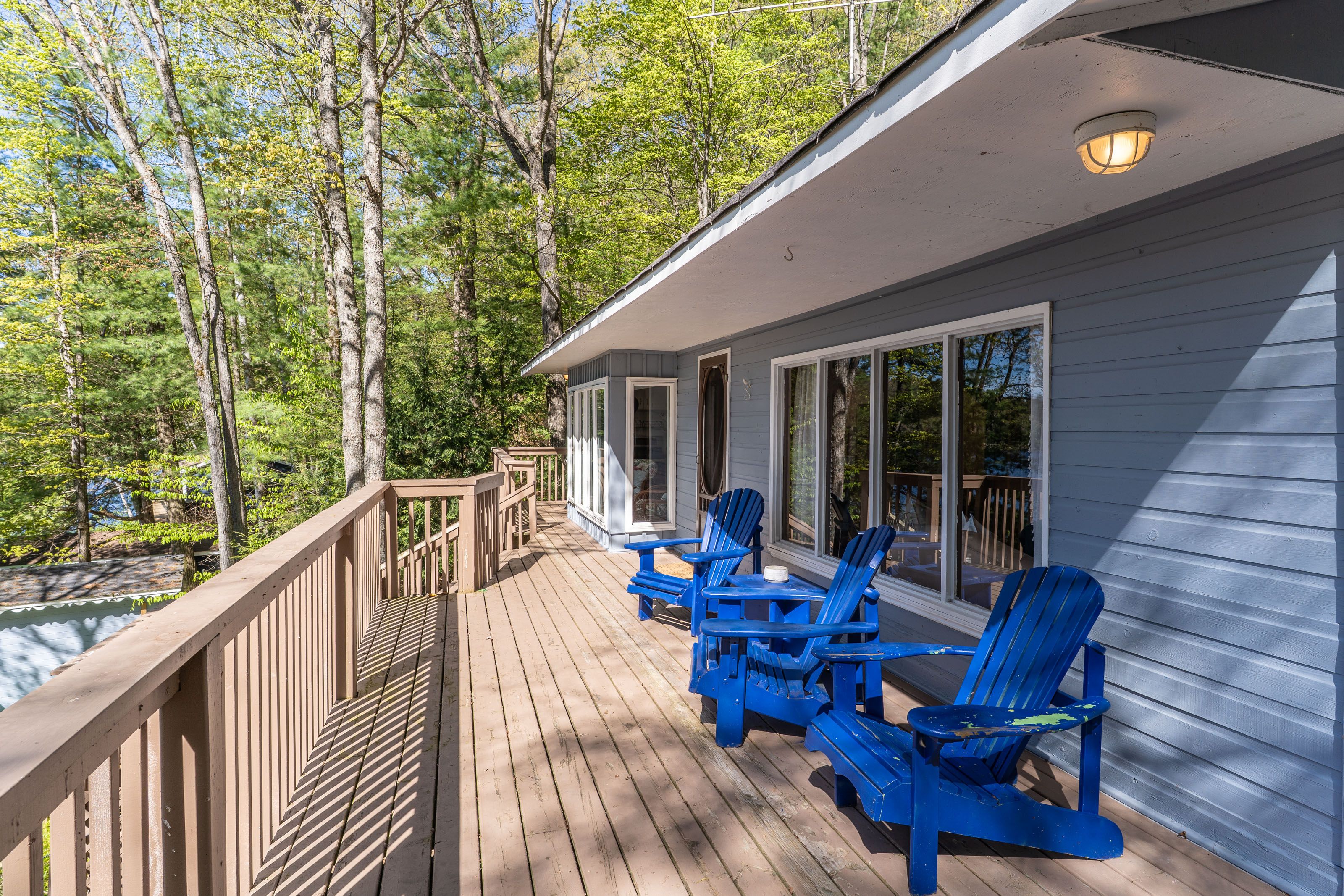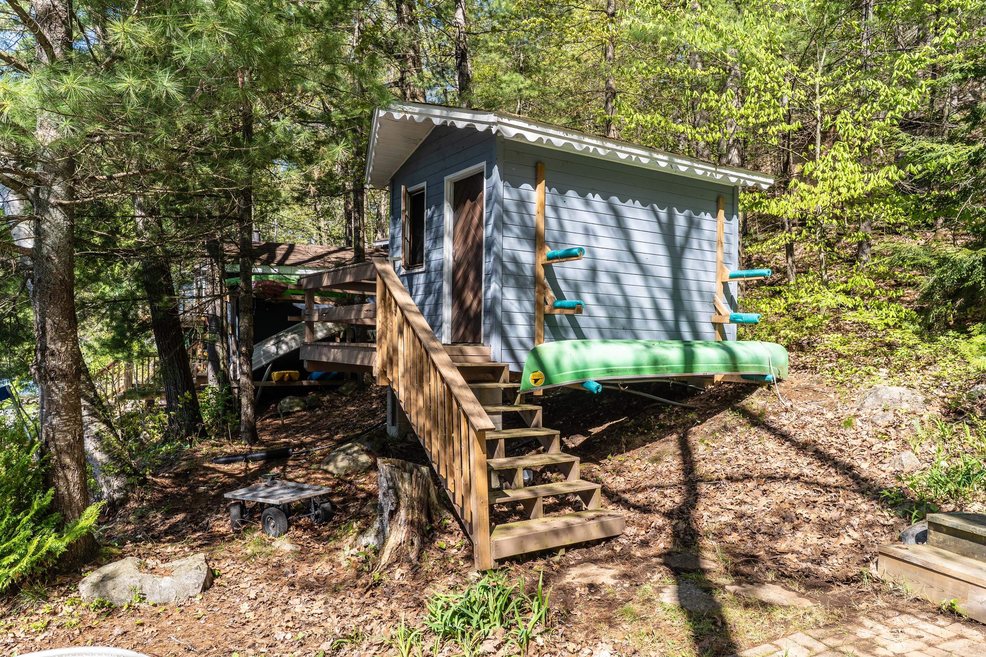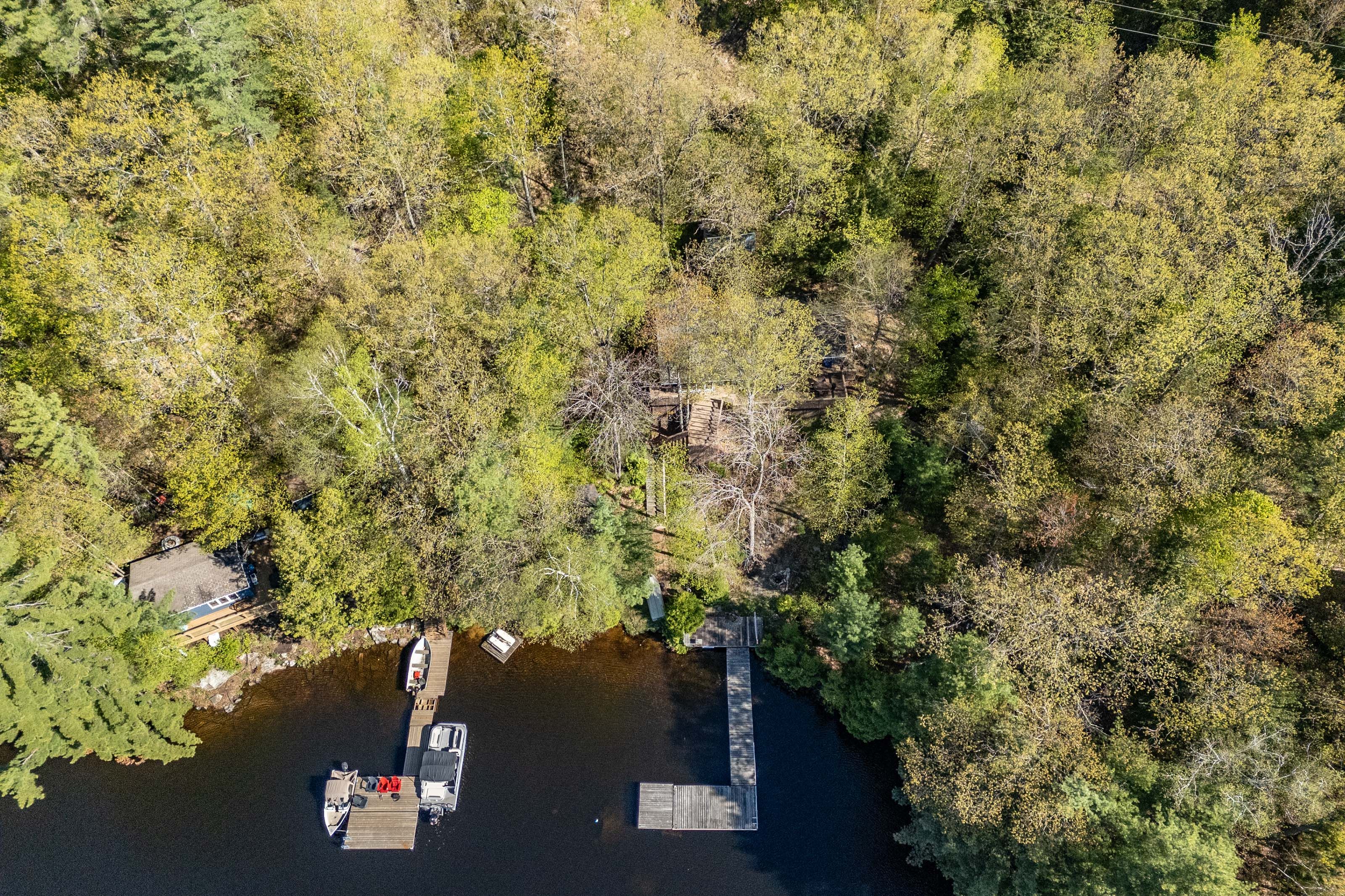 Charming waterfront retreat on raven lake. Fully furnished! Welcome to your private lakeside paradise with 141 feet of waterfront on sought-after raven lake. Set in a tranquil bay, just a short 1-minute boat ride from your own private boat slip, this fully furnished 3-bedroom cottage + large bunkie offers the perfect blend of rustic charm and modern comfort. The main cottage features an open-concept layout with stunning lake views from the kitchen and living room with a walkout to a large sundeck. The primary bedroom is executive-size, and all bedrooms boast new laminate flooring (installed 2 years ago). A quaint stream with a picturesque bridge runs through the property from spring until late july, adding to the serene ambiance. Professionally rebuilt over the last 25 years and supported by solid concrete and wooden piers. Electric baseboard heaters and a cozy wood stove provide warmth throughout. A 3-piece bathroom with laundry, fully equipped kitchen and pine accents enhance the cottage vibe. There is a water purification system (with uv and reverse osmosis) and septic system. High speed internet is available, and newer appliances and furnishings are included. Outdoors, enjoy a large deck wrapping around the front and sides of the cottage, perfect for soaking in gorgeous lake views and nature. The property includes a cedar sauna in the pump house, a spacious workshop man cave with fridge and workbench and a large wooden l-shaped dock with a swim ladder. Bonus: ownership includes a transferable membership and dock slip with raven lake dock association (valued at ~$10,000 & annual fees of $700). Only 5 minutes to dorset, 30 min to huntsville & minden and 45 min to bracebridge and algonquin park. This turn-key property is ready for you - just bring your suitcase and start your memories here!