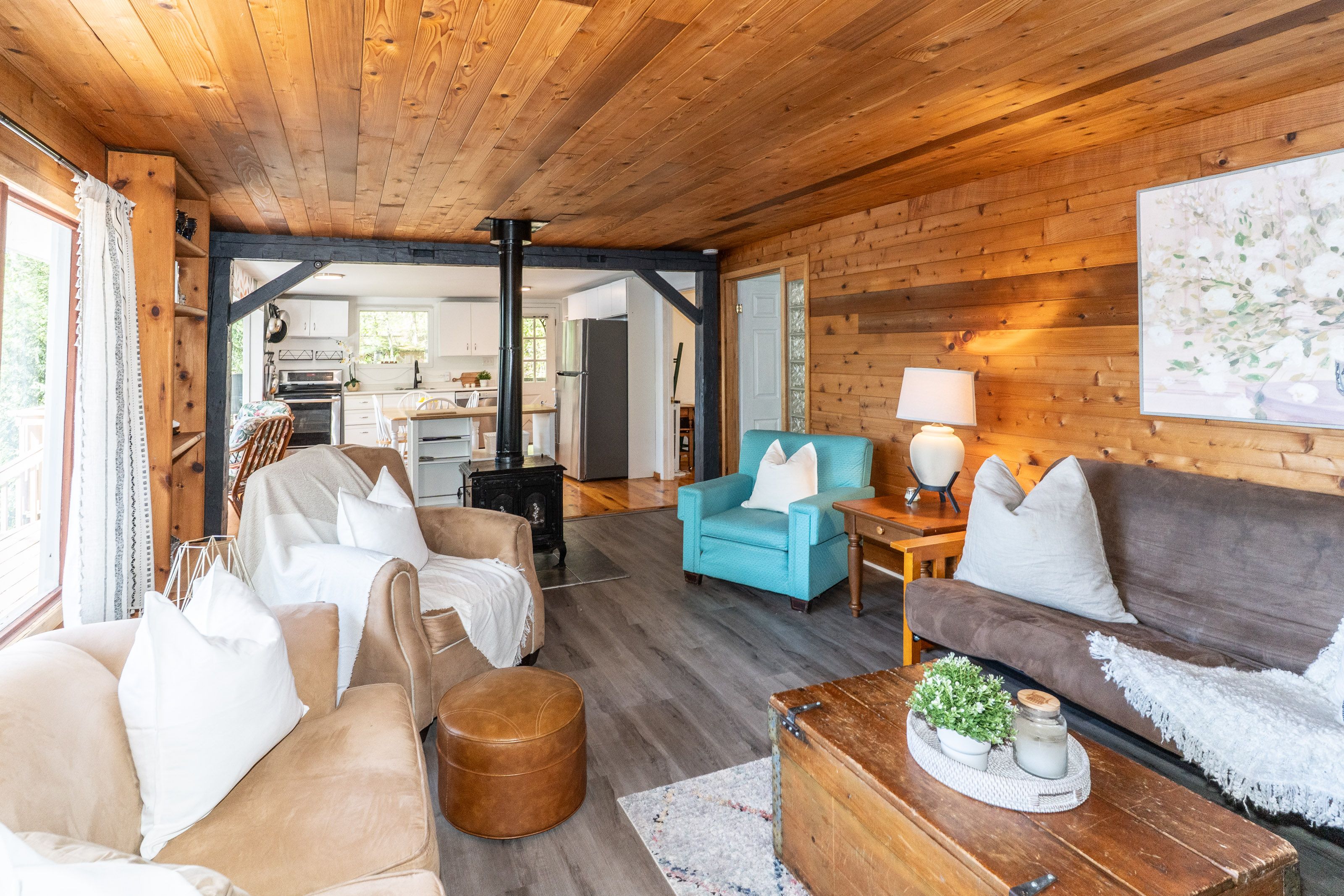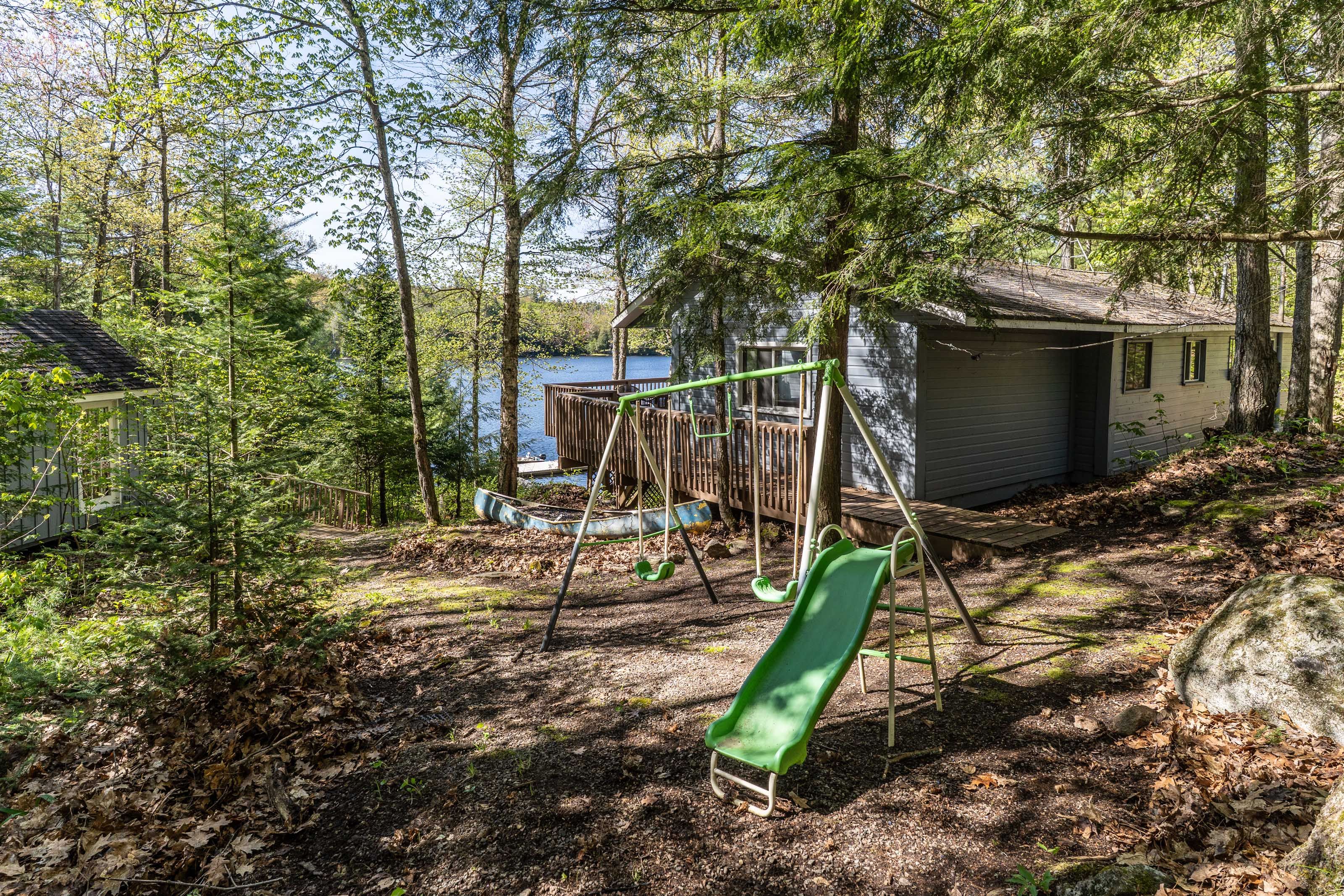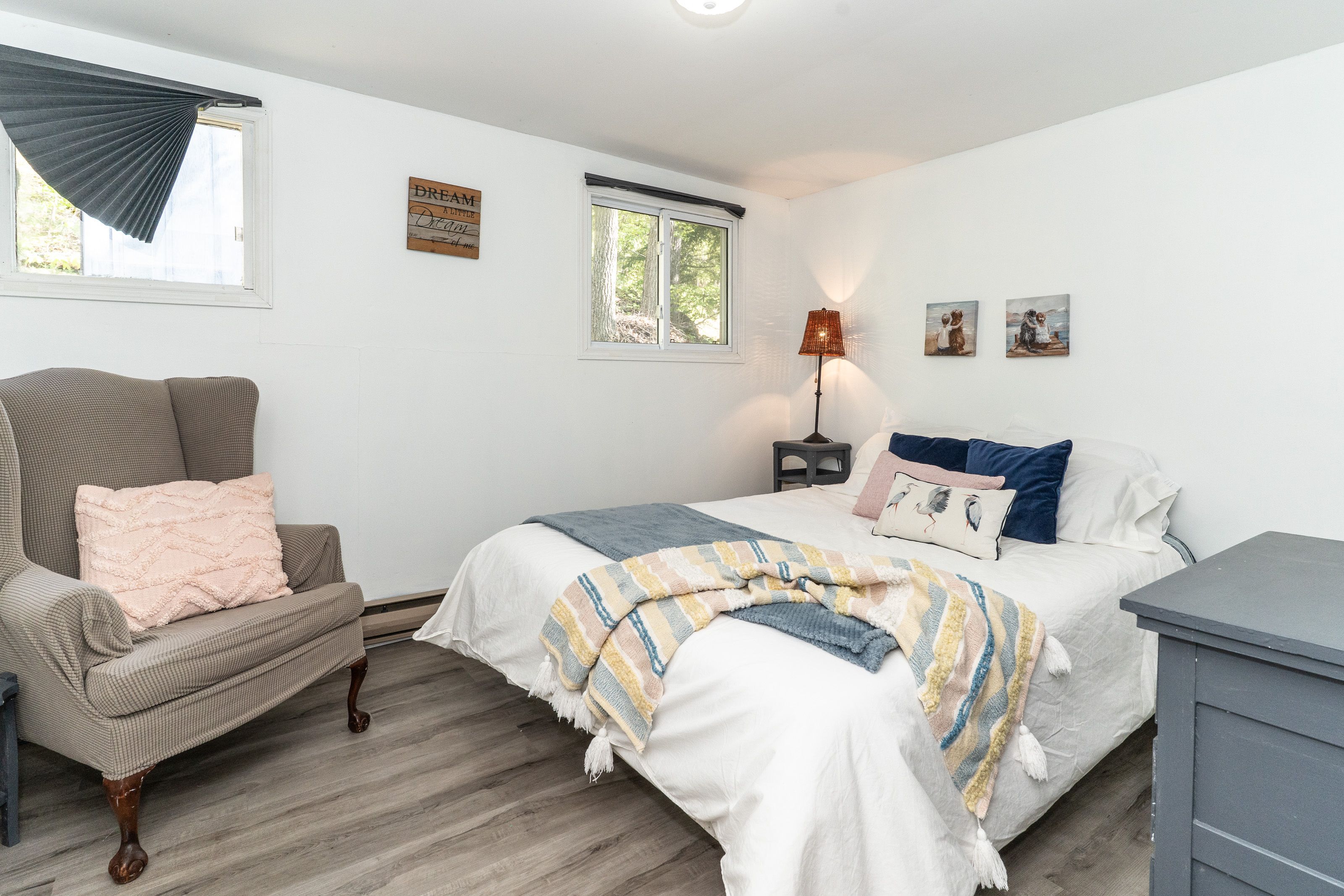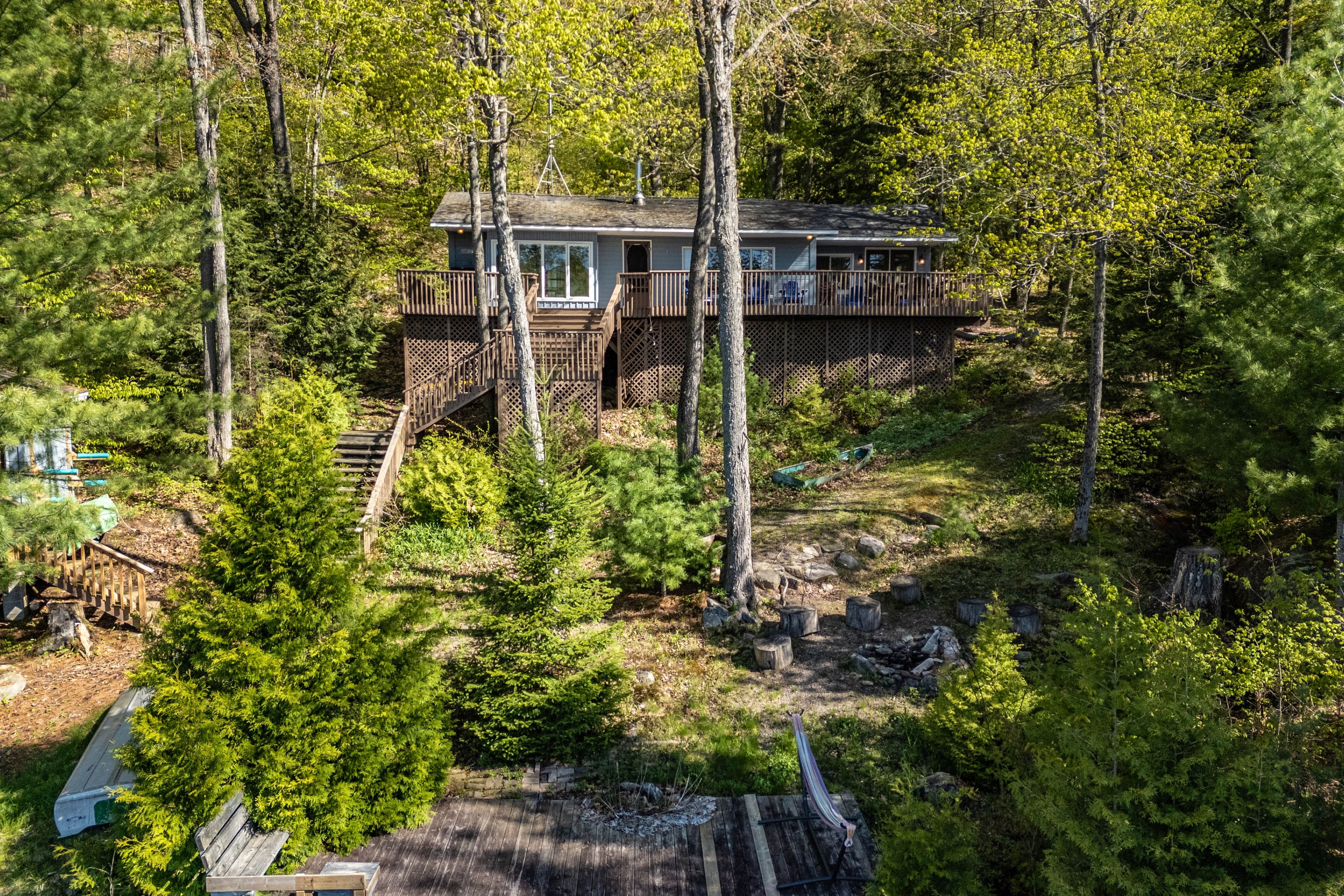 Charming waterfront retreat on raven lake. Fully furnished! Welcome to your private lakeside paradise with 141 feet of waterfront on sought-after raven lake. Set in a tranquil bay, just a short 1-minute boat ride from your own private boat slip, this fully furnished 3-bedroom cottage + large bunkie offers the perfect blend of rustic charm and modern comfort. The main cottage features an open-concept layout with stunning lake views from the kitchen and living room with a walkout to a large sundeck. The primary bedroom is executive-size, and all bedrooms boast new laminate flooring (installed 2 years ago). A quaint stream with a picturesque bridge runs through the property from spring until late july, adding to the serene ambiance. Professionally rebuilt over the last 25 years and supported by solid concrete and wooden piers. Electric baseboard heaters and a cozy wood stove provide warmth throughout. A 3-piece bathroom with laundry, fully equipped kitchen and pine accents enhance the cottage vibe. There is a water purification system (with uv and reverse osmosis) and septic system. High speed internet is available, and newer appliances and furnishings are included. Outdoors, enjoy a large deck wrapping around the front and sides of the cottage, perfect for soaking in gorgeous lake views and nature. The property includes a cedar sauna in the pump house, a spacious workshop man cave with fridge and workbench and a large wooden l-shaped dock with a swim ladder. Bonus: ownership includes a transferable membership and dock slip with raven lake dock association (valued at ~$10,000 & annual fees of $700). Only 5 minutes to dorset, 30 min to huntsville & minden and 45 min to bracebridge and algonquin park. This turn-key property is ready for you - just bring your suitcase and start your memories here!