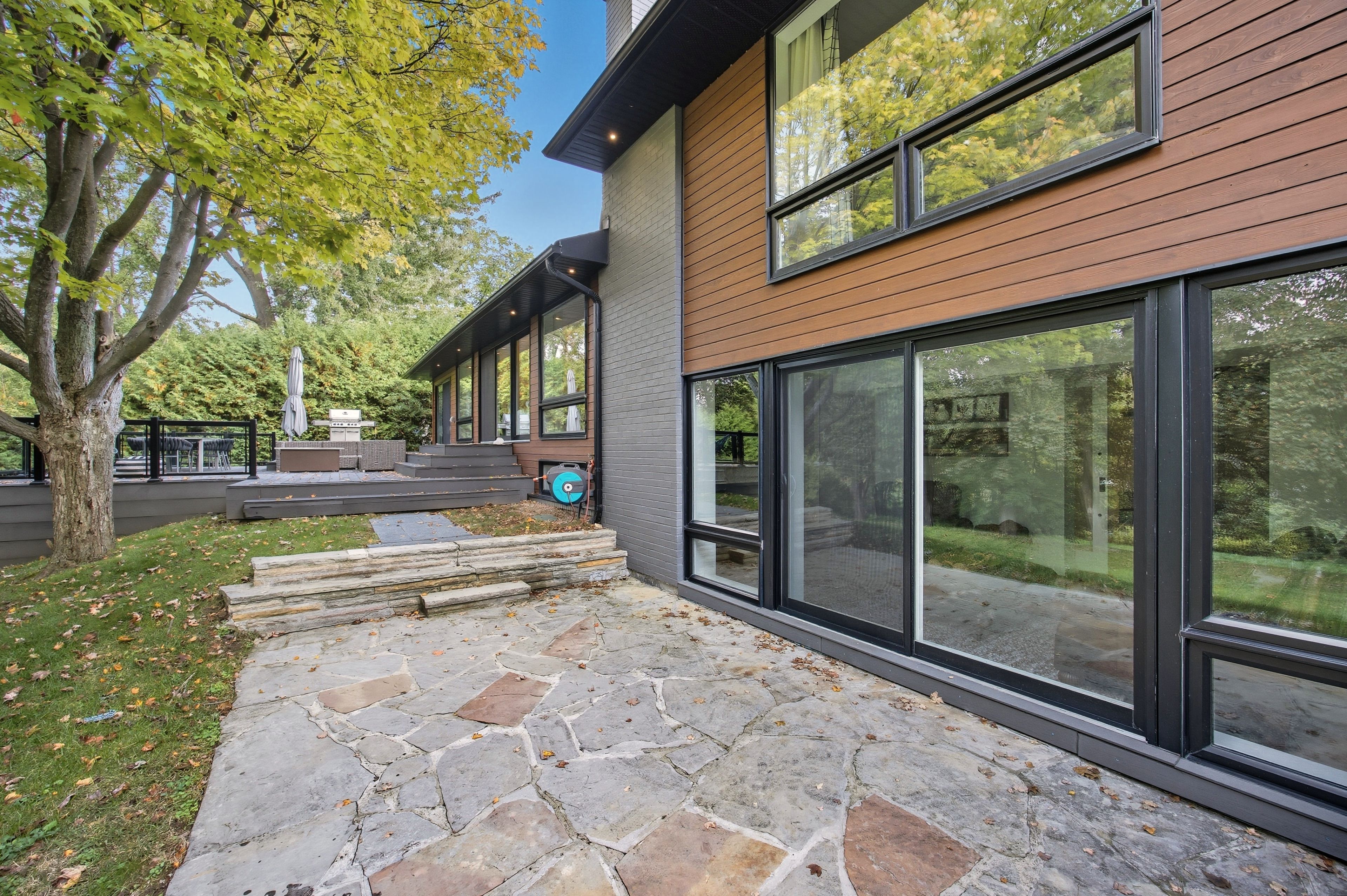 Extremely rare opportunity to own the best ravine property in historic town park area. Gorgeous and immensely private 80 foot wide property with a tranquil park-like setting. Never been on the market! This fully remodelled custom mid-century modern sidesplit evokes muskoka living in the heart of the city while being just steps to all amenities. Soaring 10ft and vaulted ceilings, wide plank oak engineered hardwood throughout, a dramatic wall of oversized high-efficiency low-e argon windows, and a striking floating staircase create a bright and airy atmosphere filled with natural light. The interior showcases custom millwork throughout, rift-cut white oak interior doors, and two stunning masonry fireplaces with napoleon log sets for warmth and elegance. The gourmet kitchen is a showpiece with custom cabinetry, modern stainless steel appliances, a gas stove, beverage centre, and seamless flow to the dining and living spaces. Bedrooms and baths are equally impressive, with three of the four bedrooms featuring their own private ensuites, offering exceptional comfort and privacy. Spa-like finishes include marble floors and walls in the ensuite and main bath, along with upgraded porcelain tiles in all additional areas. Every detail has been thoughtfully considered including an oversized 2-car garage, monitored alarm system, and ample storage. Step outside to your own private oasis featuring an oversized maintenance-free 32ft x 24ft deck, gas line for bbq and fire table, hot tub r/i, professional landscaping with irrigation system, and maintenance-free leaf guard eavestroughs all designed for effortless outdoor living and entertaining. Town park is the hub of aurora! Short walk to go train, farmers market, aurora cultural centre hosting performing arts, concerts, and music. Town park hosts outdoor summer concerts/family movie nights, children's splash park, and new playground, aurora library and the new town square are all just a short walk away.