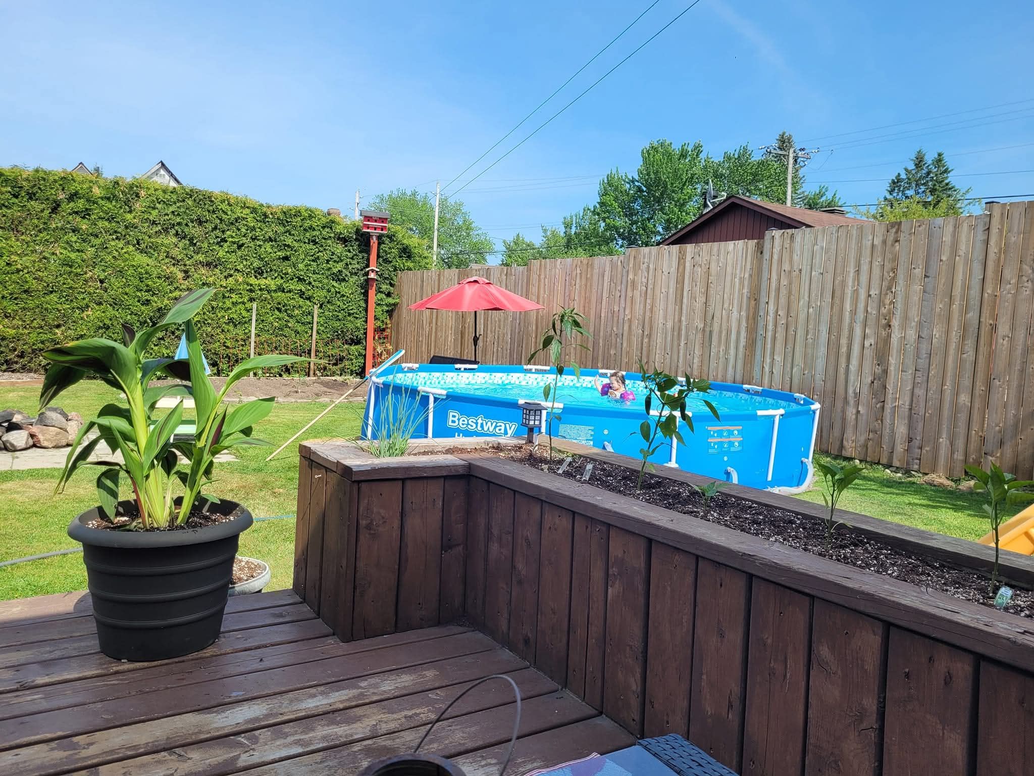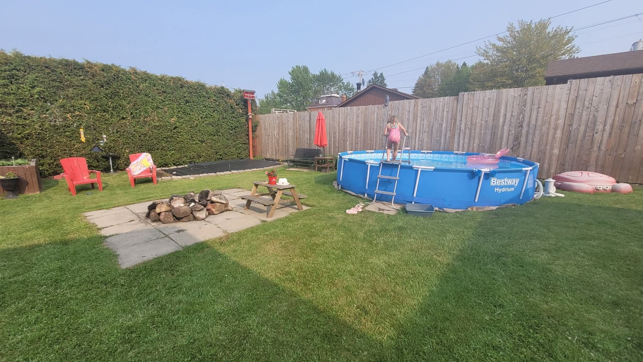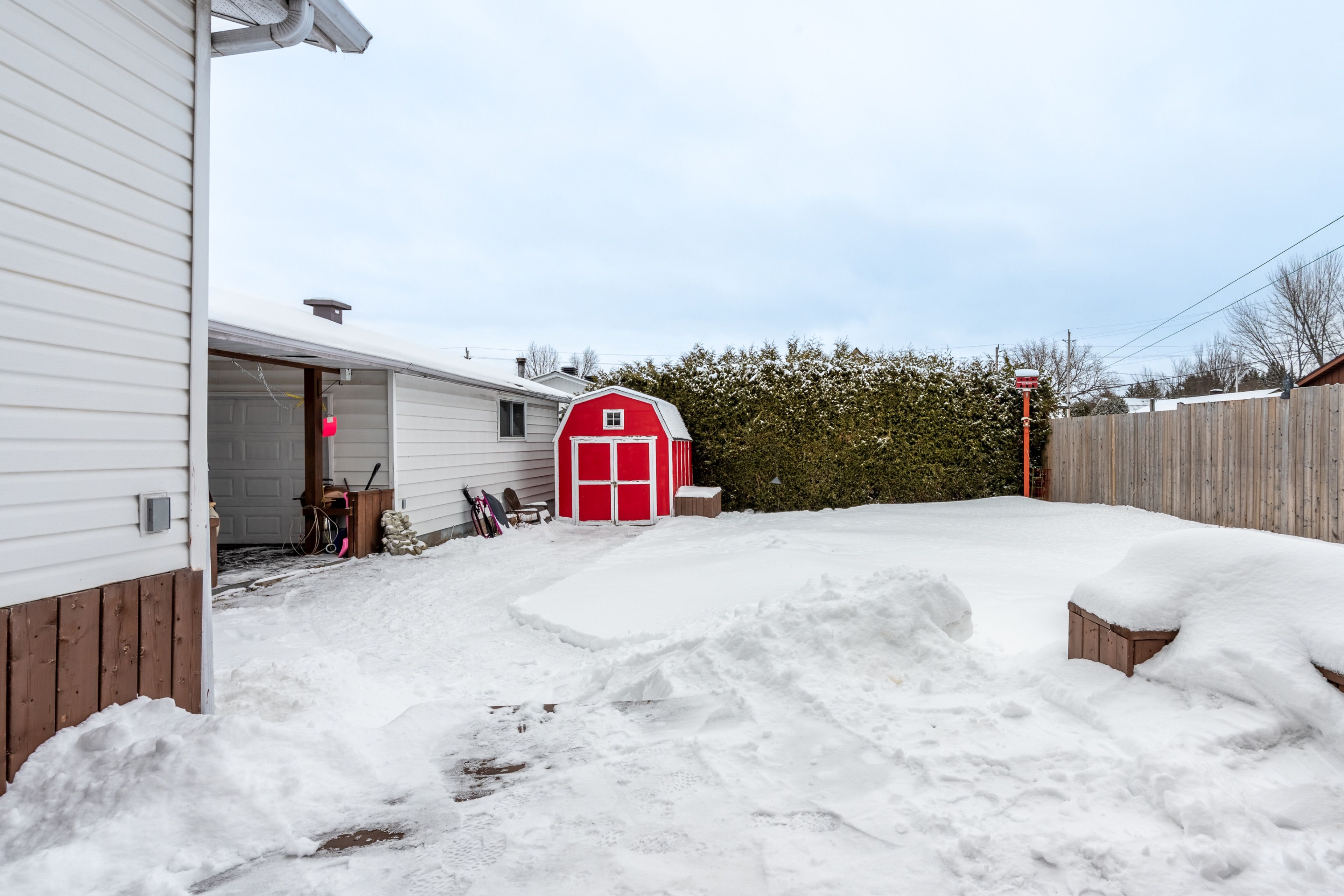 • Fully fenced backyard with a large deck and a heated garage for hobbies.