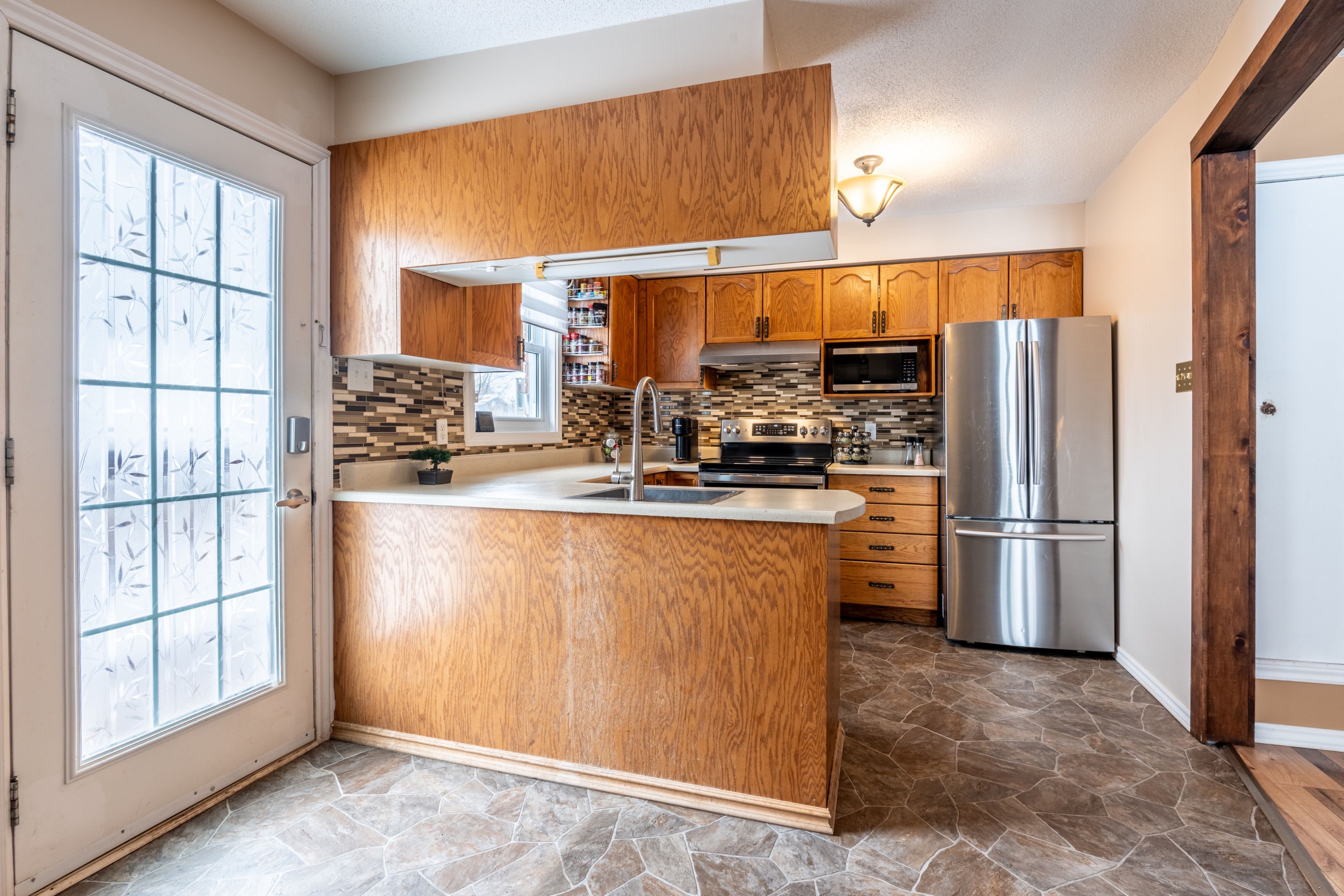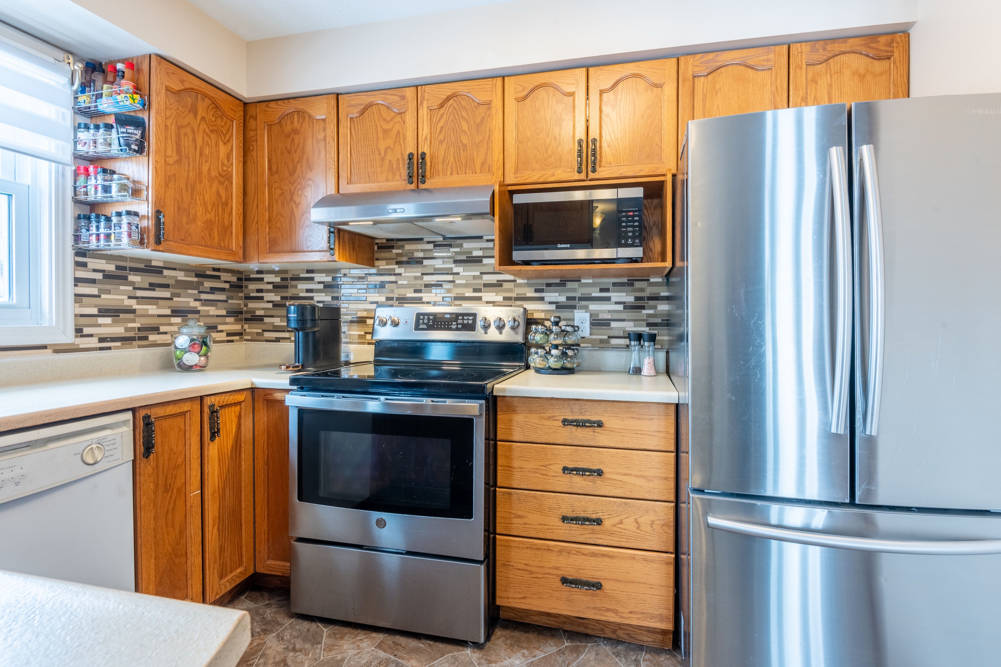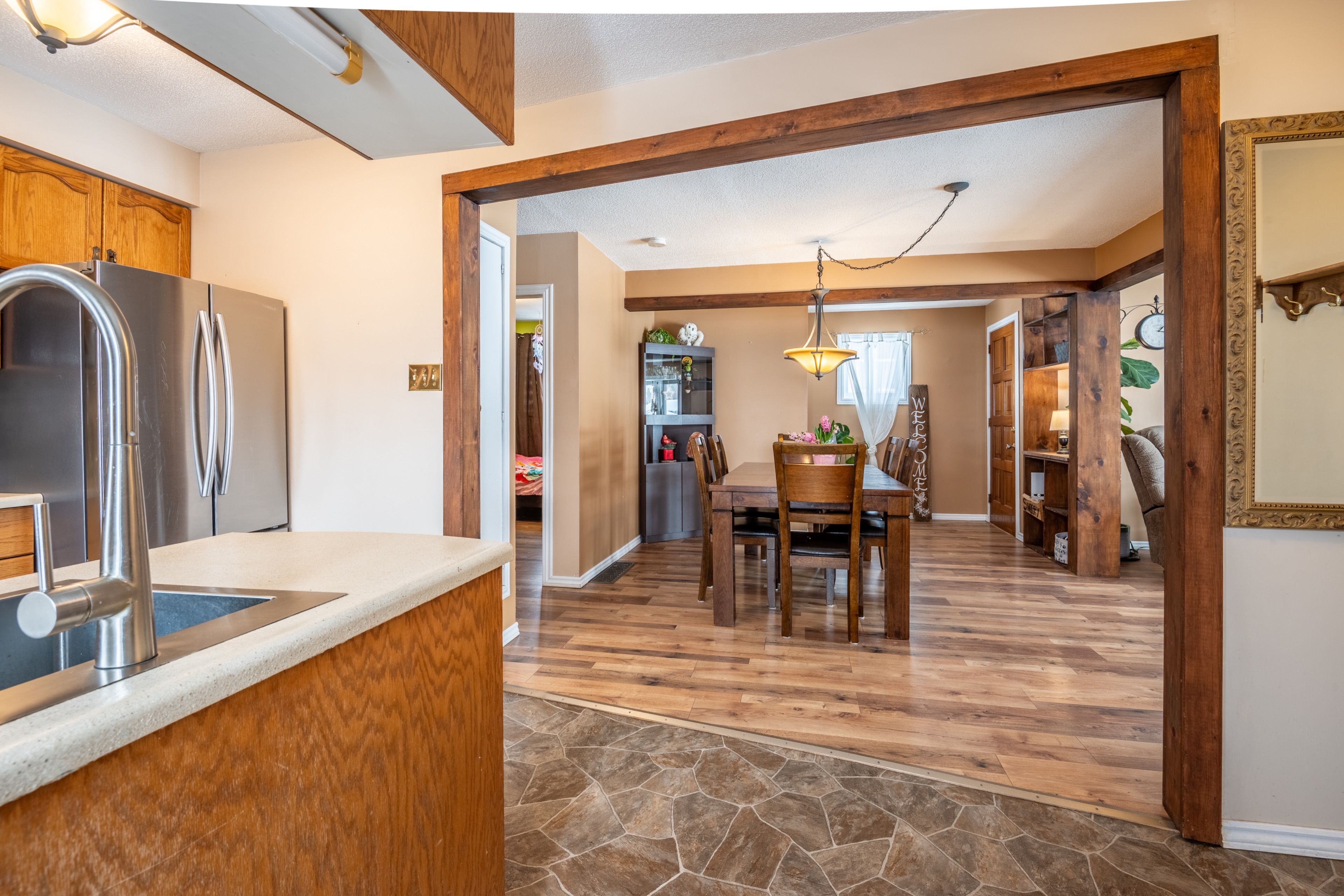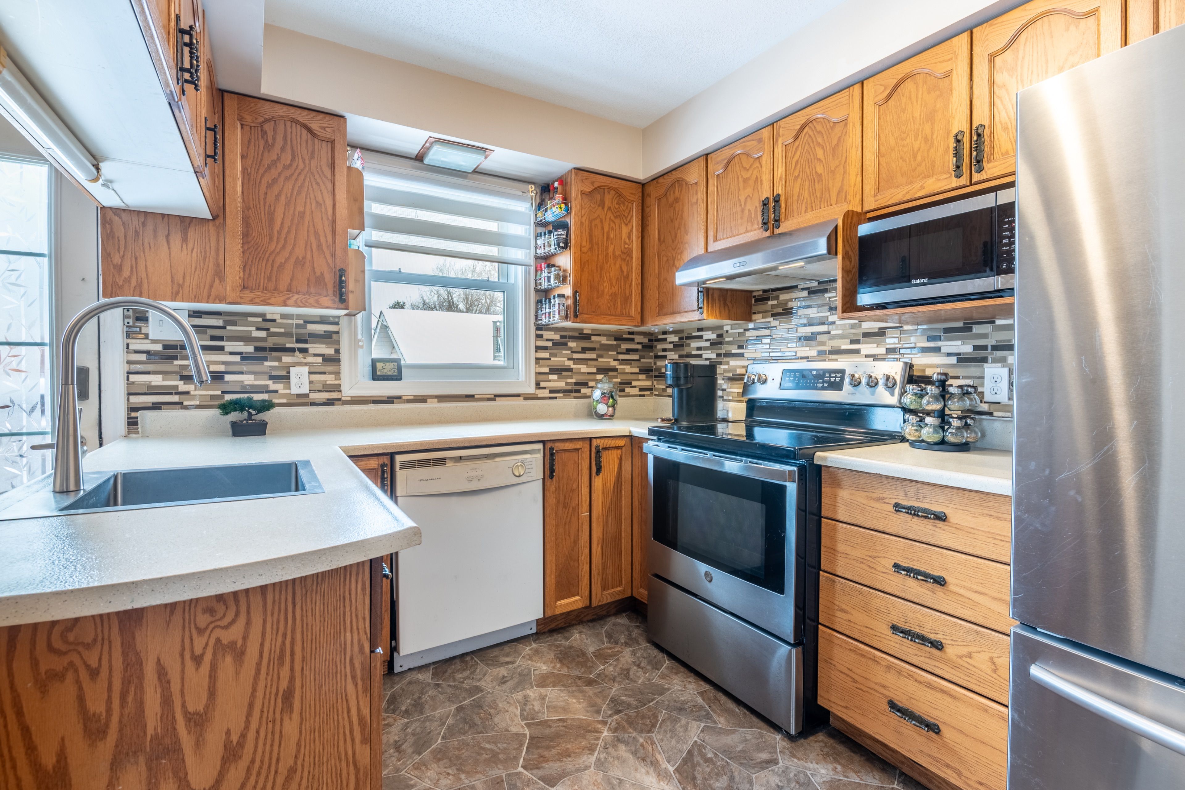 • Fully fenced backyard with a large deck and a heated garage for hobbies.