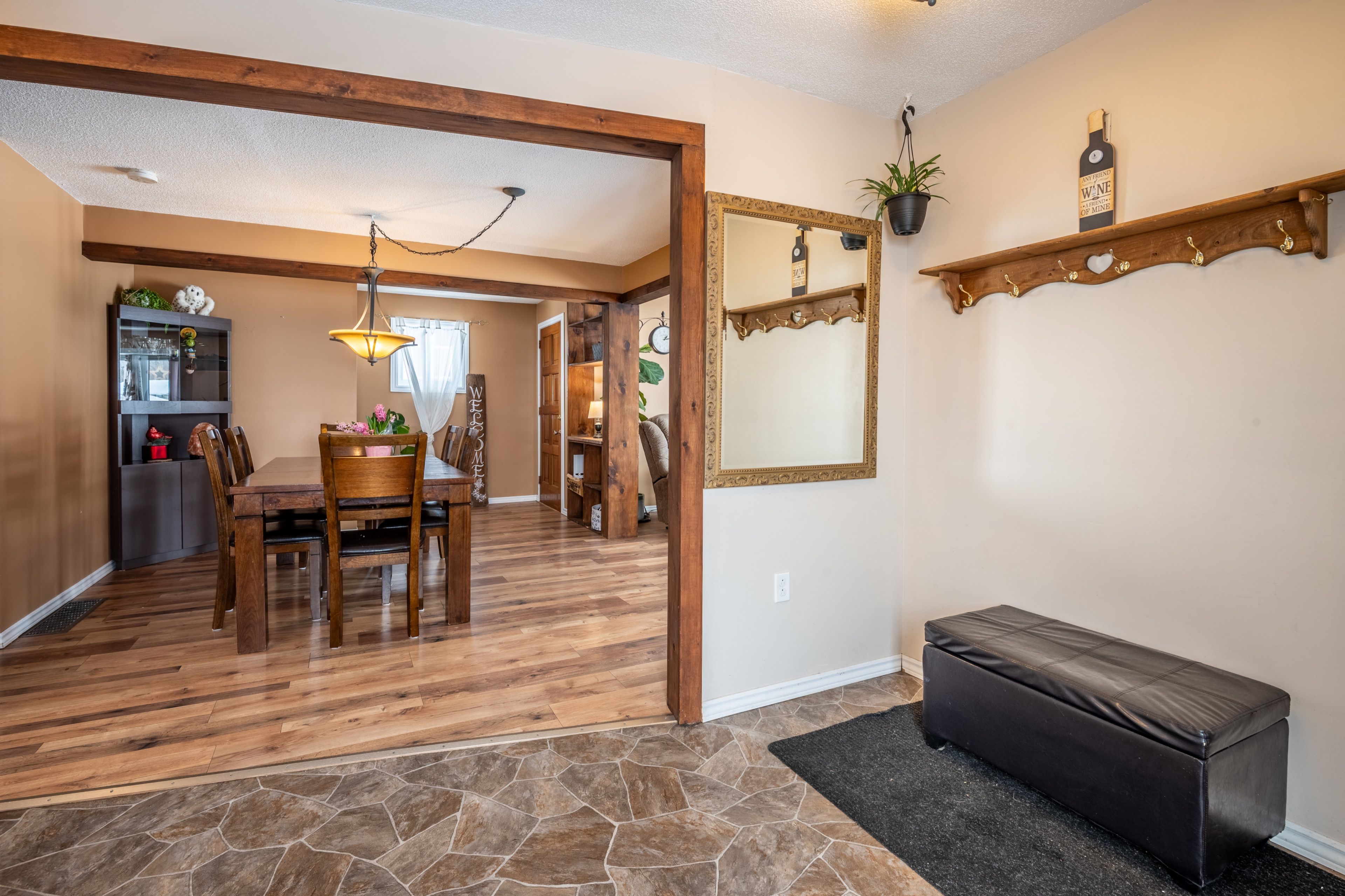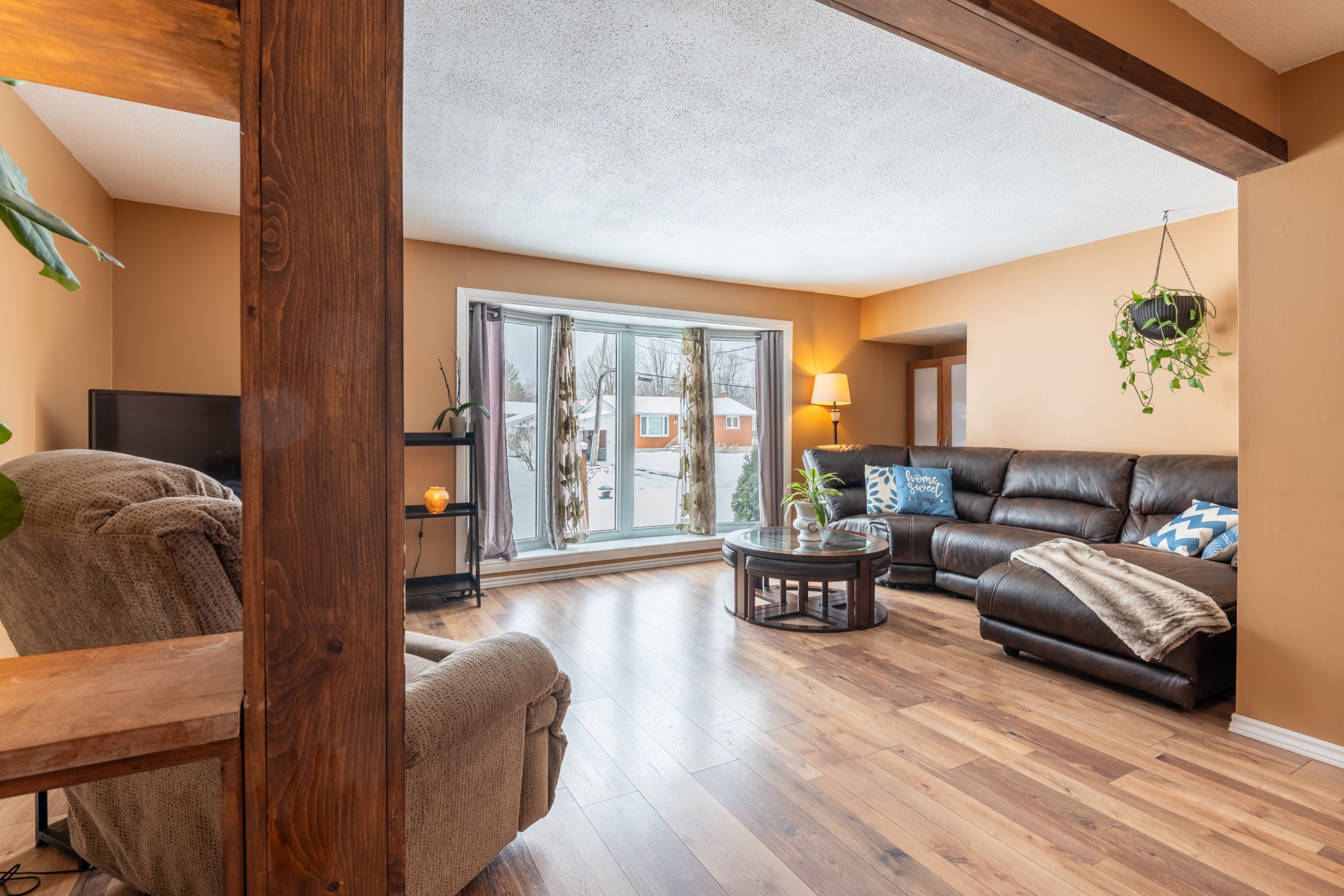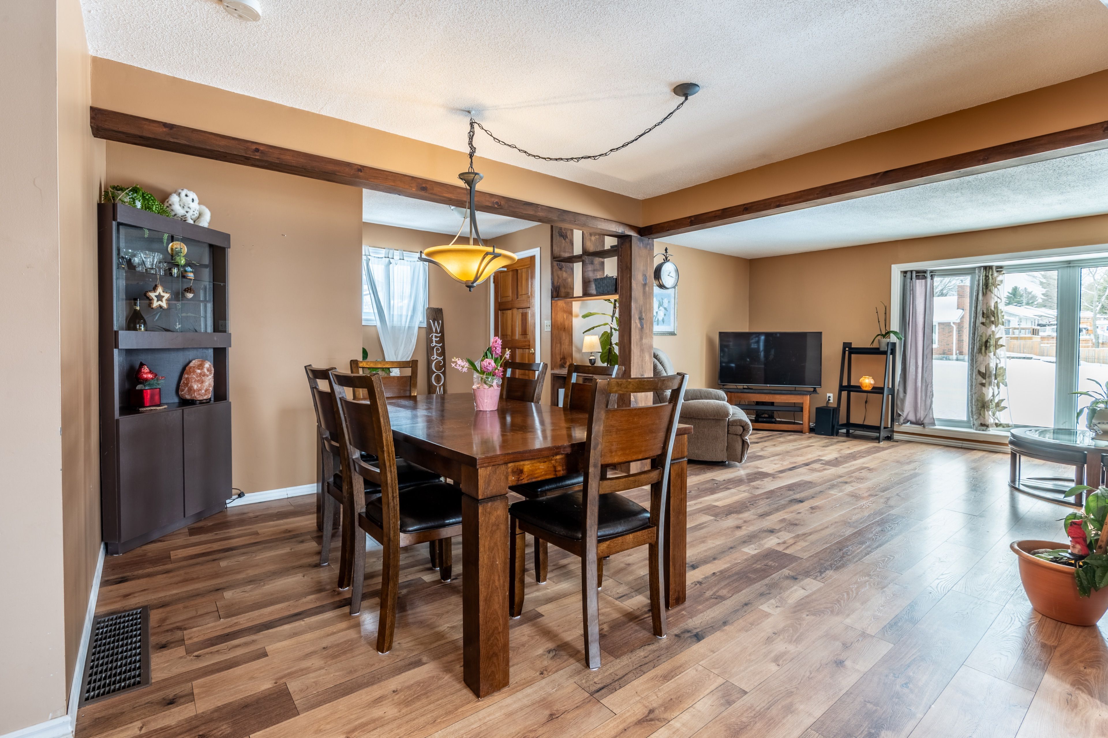 • Spacious main level with open-concept living and dining areas.