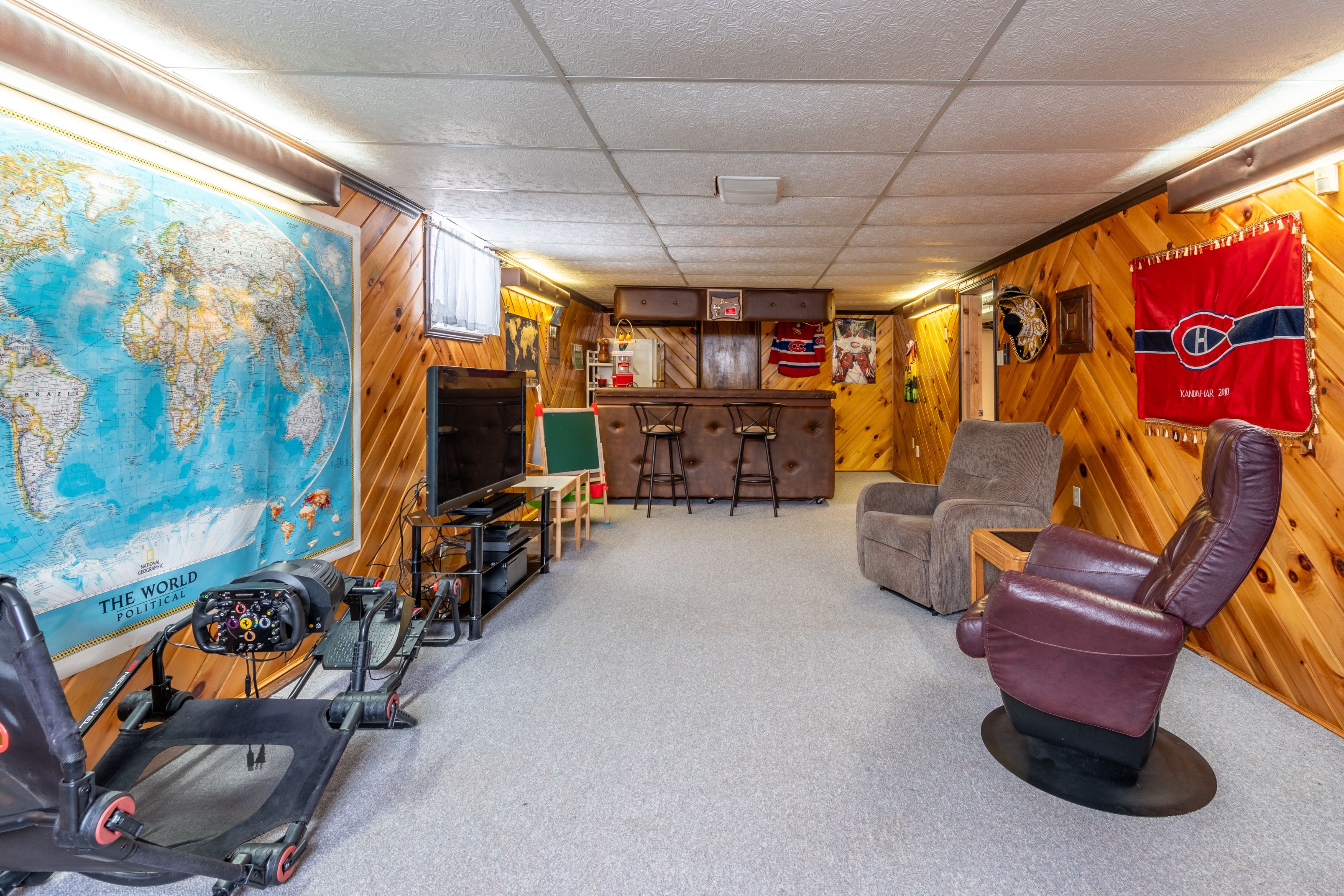 • Expansive rec room with a gas fireplace, perfect for relaxed evenings.