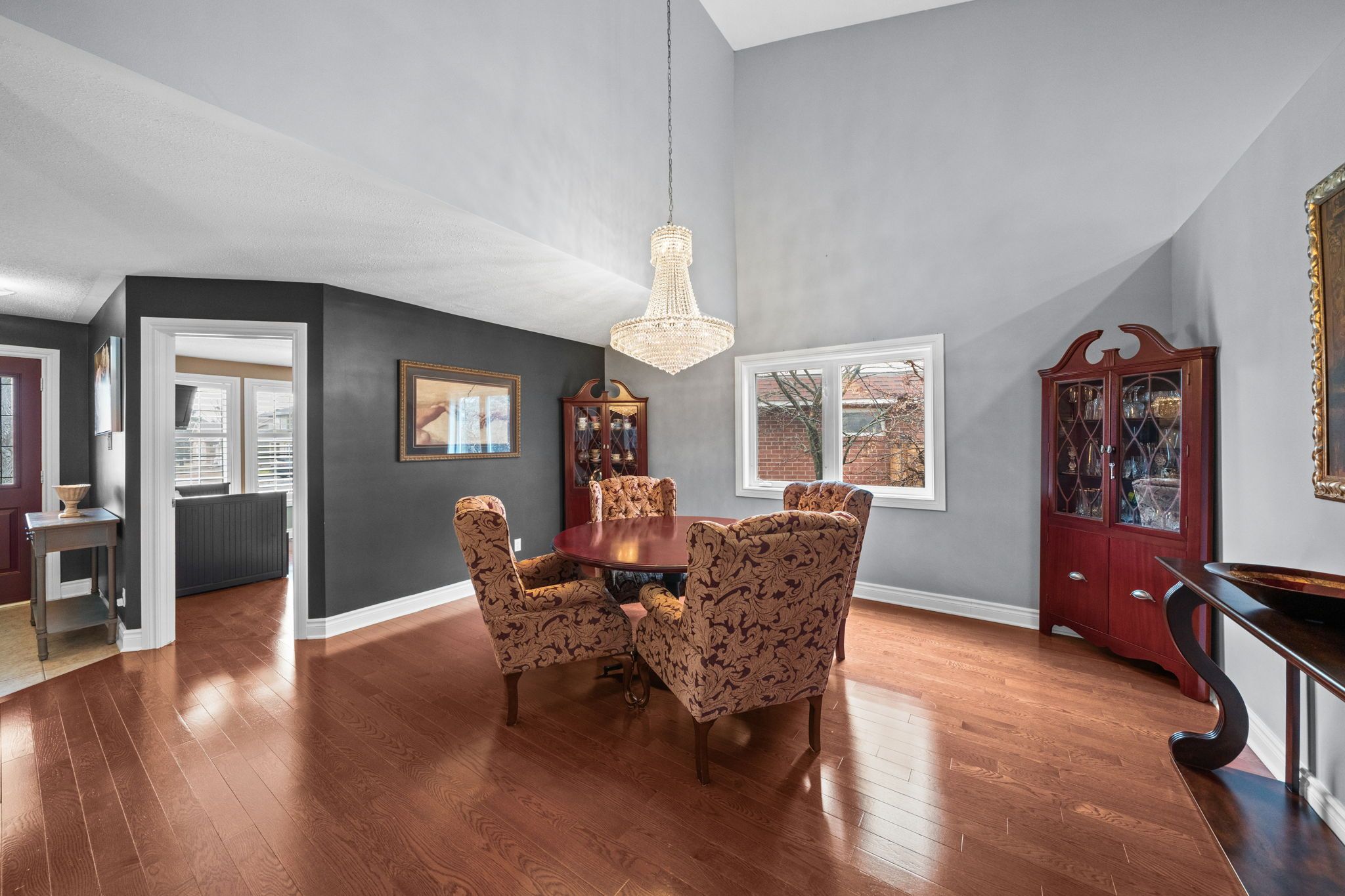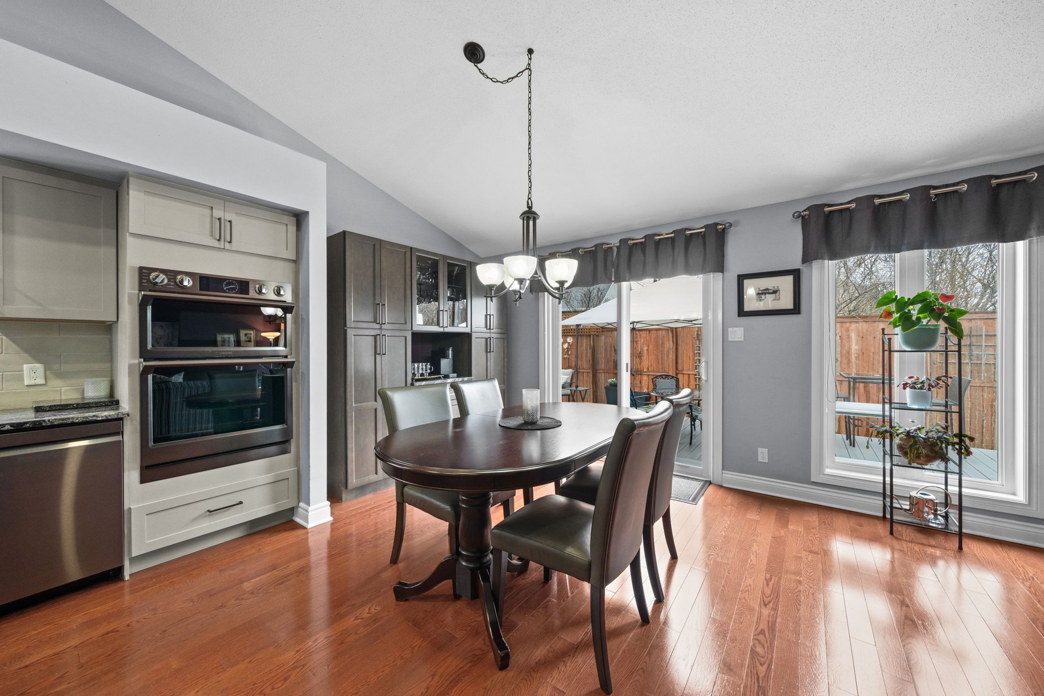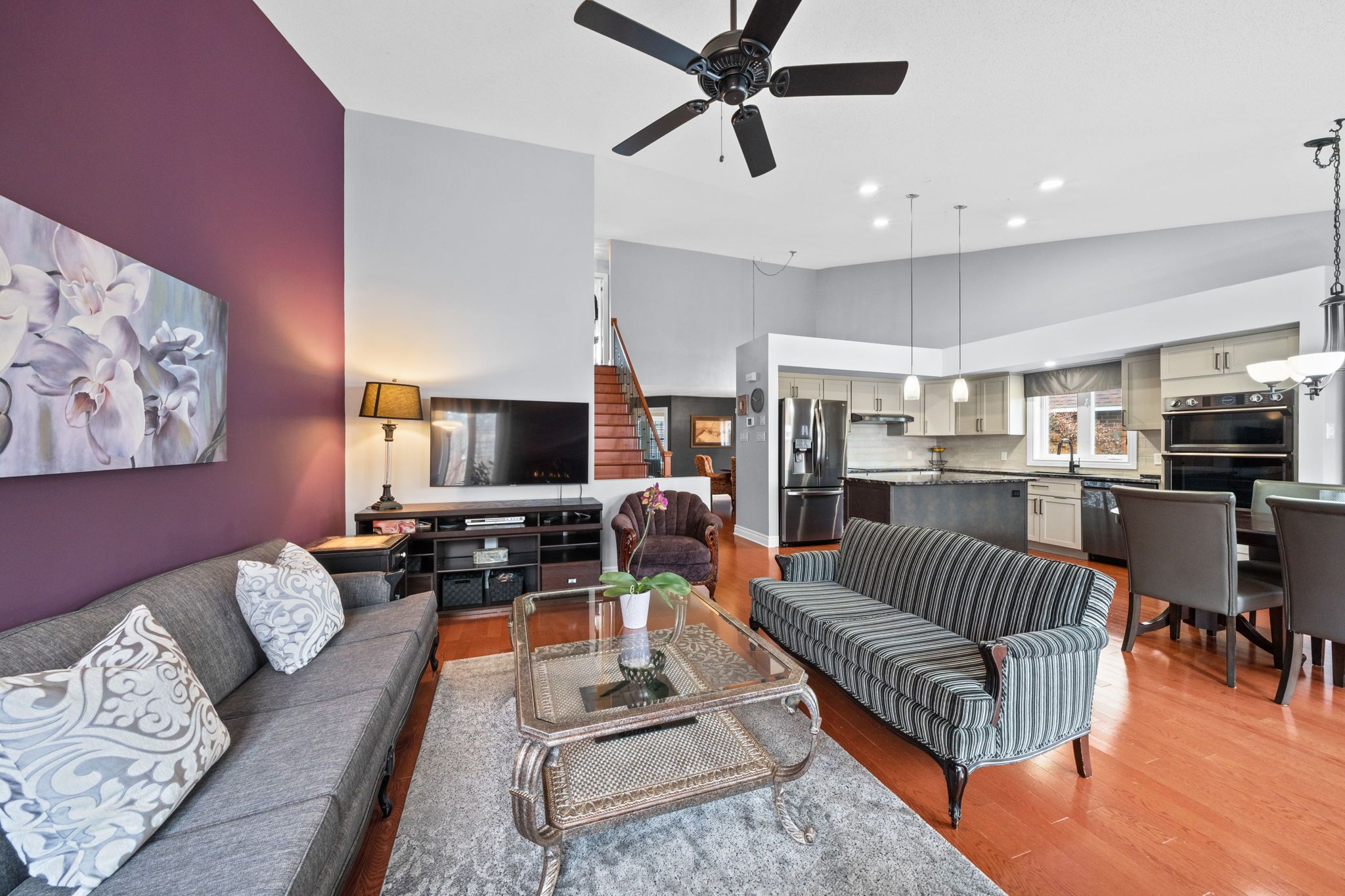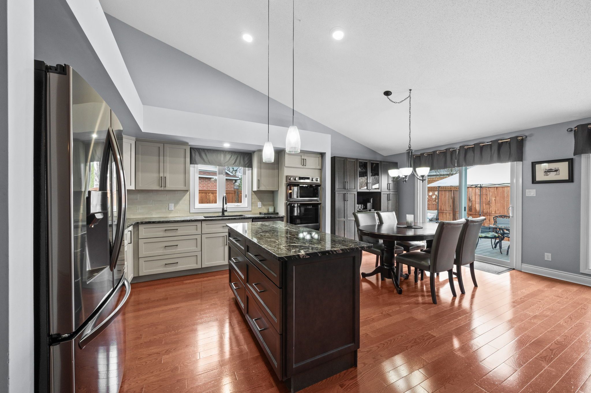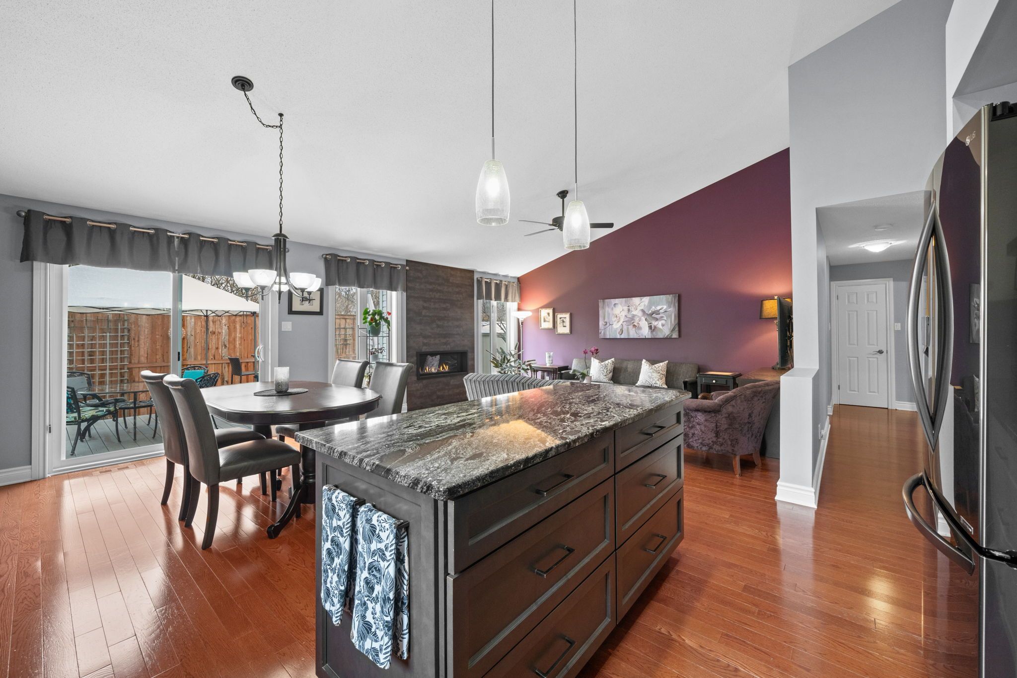 • Bright main floor with hardwood floors, vaulted ceilings, and a cozy gas fireplace.