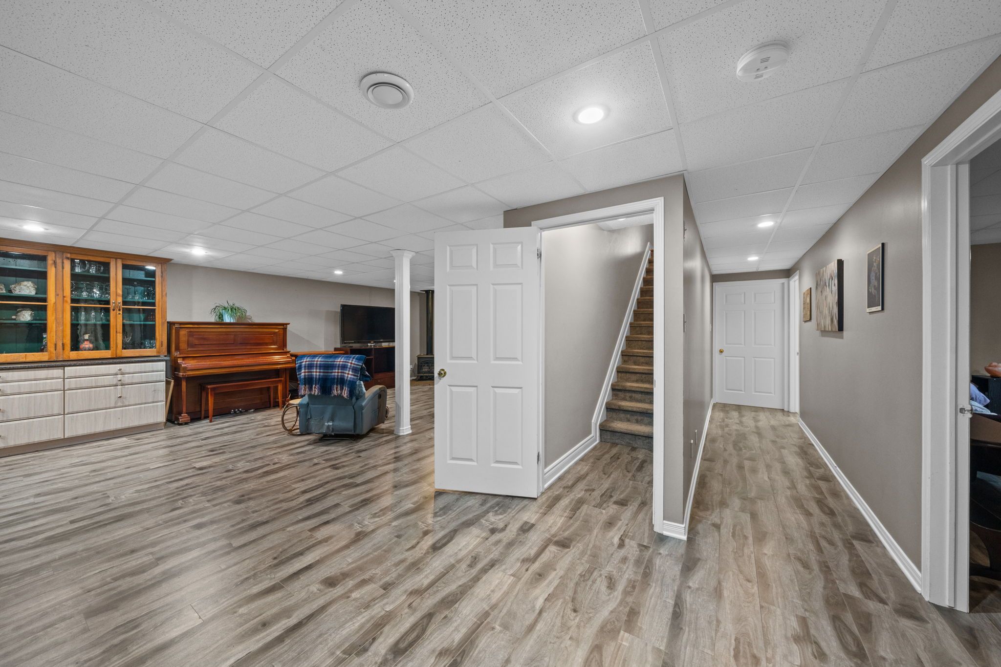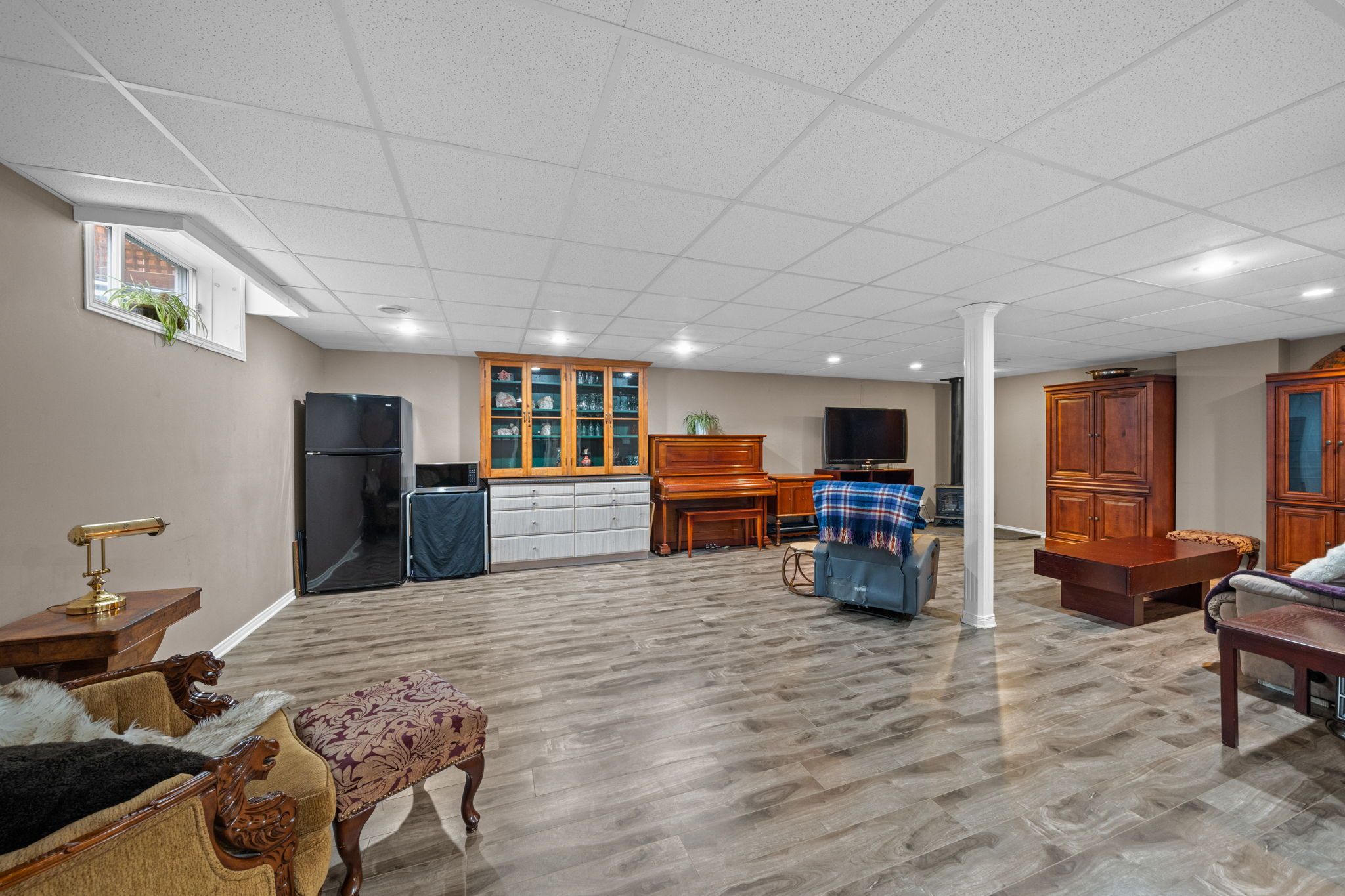 • Finished lower level includes a family room, additional bedroom, and office space.
