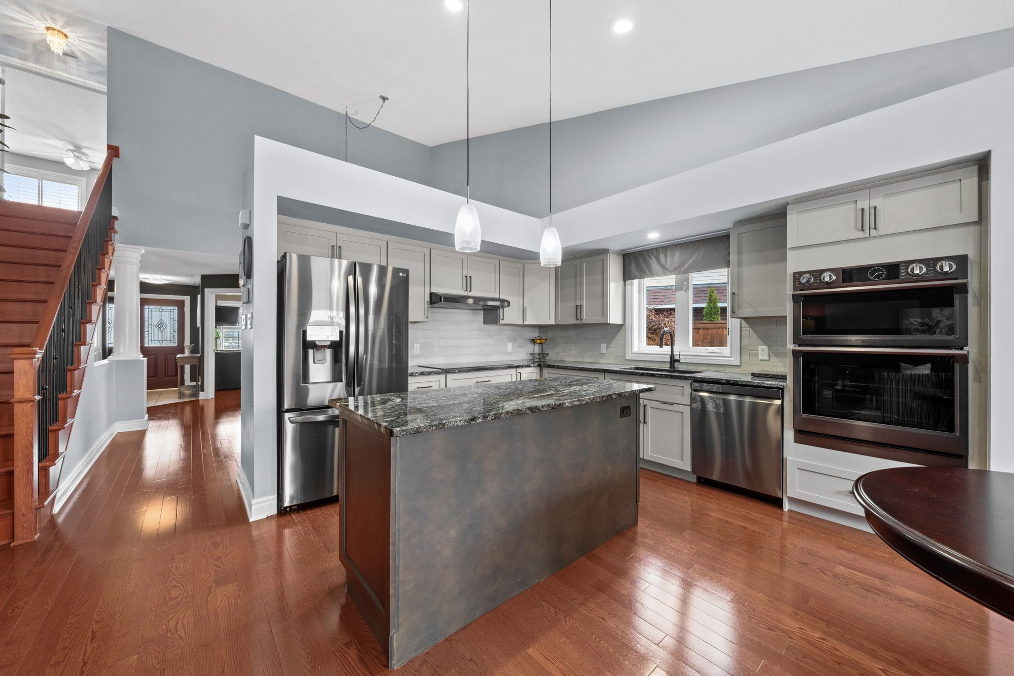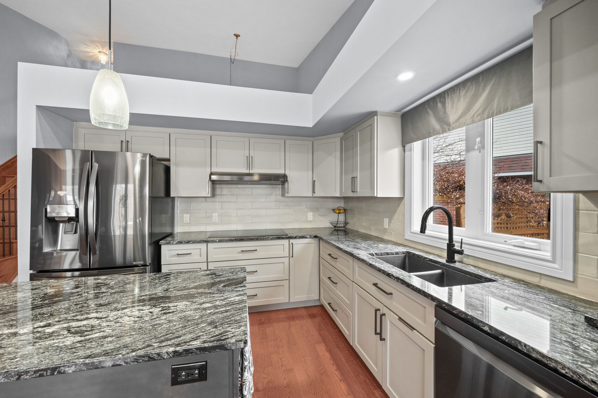 • Fully renovated kitchen with granite counters, stainless steel appliances, and an island.