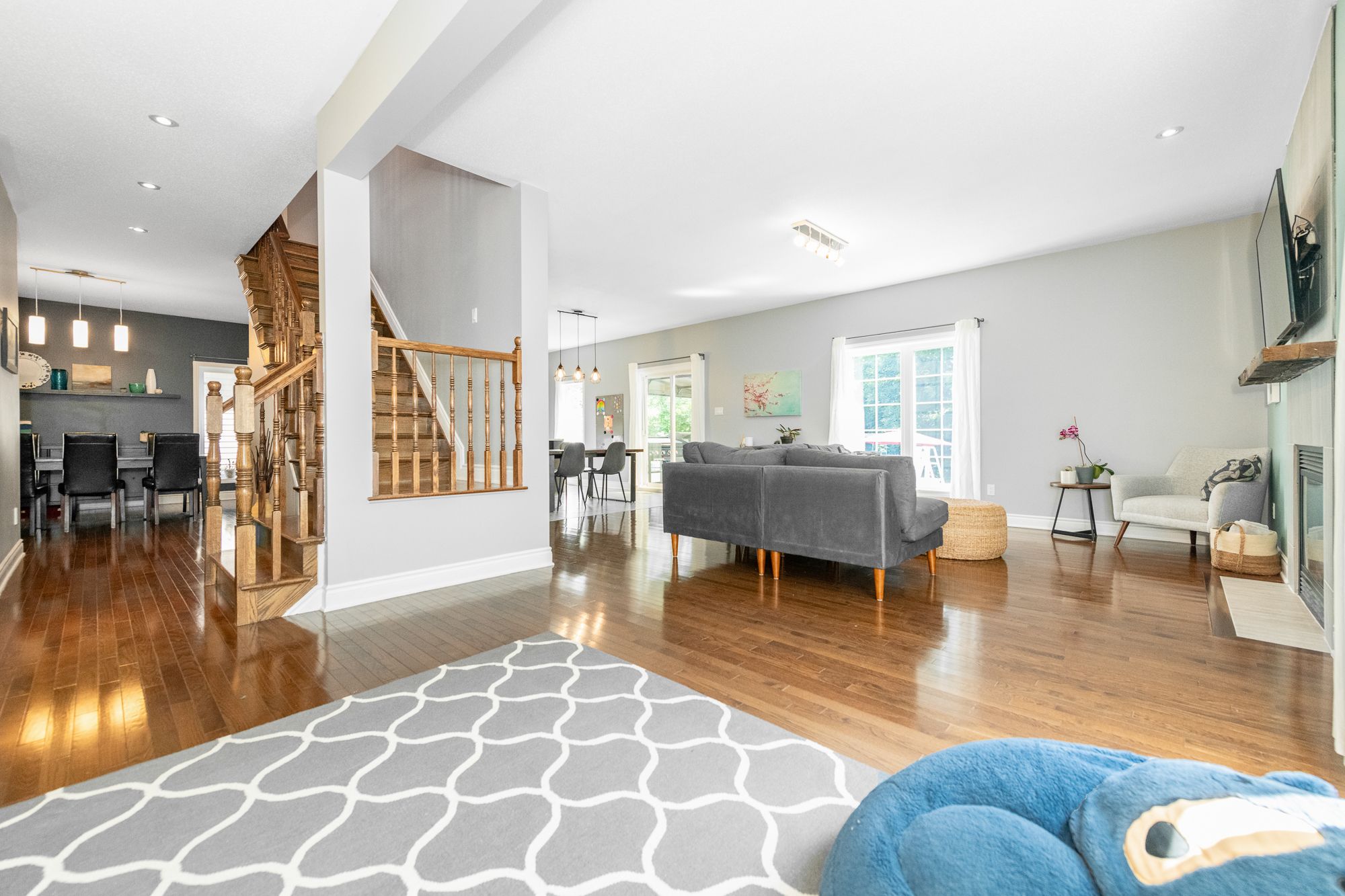 Welcome to 48 station trail, a fully renovated gem backing onto a ravine biking paths. This stunning 4-bedroom, 3-bathroom detached home is nestled on a quiet street near the entrance to russells most desirable neighbourhood. This beautifully updated home offers the perfect blend of comfort, style, and privacy. Set on a premium ravine lot with no rear neighbours, the property boasts an above-ground pool, a large backyard deck, and tranquil views you'll enjoy year-round. Step inside to discover a thoughtfully renovated interior featuring 9' ceilings on the main level, hardwood flooring throughout both the main and upper levels, and a practical main floor office, ideal for working from home. The heart of the home is a stunning, completely redesigned kitchen with double waterfall quartz countertops, ample cabinetry, and included stainless steel appliances, all opening seamlessly to the dining and living areas, perfect for both everyday living and entertaining. Upstairs, you'll find four spacious bedrooms, a convenient 2nd-floor laundry room, and a brand new ensuite bathroom complete with a standalone soaker tub, glass shower, and modern finishes. The fully finished basement adds even more living space, offering a large rec room and plenty of organized storage. Additional exterior updates include a new driveway and interlock walkway. Located just minutes from schools, parks, and local amenities, this turn-key home has been renovated from top to bottom, all you have to do is move in. Don't miss your chance to own this exceptional home in a quiet, well-connected community just 20 minutes to ottawa!