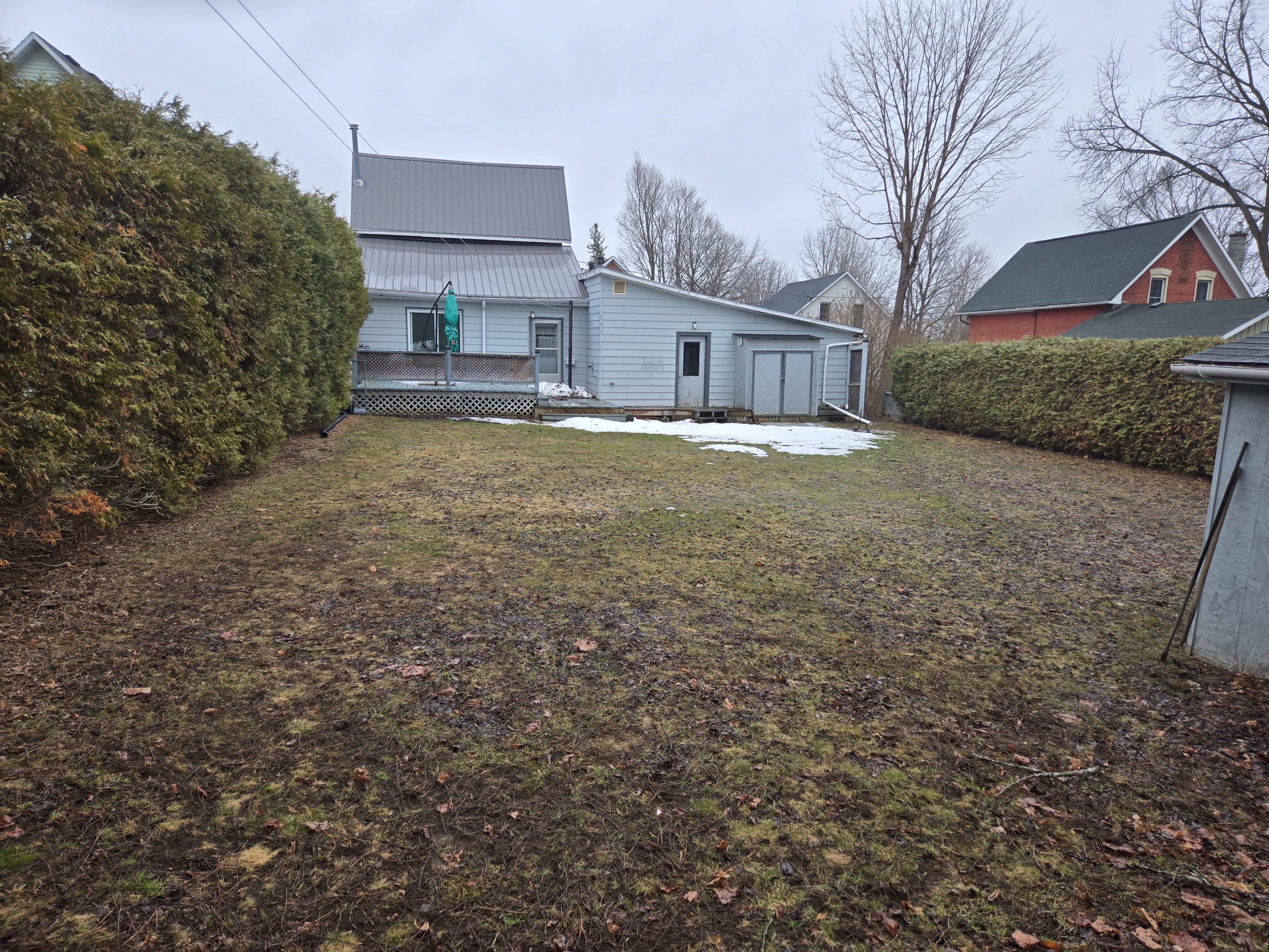 • Private backyard with tall cedar hedges for outdoor entertaining.