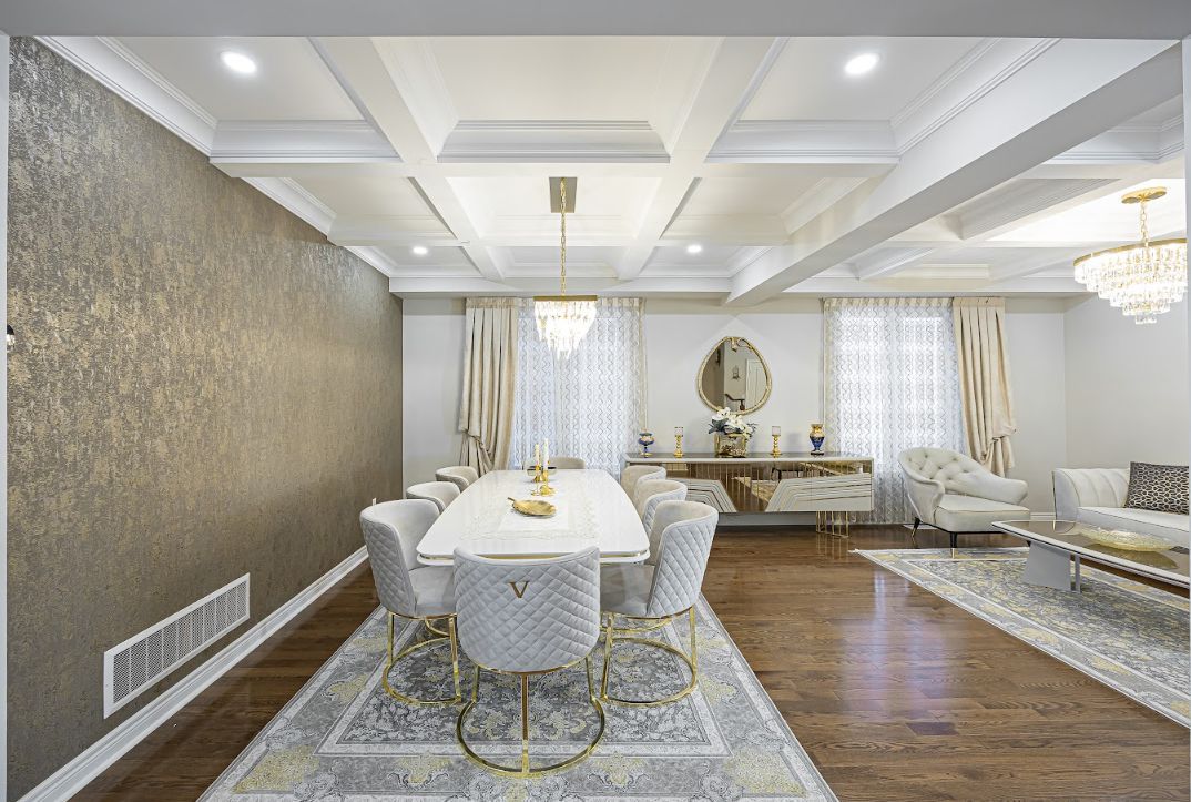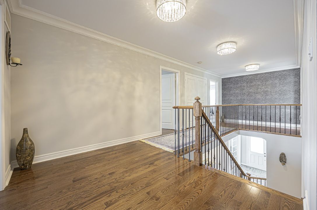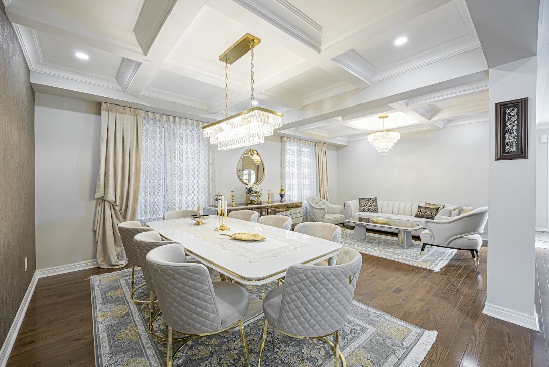 Welcome to this beautiful luxury home located in one of aurora's most desirable and family-friendly neighbourhoods in the bayview northeast community. Offering over 3,300 sqft plus a separate finished basement with strong rental income, this renovated home is thoughtfully designed with open living spaces for family comfort, everyday living, and entertaining. Step through the covered front porch into a grand entryway featuring elegant coffered ceilings and custom fabric curtains. Main floor showcases hardwood flooring, extensive led pot lights, and custom integrated built-in blinds throughout. Select walls are finished with luxury roberto wallpaper & german wallpaper. Stunning luxury chandeliers complete the bright and welcoming main-floor setting. The main level offers a flexible layout, including home office with custom designer wallpaper, ideal for working from home or used as a 6th bedroom for parents & guests. Family room features large windows, a cozy fireplace, and custom built-in storage and display cabinetry with an integrated tv, creating a stylish gathering space. The formal living & dining rooms offer elegant detailing, for entertaining and special occasions. Kitchen has featuring abundant cabinetry, accent lighting, tile flooring, and a custom island with a built-in wine rack and stunning slab countertop. It opens to a bright breakfast area with walkout to the backyard. The 2nd floor offers 5 bedrooms with large storage closets. The primary suite includes separate his /hers walk-in closets and a luxurious 6 piece ensuite with glass shower and double vanity. One bedroom features abundant natural light, a custom closet, and a built-in study desk with integrated lighting. The finished basement adds exceptional value with a 2+1 bedroom layout, second kitchen, open-concept living area, large space, second laundry & ample storage. With a separate entrance, it offers income of around $2,100/month. Features include in-ceiling speakers,security cameras, ev charger.