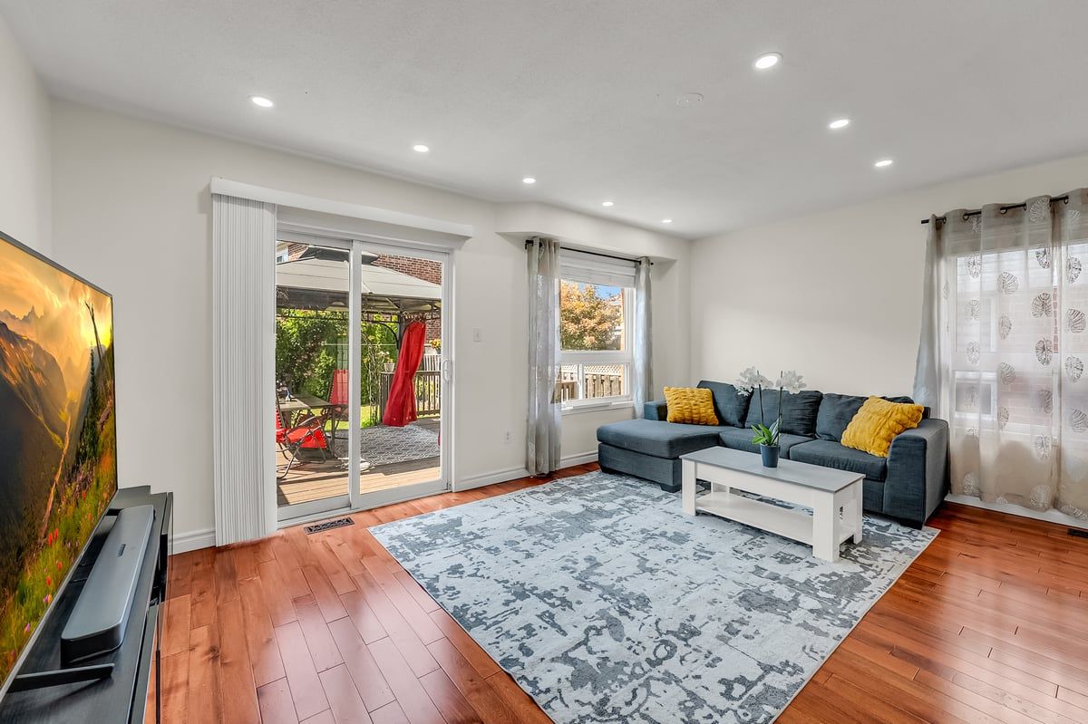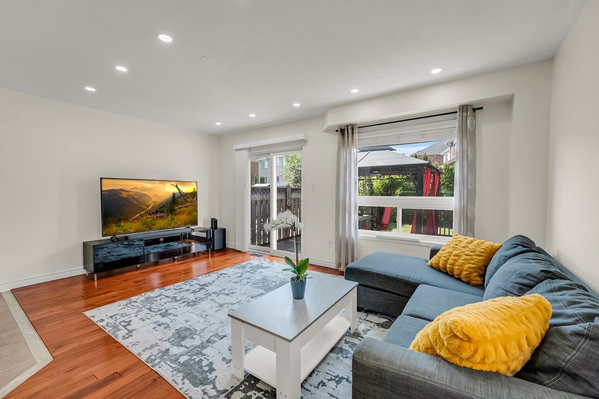 Welcome to a standout opportunity in northwest ajax! This beautiful 3-bedroom freehold semi delivers style, comfort, and everyday functionality. Enjoy a bright, open-concept layout with rich cherry hardwood floors, pot lights, and a sleek upgraded kitchen featuring quartz countertops, stainless steel appliances, and a large breakfast bar. Upstairs, find three spacious bedrooms, including a primary suite with a walk-in closet. Step outside to your private deck with a charming gazebo-perfect for relaxing or entertaining. Bonus: no sidewalk, offering extra parking! The unfinished basement is a blank canvas-ideal for a future office, gym, or playroom. Located steps from top-rated schools, parks, shopping, transit, and close to hwys 401, 407 & 412, this move-in-ready home is a rare gem in one of ajax's most desirable communities. Don't miss it!