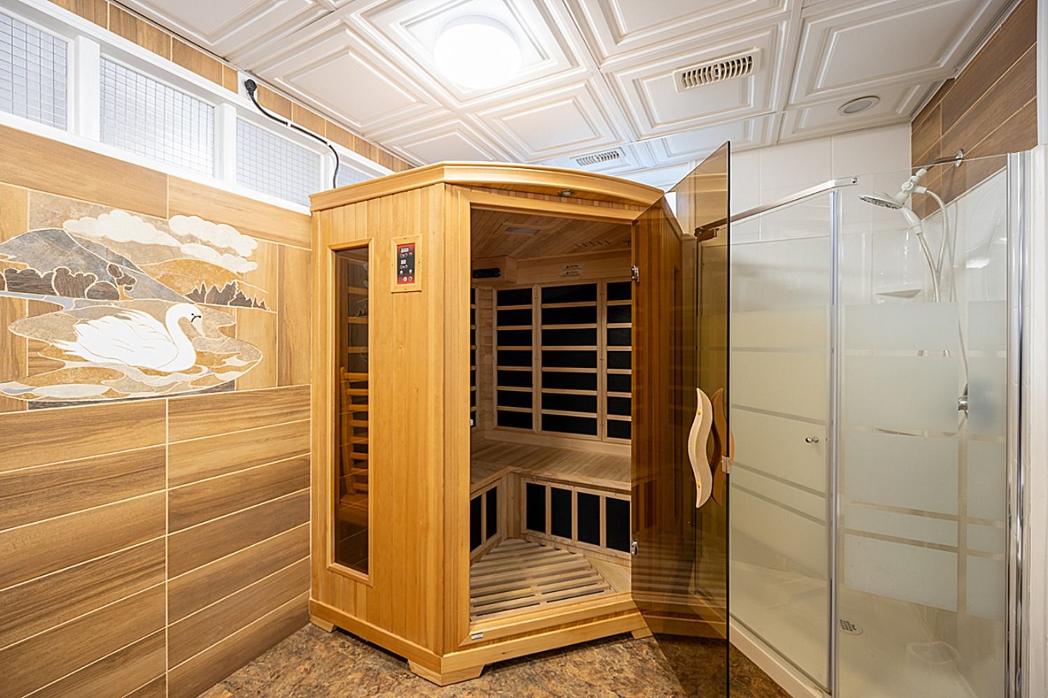 • Finished lower level with rec room, extra bedroom, and sauna for versatility.