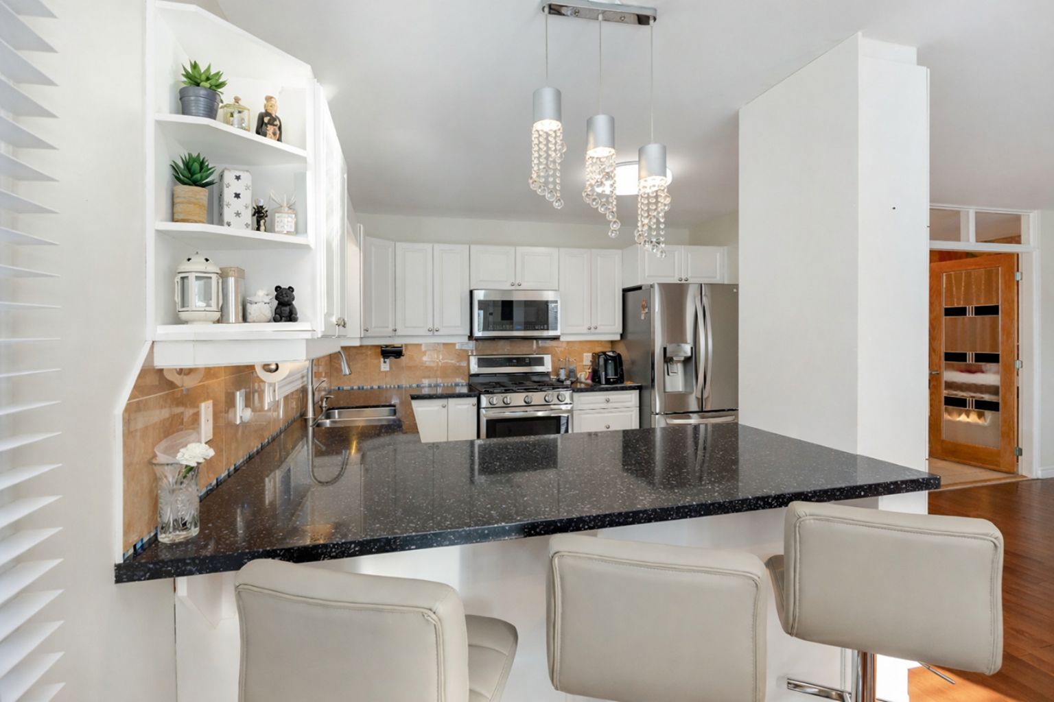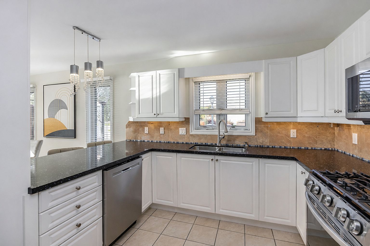 • Inviting kitchen features granite counters and newer stainless steel appliances.