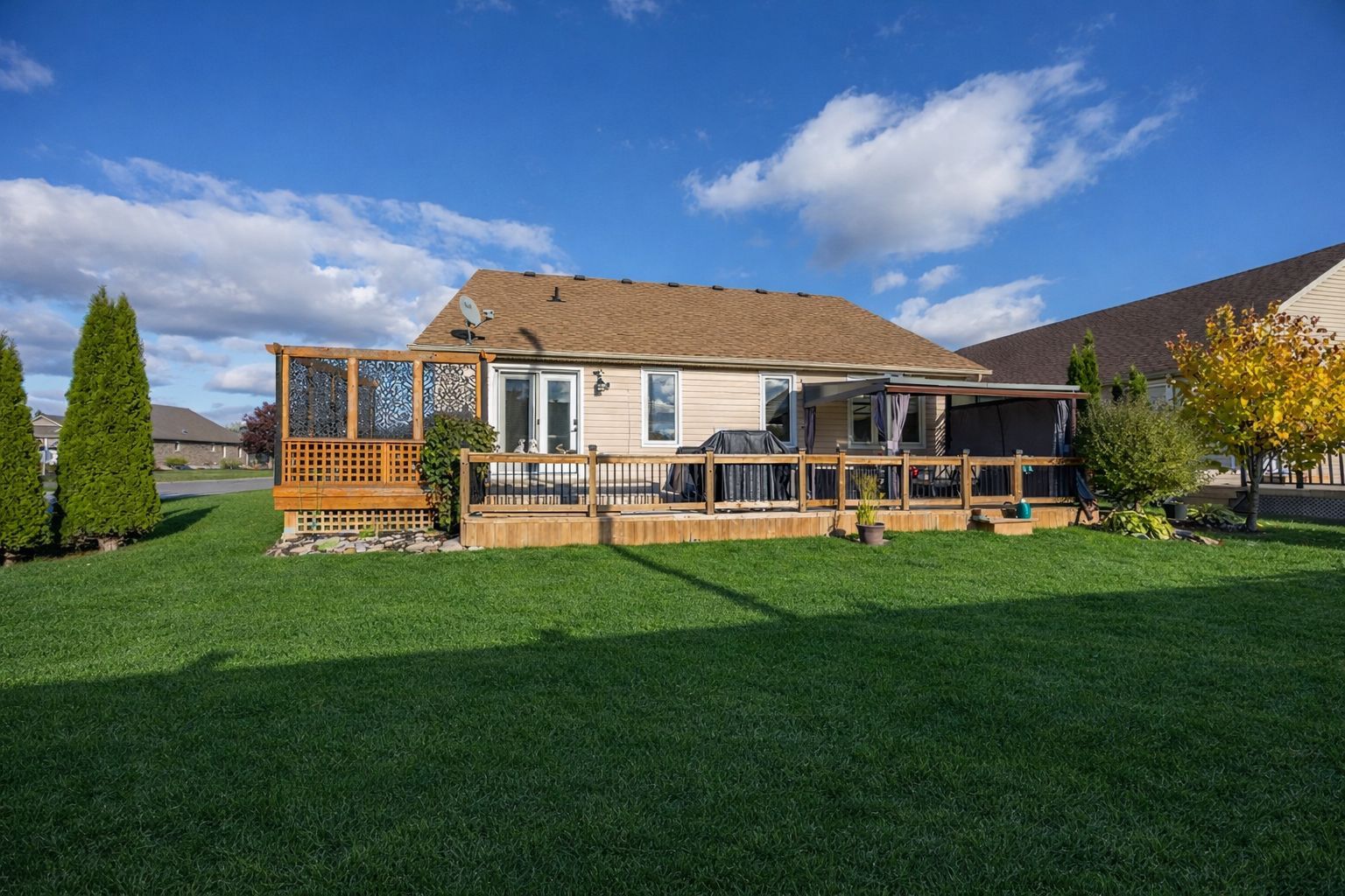 The easy lifestyle you've been waiting for begins here! Set on a generous corner lot in sought-after brighton by the bay, this beautifully maintained brick-front bungalow offers the perfect blend of comfort, space, and low-maintenance living. The bright open-concept main floor features hardwood floors, a cozy gas fireplace, and an inviting kitchen with granite counters, under-cabinet lighting, newer stainless steel appliances, gas stove, and breakfast peninsula. Garden doors lead to a private deck and peaceful backyard retreat, perfect for relaxing or entertaining. The spacious primary suite offers a walk-in closet and spa-inspired 5-piece ensuite, while a second bedroom, additional bathroom, main floor laundry, and inside access from the heated double garage add everyday convenience. The finished lower level with large above-grade windows offers a generous rec room with second gas fireplace, additional bedroom, 3-pc bath with infrared sauna, and flexible space for guests, hobbies, or extended family. Enjoy access to the sandpiper community centre ($492/year), plus nearby walking trails, marina, shopping, and all the charm of brighton. With over 2,500 sq ft of finished living space, a pre-home inspection available, and move-in ready appeal, this is a home you can step into and enjoy right away.