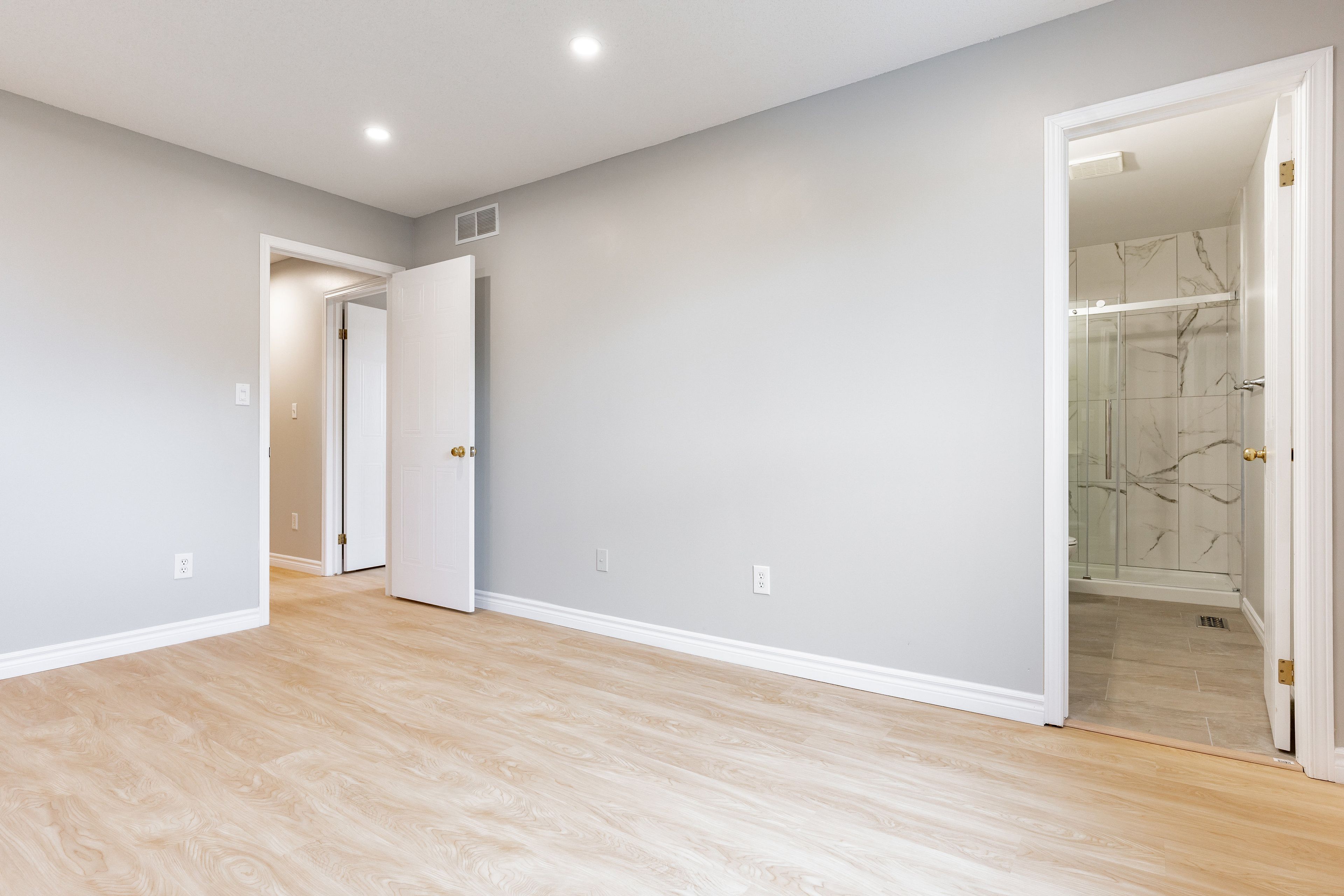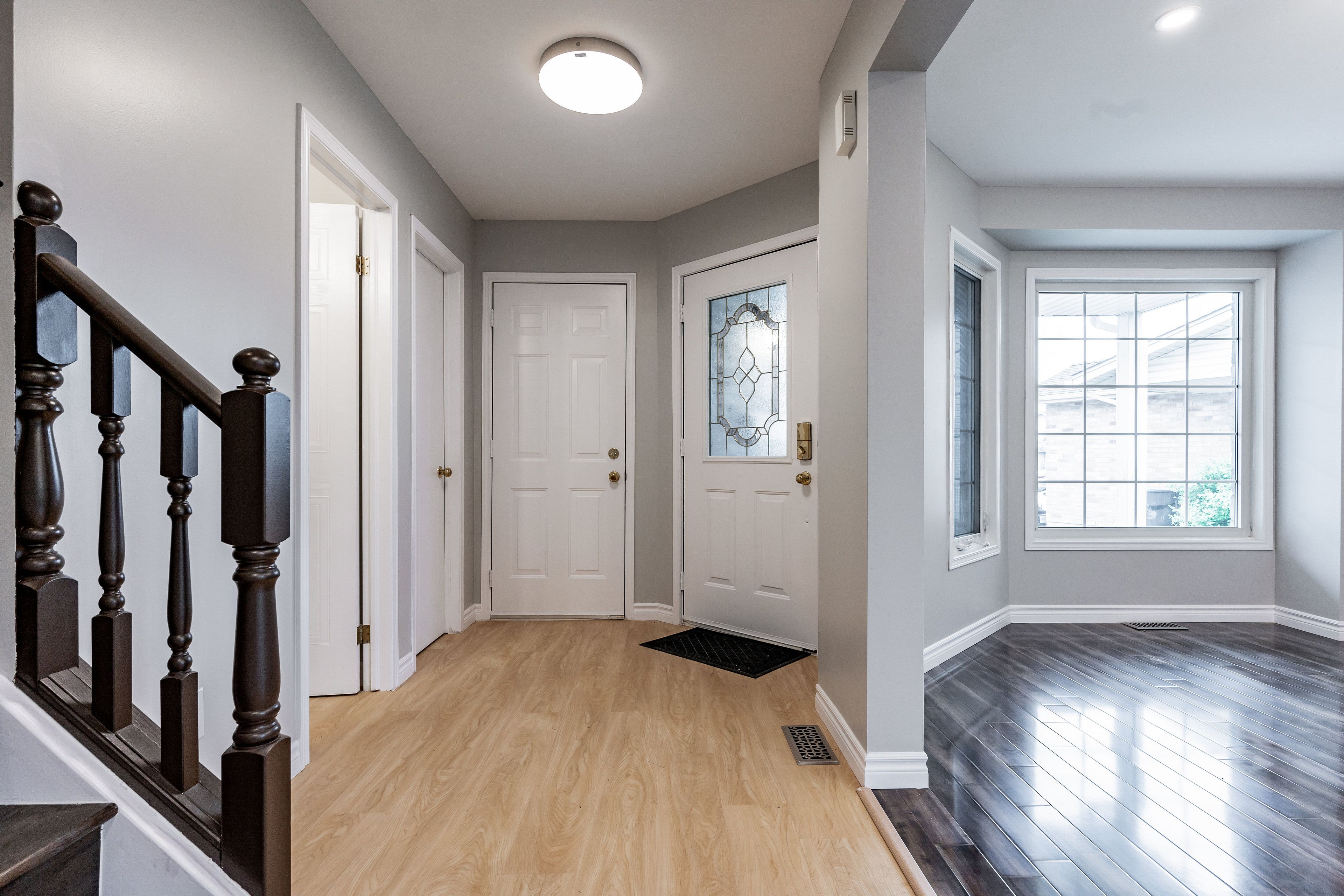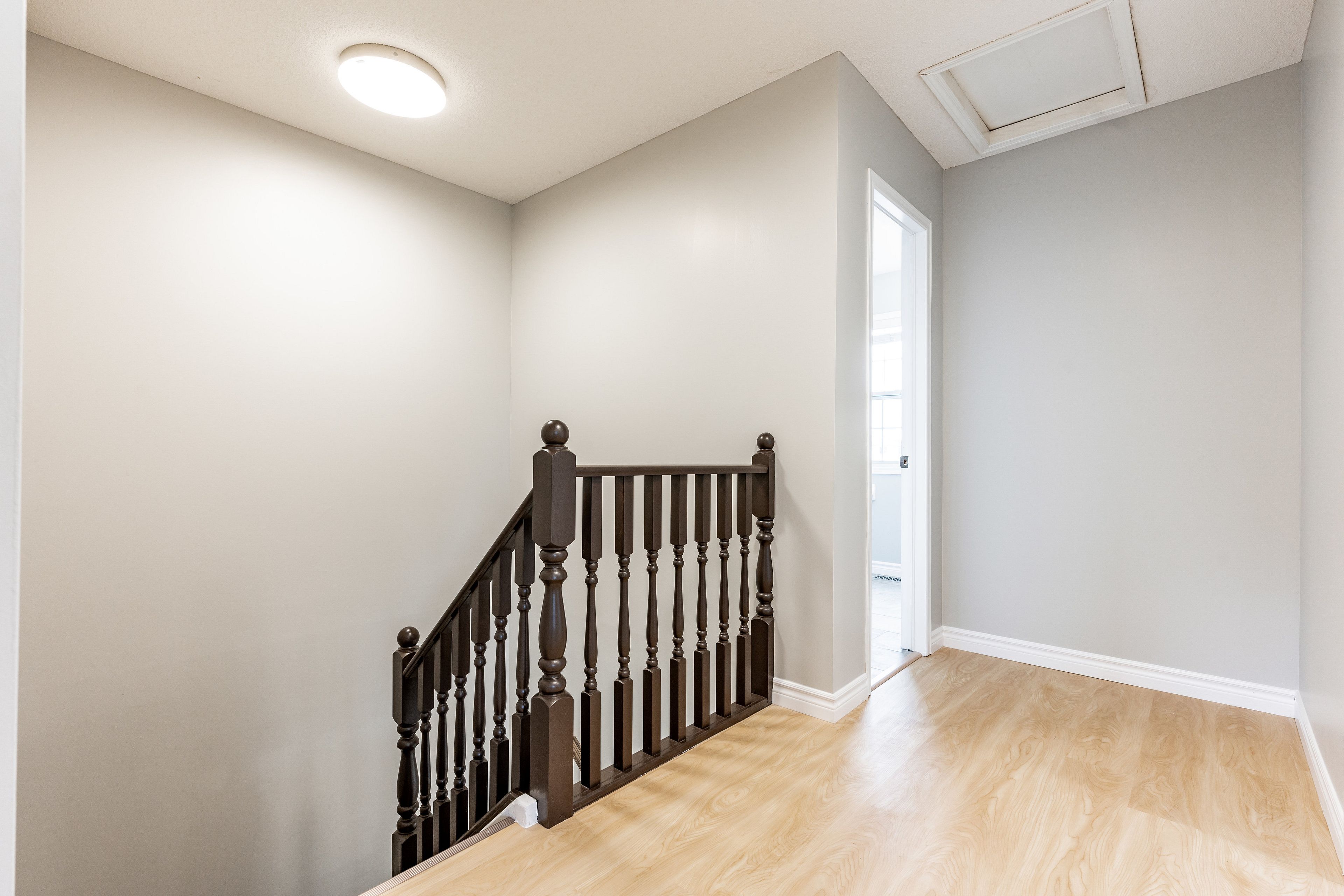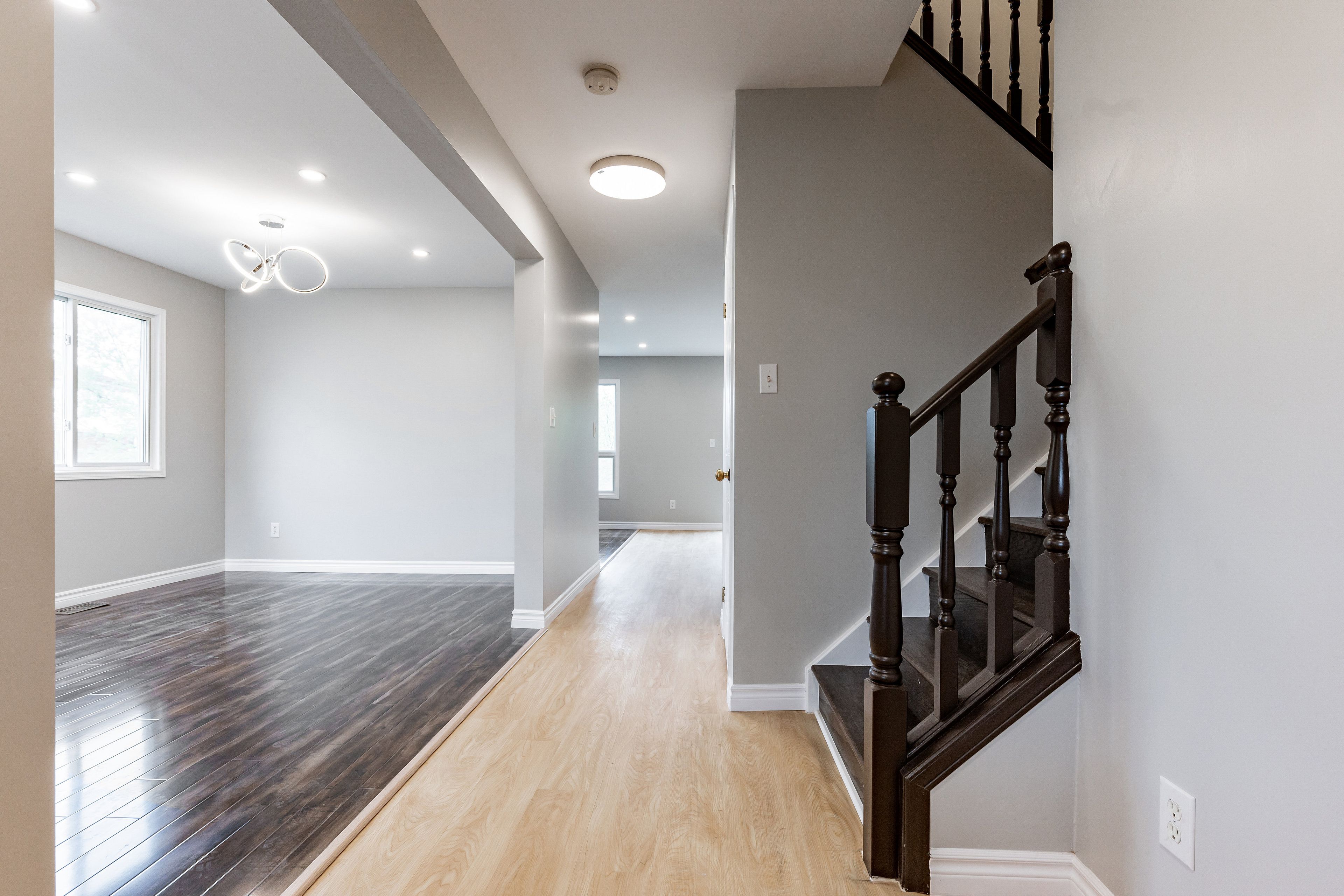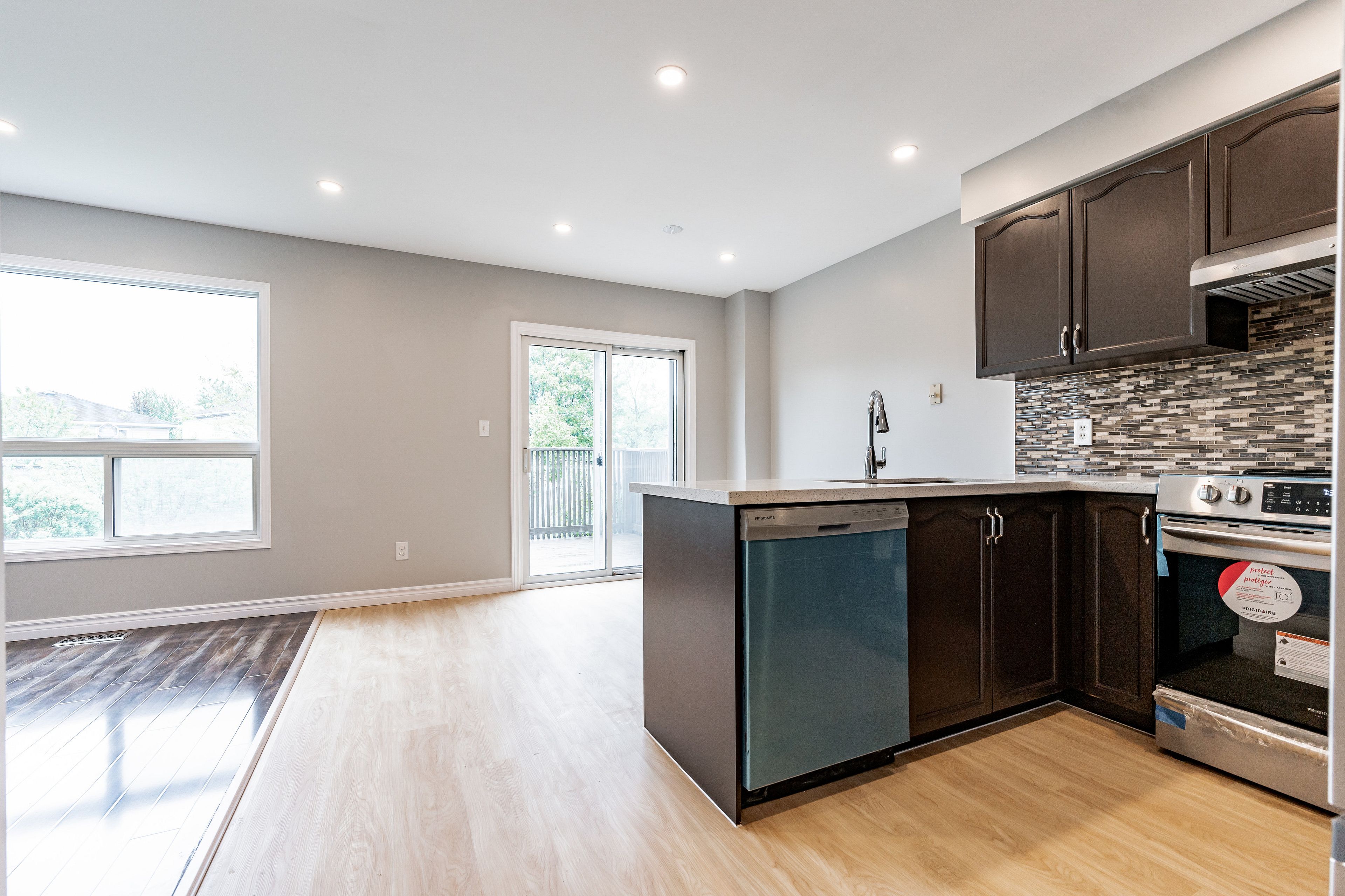 Welcome to the upper level of this beautifully renovated 2-storey home (basement excluded), situated on a spacious pie-shaped lot of 4,563. 89 sq. Ft. With over 1,500 sq. Ft. Of living space above grade. Enjoy privacy with no rear neighbours and direct access to walking trails and parks, while staying close to schools, shopping, public transit, highways, and amenities. This home features 3 bedrooms and 2. 5 bathrooms, including a primary bedroom with an ensuite. The main floor offers a separate living room, dining room, and family room, along with a stylish kitchen showcasing quartz countertops, new stainless steel appliances, and a designer backsplash. Walk out from the dining area to a wooden deck overlooking a pet-friendly trail, perfect for entertaining. Upgrades include a new bathroom, hardwood, vinyl and laminate flooring, pot lights, pendant lighting, fresh paint, and a fenced front yard. Tenants are responsible for 70% of utilities.
