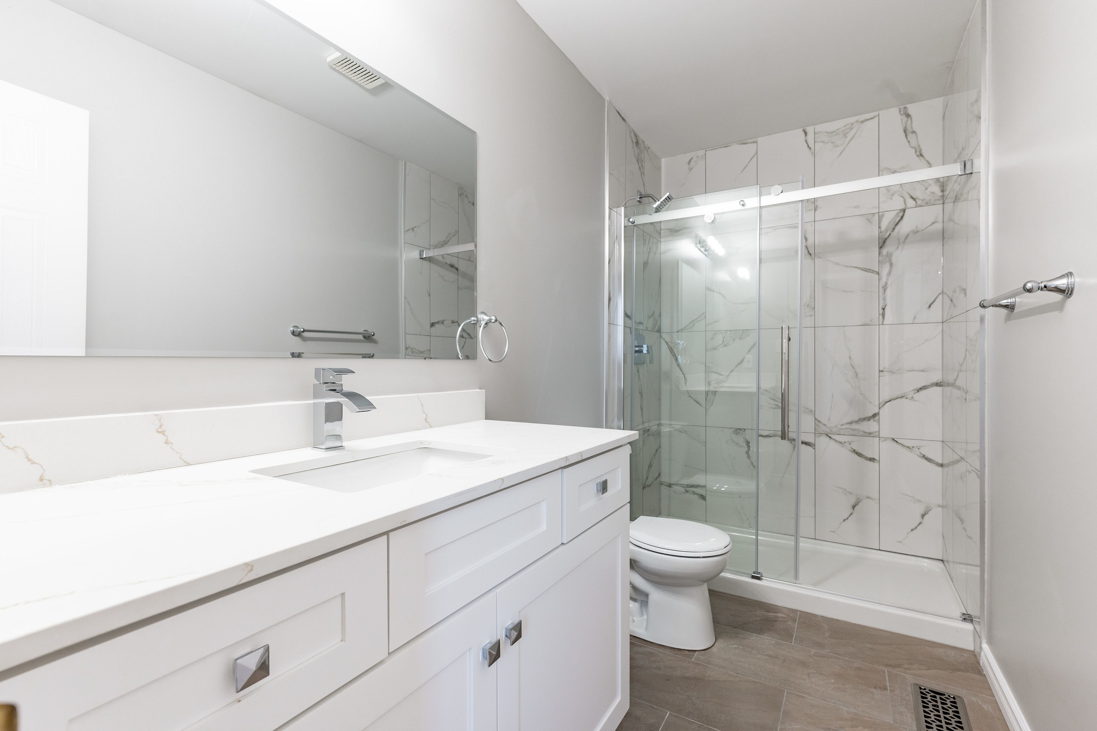 • Stylish kitchen with quartz countertops and new stainless steel appliances.
