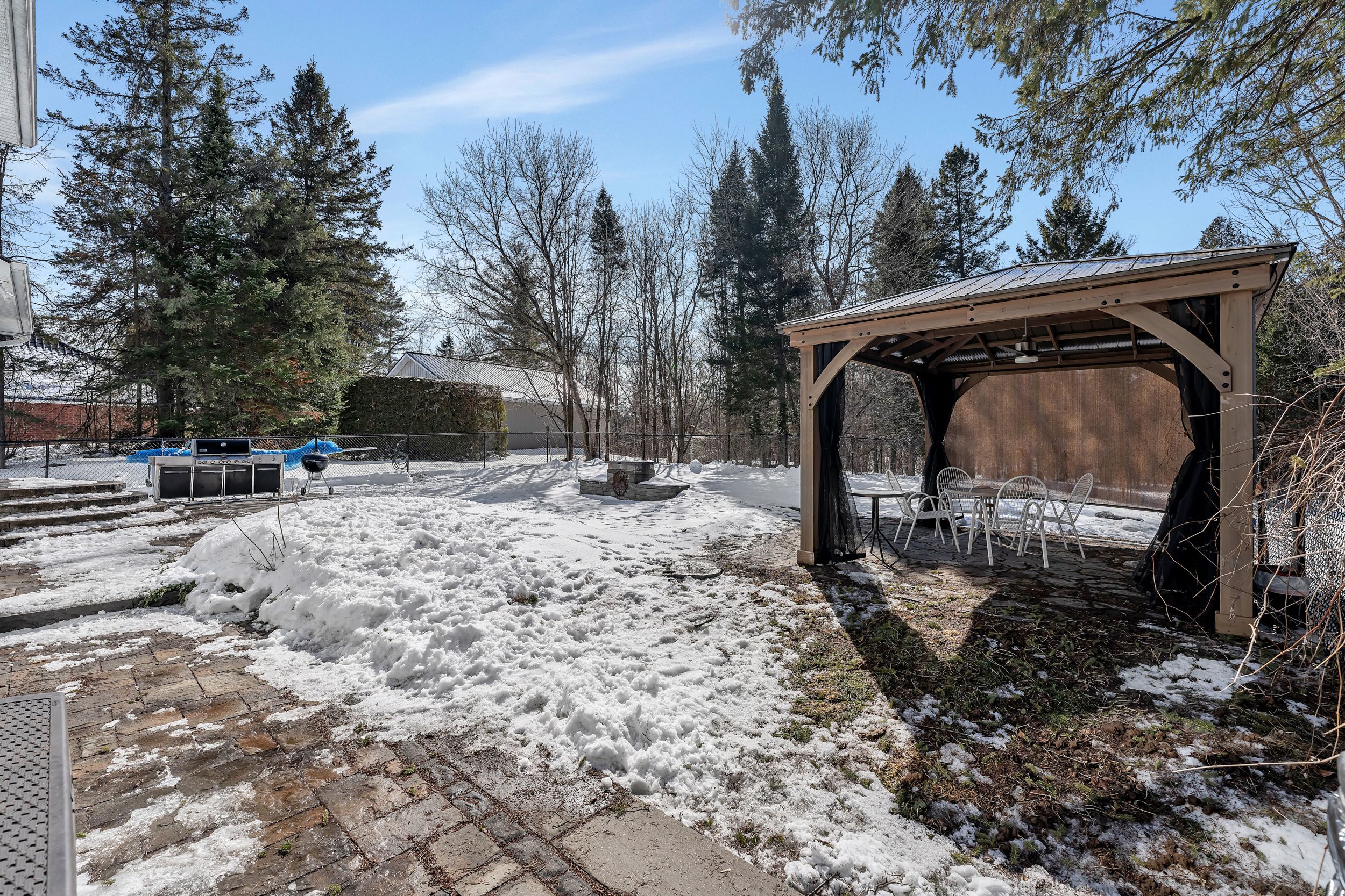 • Private backyard oasis featuring an in-ground saltwater pool and gazebo.