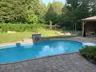 Exceptional estate living on a rare ravine lot & in-ground pool! This beautifully maintained 3-bedrm split-level home sits on a generous 125' x 340' lot and showcases a striking white stone façade that enhances its curb appeal. Inside, you'll find hardwood & ceramic flooring throughout, 2 full bathrooms-including an updated main bath w/a stunning ceramic & glass shower-and a functional layout ideal for families. The inviting family room features a wood-burning fireplace and patio doors with direct access to the backyard, creating a warm and welcoming space. The fully finished basement offers a spacious recreation room, sound-treated music studio (through bsmt: roxul insulation, acoustic ceiling tiles, resilient channel, wired for speakers), and a dedicated storage/mechanical room for added functionality and organization. The kitchen is well-appointed w/ gas cook top, built-in oven & dishwasher. Additional features include central vacuum, alarm system, air exchanger, ev charging plug & 2023 furnace (a/c 2006). Step outside to your private oasis-accessible from patio doors-featuring beautiful interlock terraces, a 14' x 12' screened cedar gazebo, and a cozy exterior fireplace. Enjoy the 30' x 15' saltwater in-ground pool (2016) with natural gas heater and robotic cleaner, all within a fenced area of approximately 50' x 50'-ideal for families or pets. For hobbyists or additional storage, the property features a 19. 5' x 19. 5' insulated & heated double garage, a 35' x 15' exterior garage w/electricity (2022), a 10' x 8' pool shed & generlink hookup. Shingles approximately 10 years old (30-year shingles). A rare opportunity to own a turnkey home combining comfort, functionality & resort-style living in a sought-after estate subdivision.***open house march 29, 2-4pm. 24 hours irrevocable on all offers.