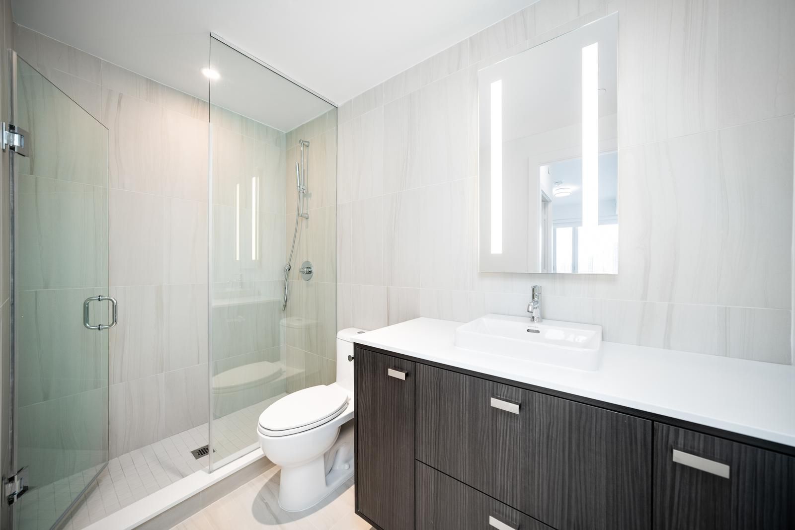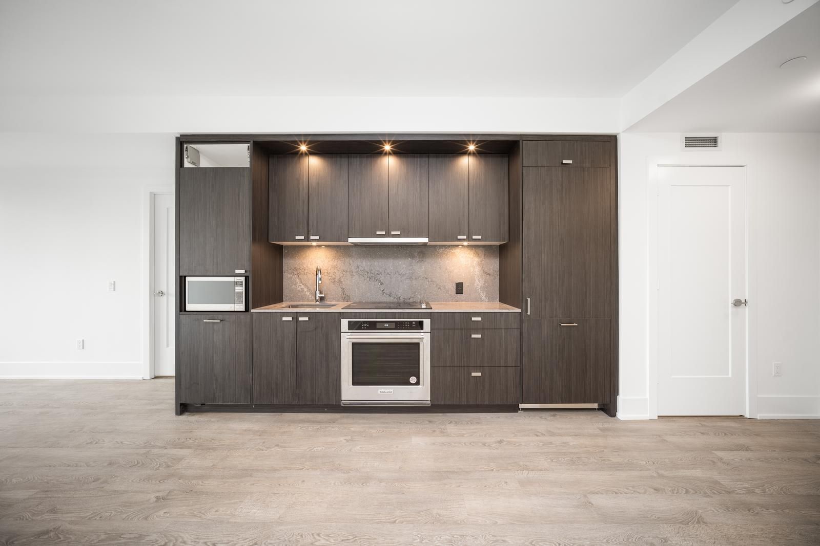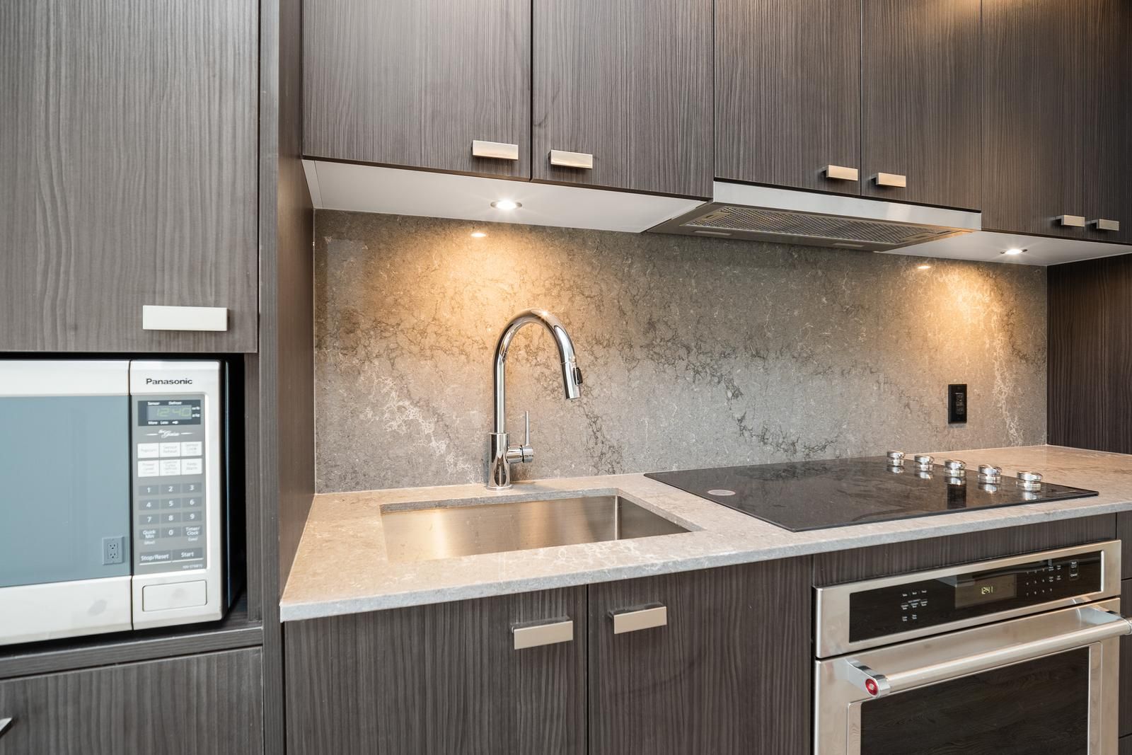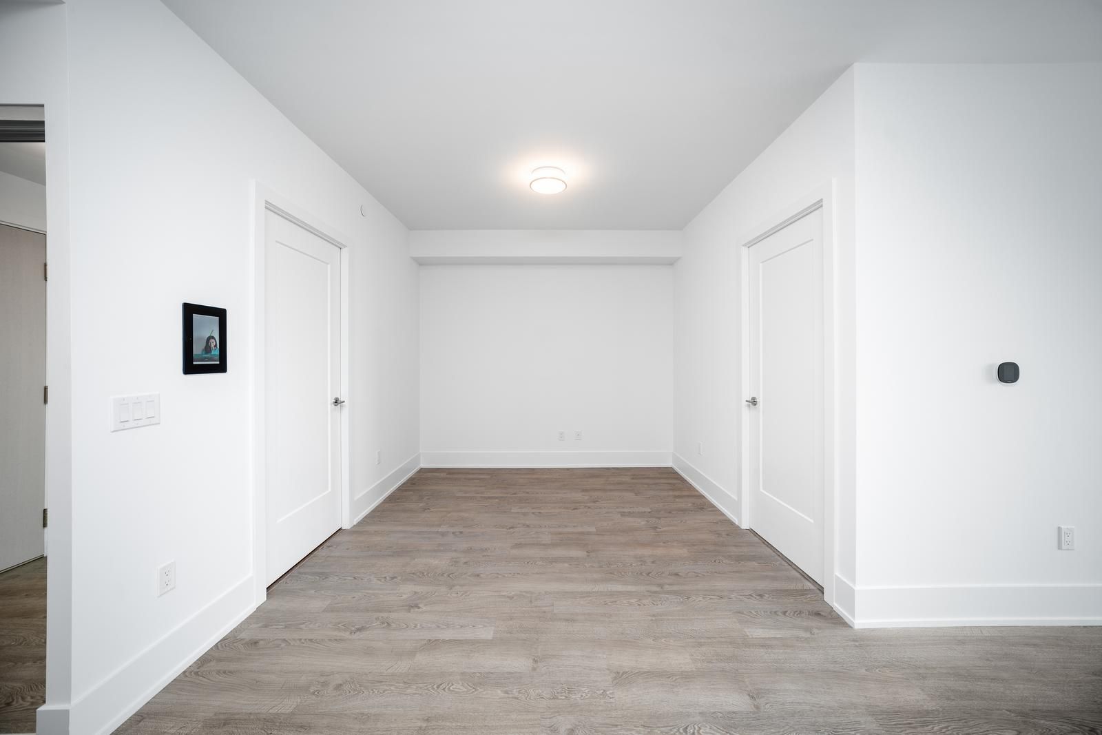 This luxury 2 bedroom and 2 bathroom + den condo suite at offers 965 sq. Ft. And 9 foot ceilings. Located on the 18th floor. West facing views with a balcony. This suite comes fully equipped with energy efficient 5-star stainless steel appliances, integrated dishwasher, kitchen island, contemporary soft close cabinetry, in suite laundry, standing glass shower, and floor to ceiling windows with coverings included. Parking is also included in this suite.
