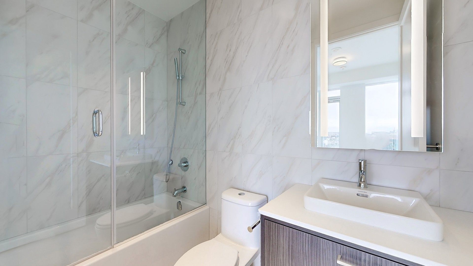 • Spacious 2-bedroom, 2-bath corner suite with large windows and natural light.