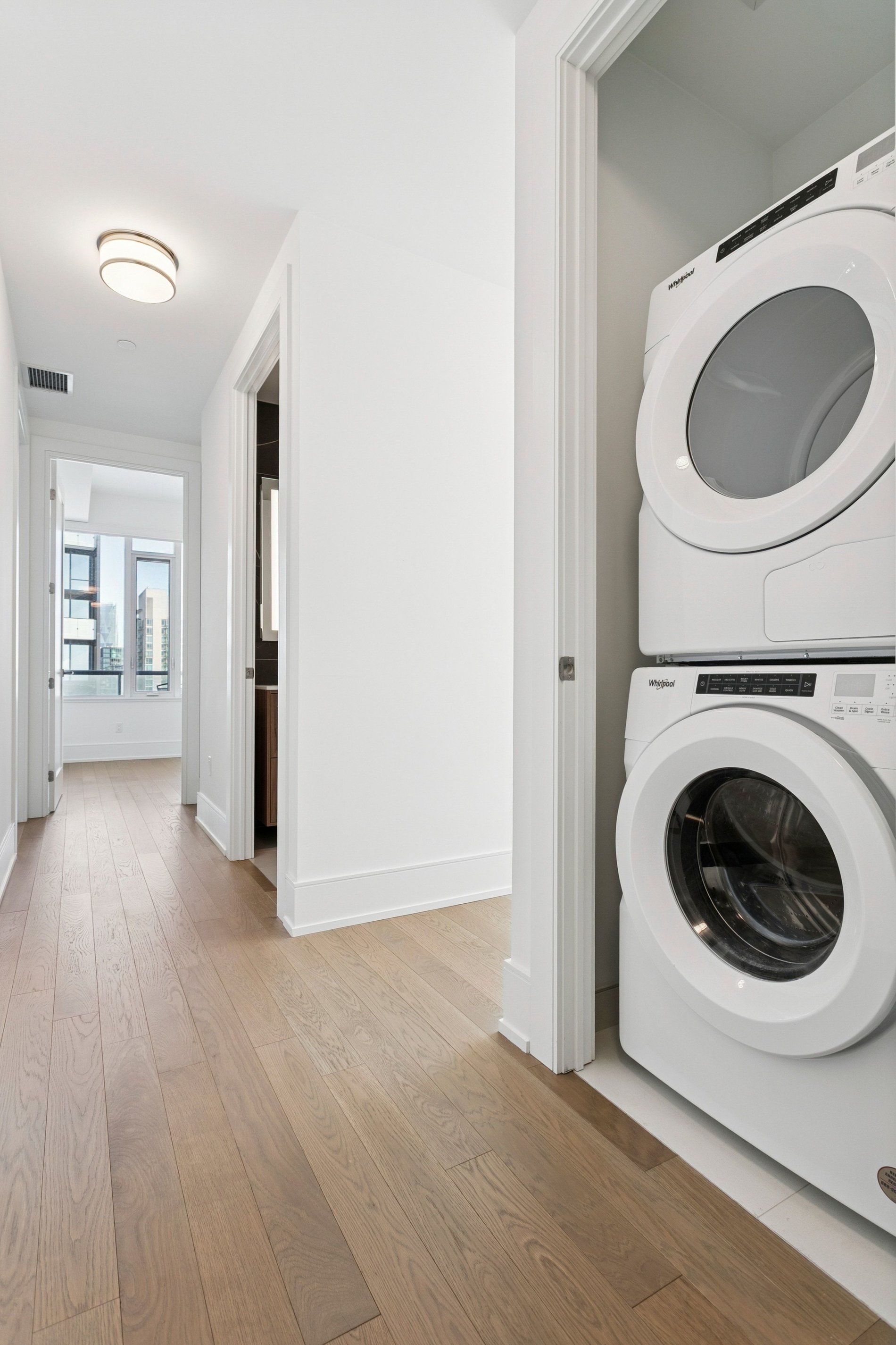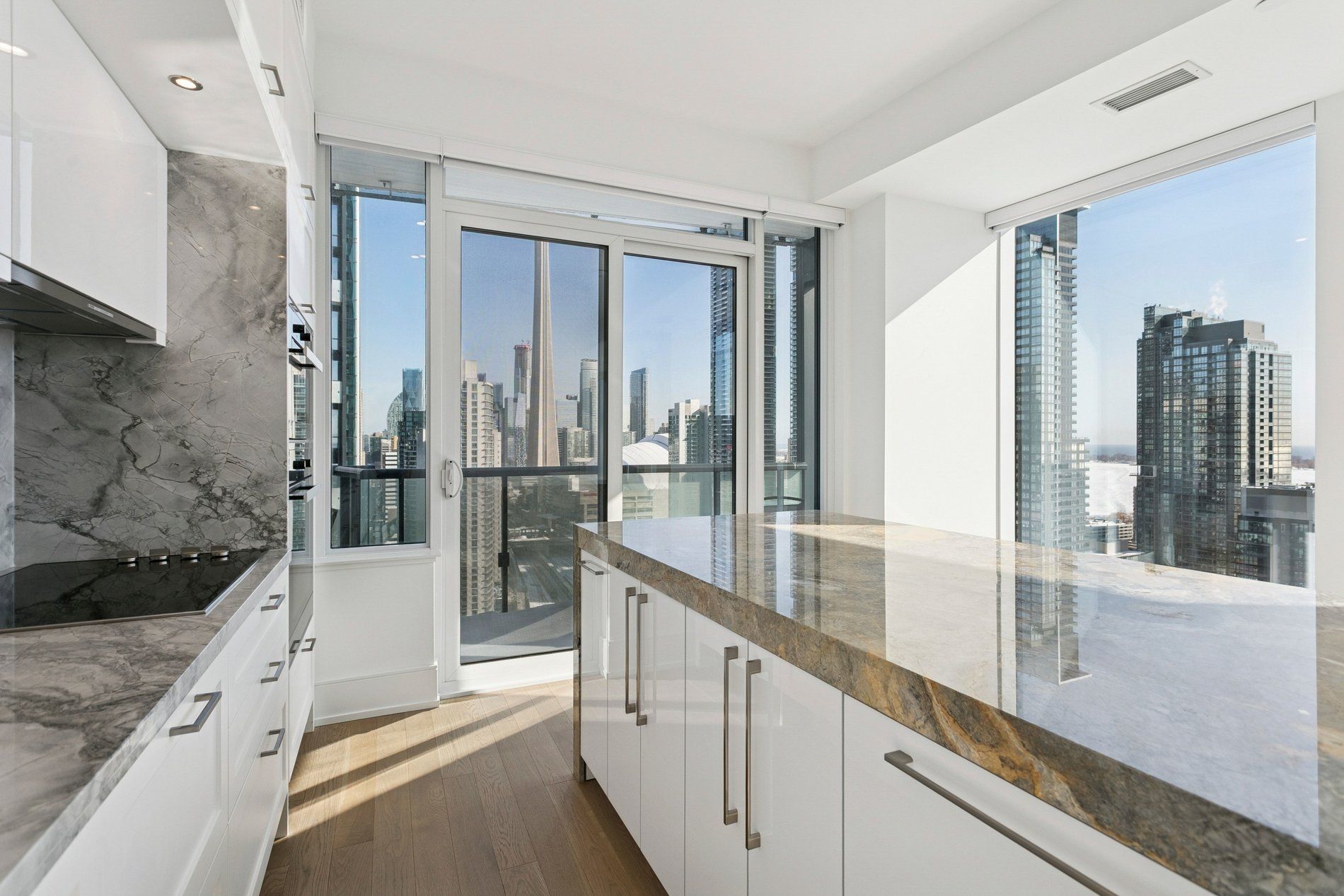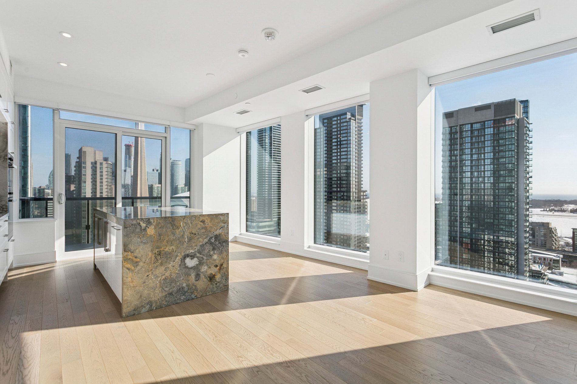 Rare south east exposure, 10 ft ceilings, incredible natural light and panoramic city views at the well. Living in this landmark community built by tridel means enjoying the highest standard of construction, durability, and finishes available in toronto. The interior is anchored by a massive, custom-built island that provides superior storage and a high-end social hub you won't find in standard layouts. Total square footage is 1069 + balcony overlooking lake ontario and cn tower. Building amenities include gym, party room, pool and 24/7 concierge along with discounts at many stores and restaurants at the well. This unit can also be furnished.