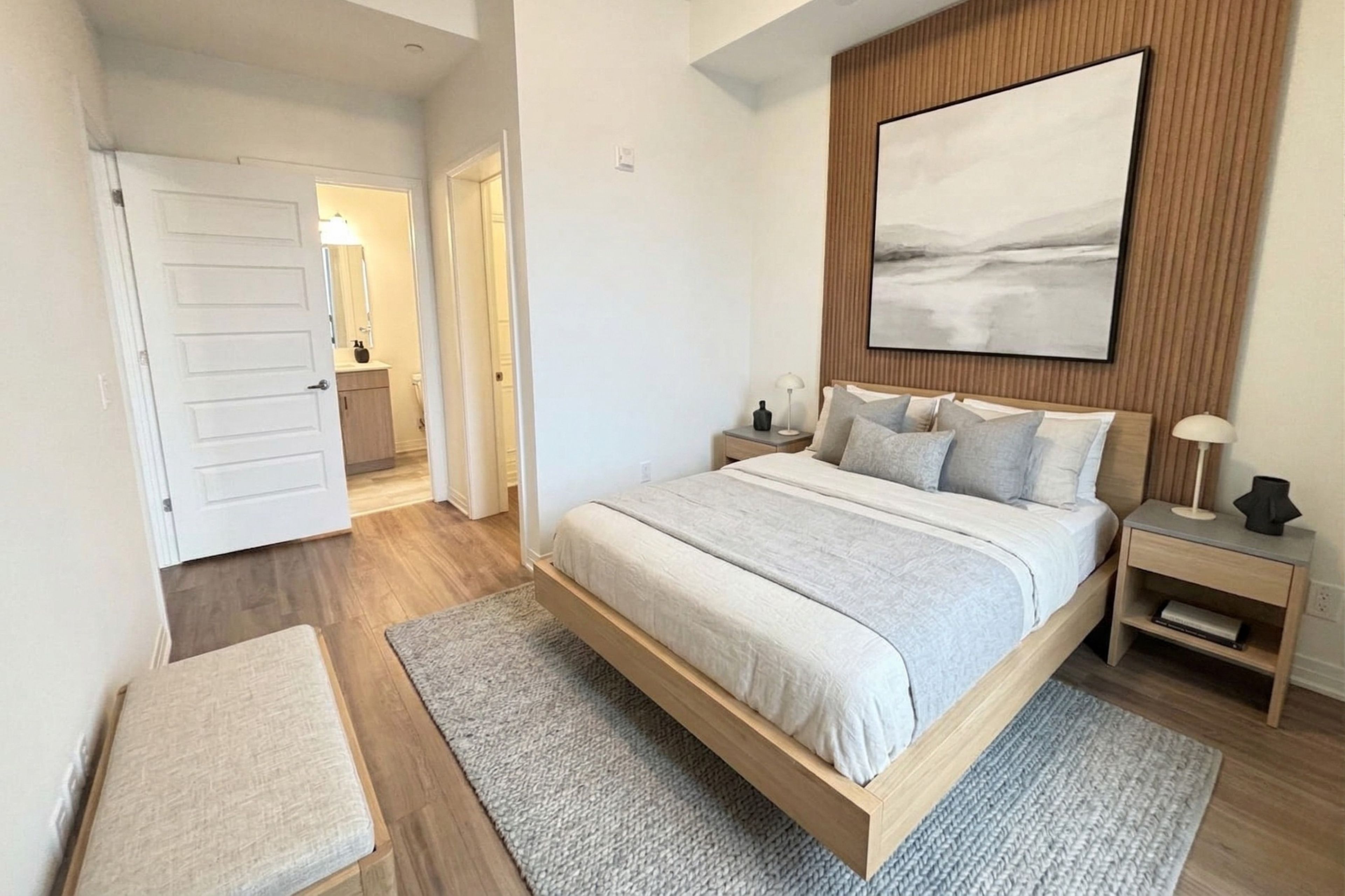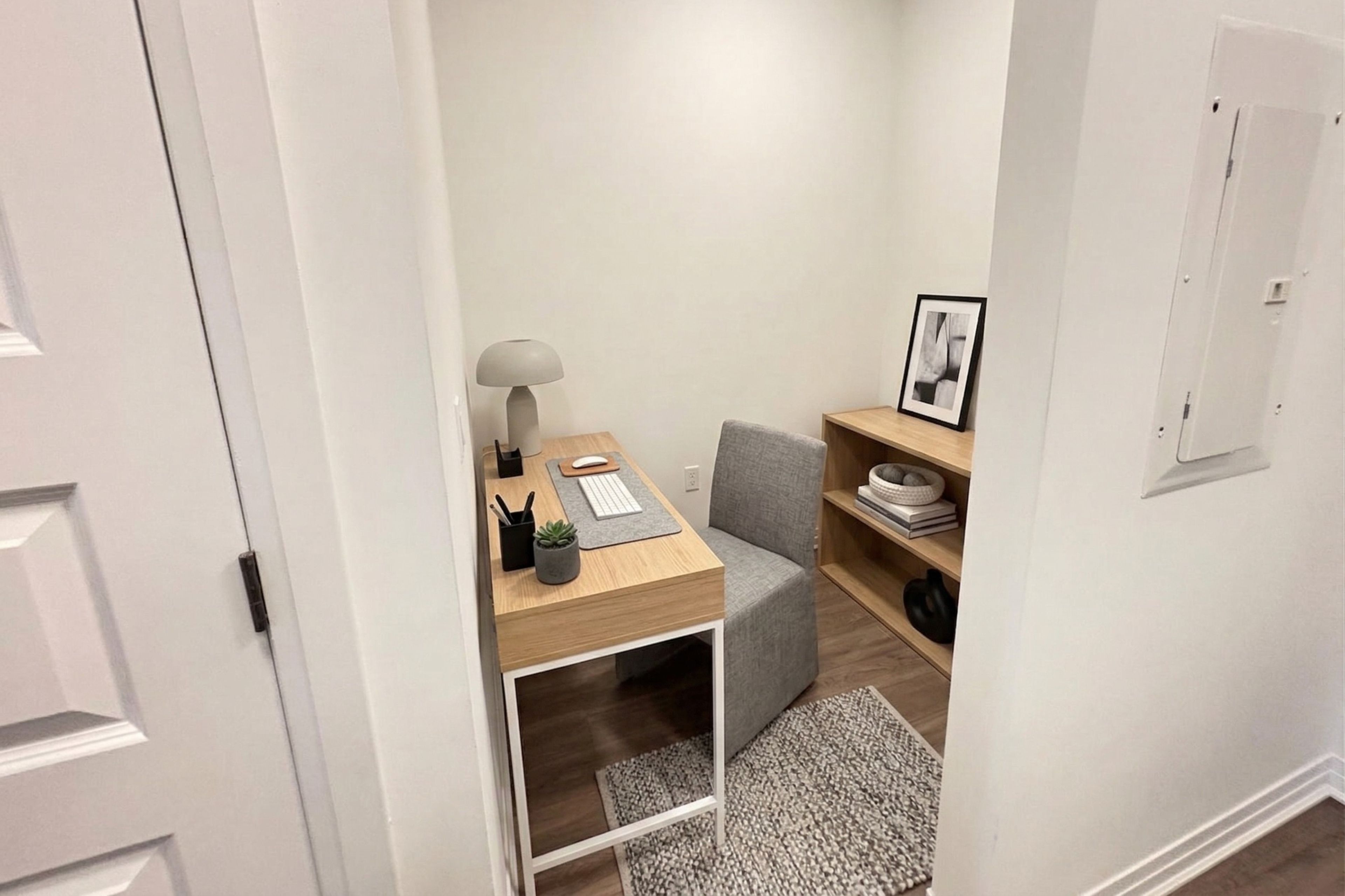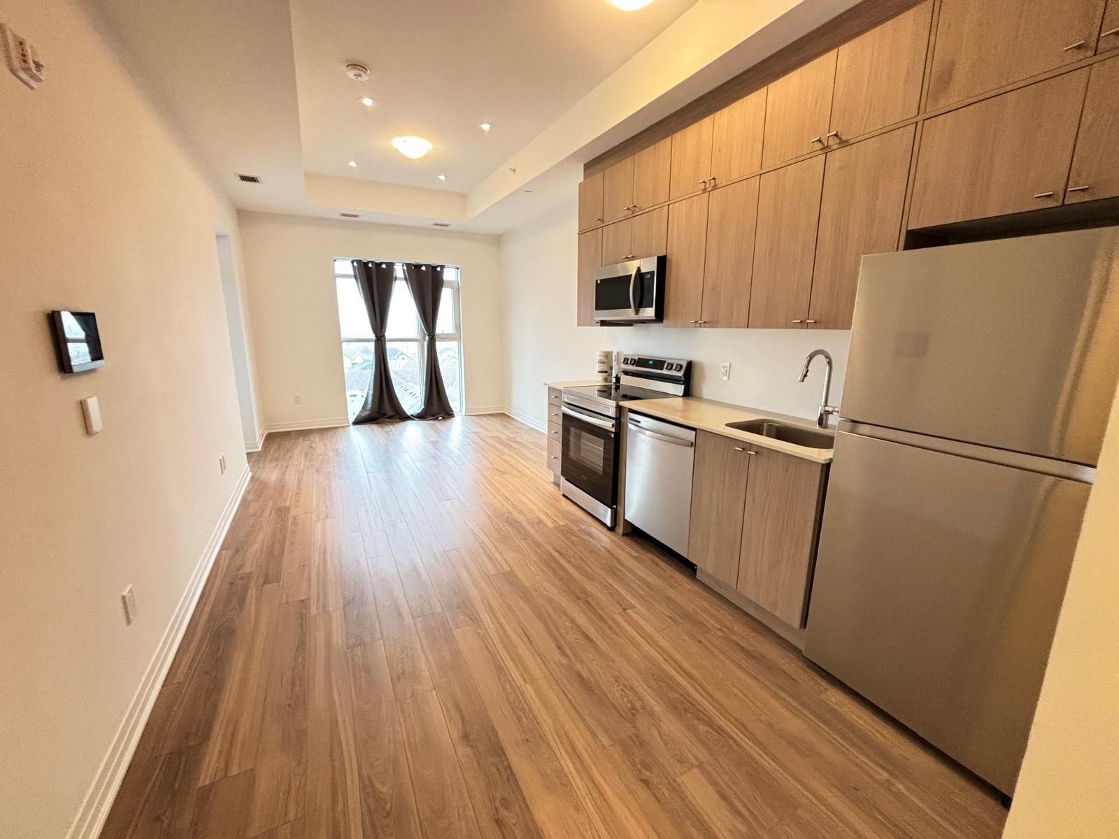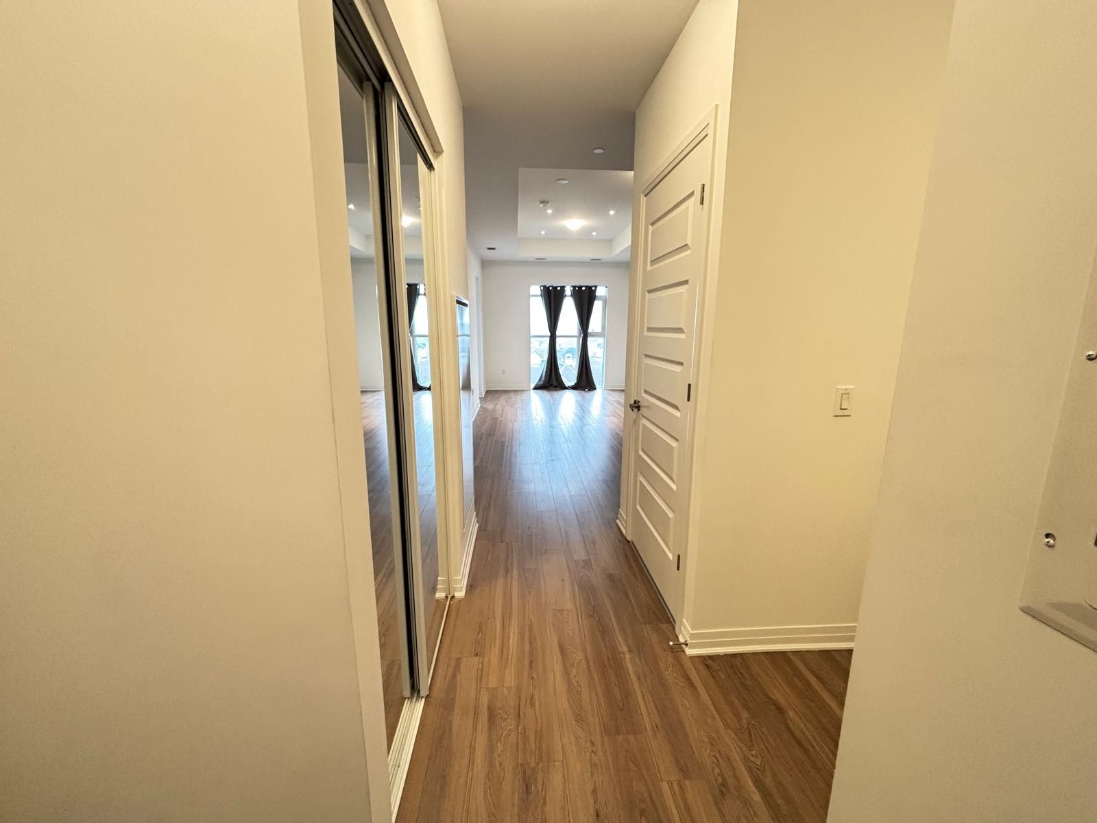 Experience this upgraded 1 bedroom plus den penthouse suite on the 6th floor, featuring high ceilings, pot lighting, and a smart, functional layout filled with natural light. The modern kitchen boasts stainless steel appliances, over cabinet storage, and sleek finishes, while the separate den provides a versatile space for a home office or guest area. Relax on the private balcony with views of neighboring homes and the escarpment, or enjoy the convenience of a stand-up shower in the primary bedroom's 3-piece ensuite, a walk-in closet, and an additional full bathroom. This unit includes a parking spot close to the elevator and a locker on the same floor, with access to amenities such as concierge service, fitness facilities, visitor parking, and a party room with rooftop terrace and bbq area on the same level. Located in a prime area with easy access to highways, shopping, daily essentials, and milton hospital. Professionally managed by condo1 property management inc. Some photos have been virtually staged for visualization purposes.