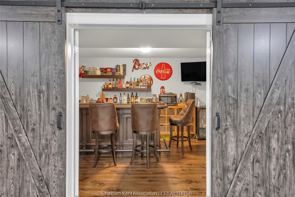 • Large finished basement featuring a custom bar for entertaining guests.