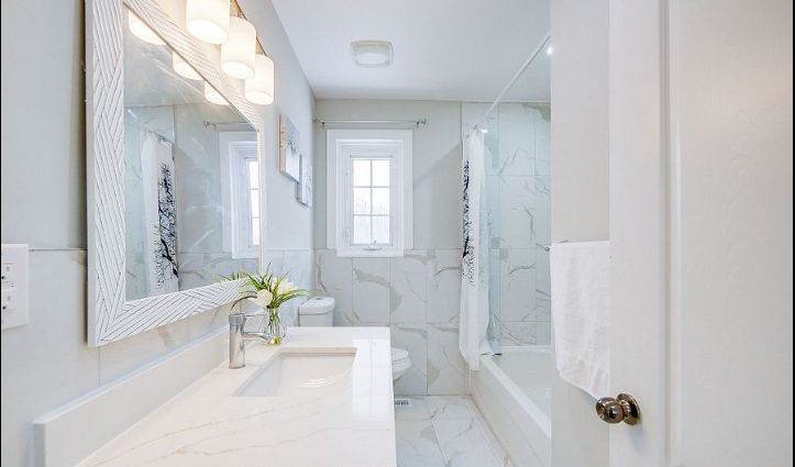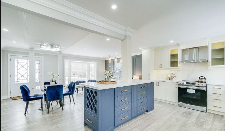 • Stylish kitchen with quartz counters and a large island for gatherings.