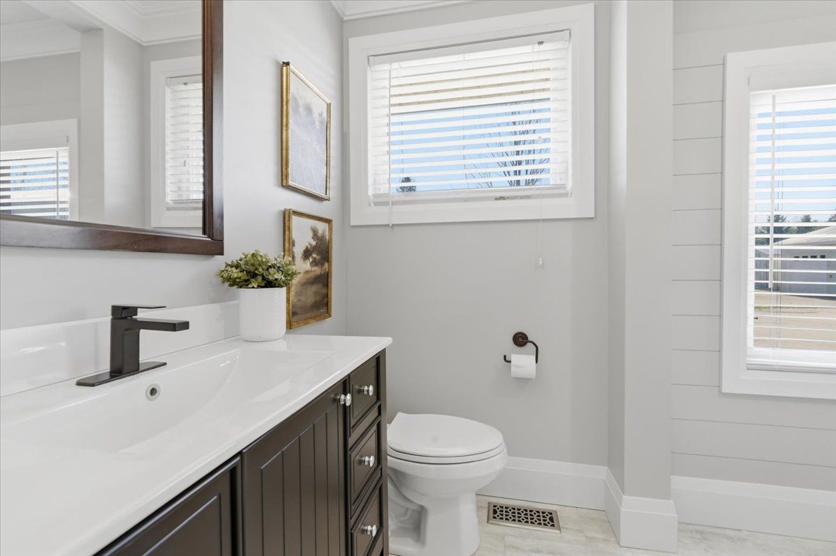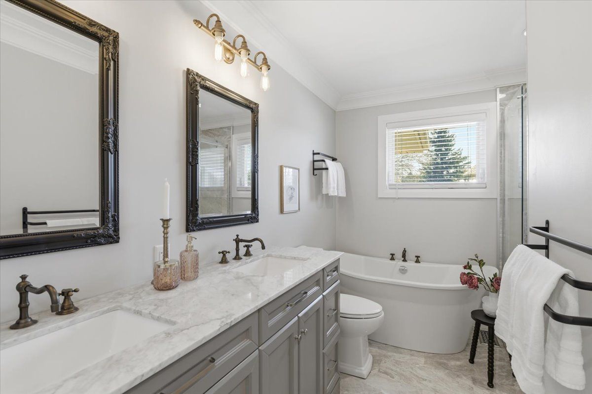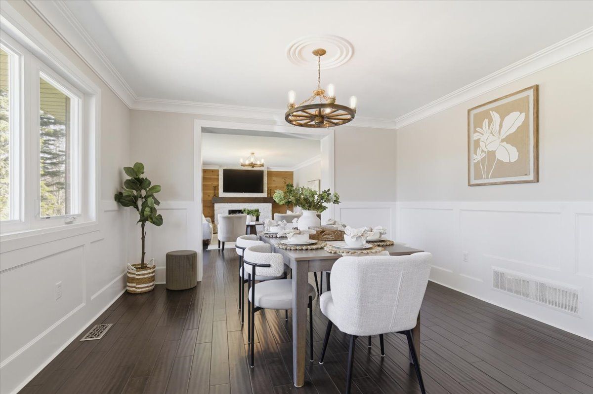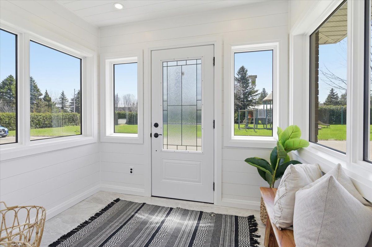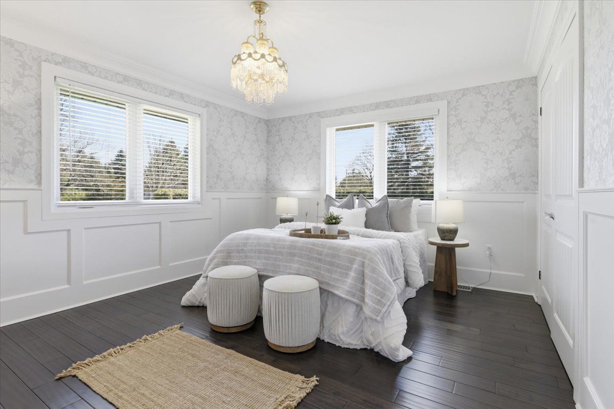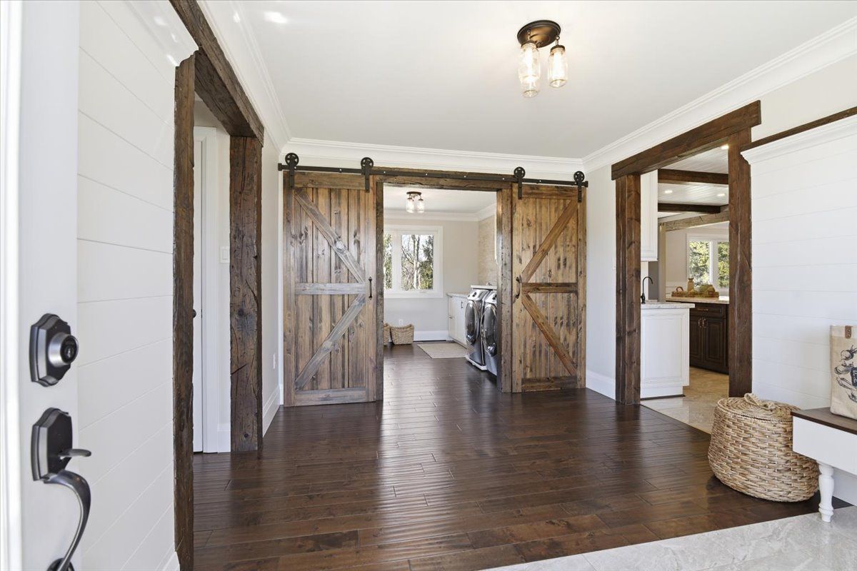 Experience the perfect blend of sophisticated design and quiet country living in this stunning brick bungalow, where superb attention to detail is evident in every corner. From the moment you step into the large, sun-drenched foyer the home's seamless floor plan and high-end finishes take center stage. The heart of the main level is a chef-inspired kitchen featuring sleek quartz countertops, backsplash, a convenient pot filler and rustic wood beams that add warmth to the space. Outfitted with a copper sink, a center island with integrated storage and a separate cooktop and oven, this culinary space flows effortlessly into a dining room adorned with elegant wainscoting. The refined aesthetic continues throughout the main floor with rich hardwood flooring and classic crown moldings. In the living room, massive windows flood the space with natural light, highlighting a striking wood and tile feature wall with a mantle over the fireplace. The private quarters include four generous bedrooms and a lavish main bathroom boasting dual sinks, a glass shower, and a soaking tub, complemented by a dedicated laundry room and an additional 3-piece bath. Far exceeding the expectations of a typical basement, the lower level reveals itself as a high-end, secondary residence that mirrors the quality and scale of the main floor. This bright, expansive living space features a walk-out to the garage and is flooded with natural light through large above-grade windows. It boasts a second gourmet kitchen with quartz counters and a center island, open to the dining area and a family room finished with hardwood. With two additional bedrooms one featuring a private ensuite, two separate recreation areas and a full 4-piece bath with its own laundry facilities, this level offers true independent luxury. Situated right off the 115, on an expansive lot with two separate driveways, two garages, and sheds, this property provides unparalleled space and versatility for any lifestyle.