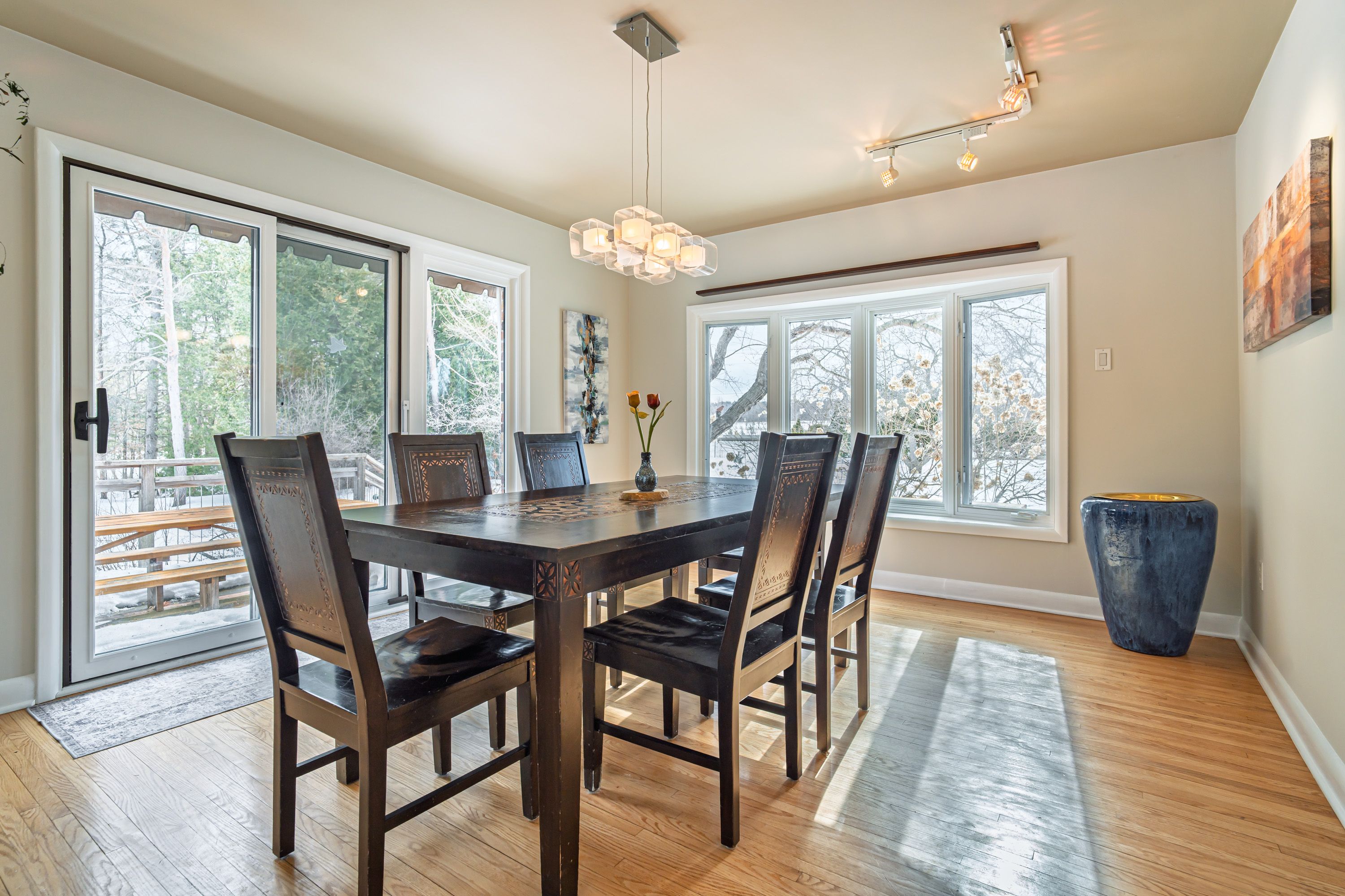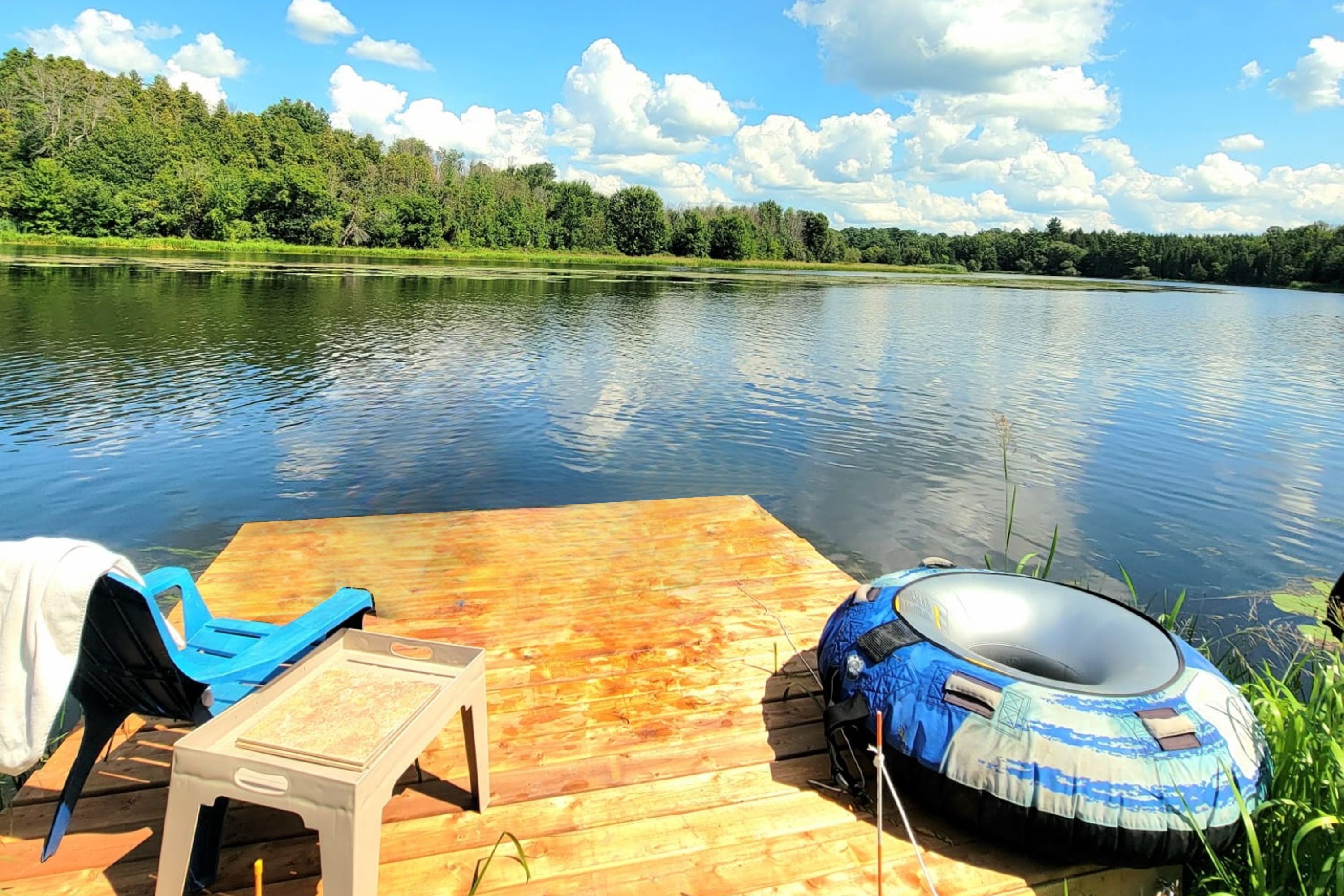 • Trails lead to 550 feet of private waterfront for swimming and kayaking.