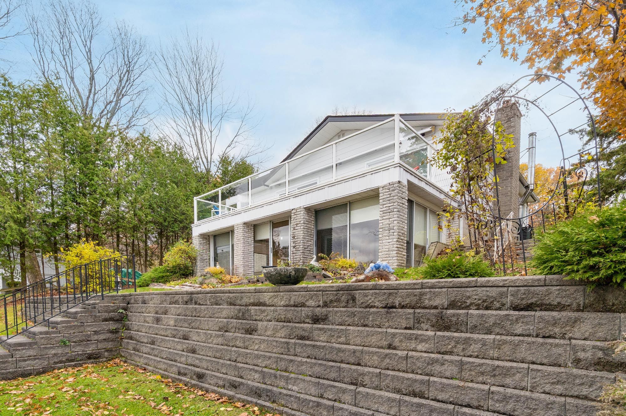 Top 5 reasons you will love this home: 1) indulge in 105' of real, accessible shoreline with a stunning south-easterly view toward snake island, where you will wake up to sunrises over the water and end the day with a golden evening glow that you simply can't replicate inland 2) this is one of those rare and coveted shorelines that is rarely for sale, peaceful, mature, and deeply treasured, offering a chance to embrace a lifestyle that few ever get to experience 3) the additional rear parcel offers room to grow, where you can imagine a detached studio, guesthouse, workshop, or a garage to showcase a collection of vintage cars and recreational toys 4) a thoughtful layout featuring three bedrooms and three bathrooms, an updated kitchen, hardwood flooring, open-concept family areas, a muskoka room, a spacious primary suite, a sauna, and a lower level walkout that seamlessly connects you to the water, designed for effortless everyday living and year-round enjoyment 5) freshly painted with an interlock driveway, single car garage with inside entry, and an outdoor patio perfect for entertaining, as well as the forced air heating ensures comfort through the seasons, and the water view follows you from nearly every room. 1,448 above grade sq. Ft. Plus a finished lower level.
