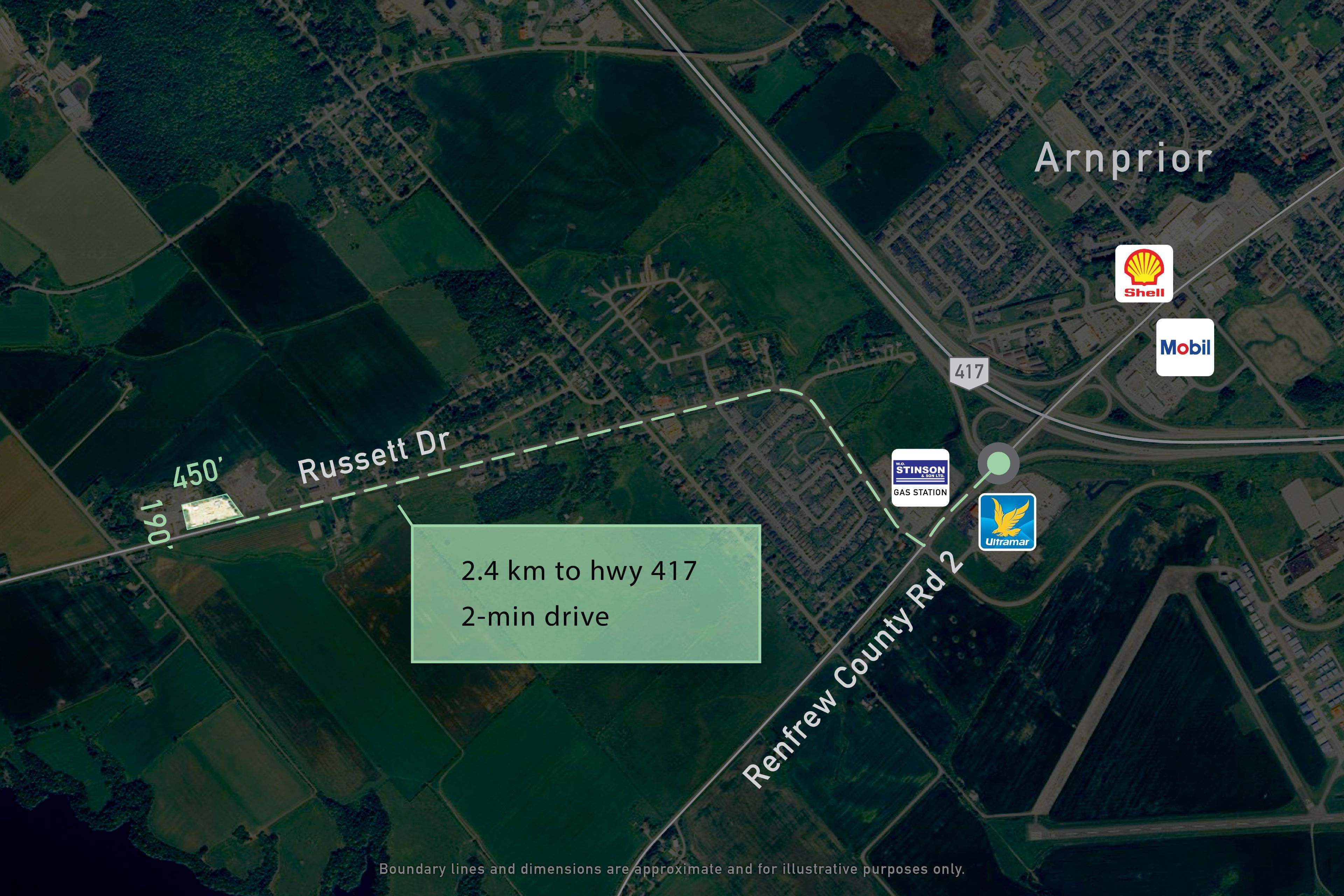 For lease: located at 482 russett dr in arnprior's industrial corridor, this 2-acre light industrial parcel offers a mostly concrete yard, partial frontage fencing, and a 4-bay open garage structure (10ft x20ft bays, 10ft clear height). Hydro is available. Suited for outdoor storage, fleet parking, or contractor use. Immediate possession. Minutes from the hwy417/17 junction with direct access to ottawa and the upper ottawa valley. Gross lease; utilities and ground maintenance are the tenants responsibility.