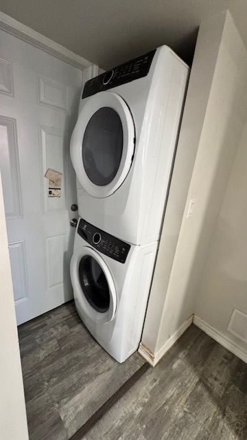 • Equipped with stainless steel fridge, stove, and stackable washer/dryer.