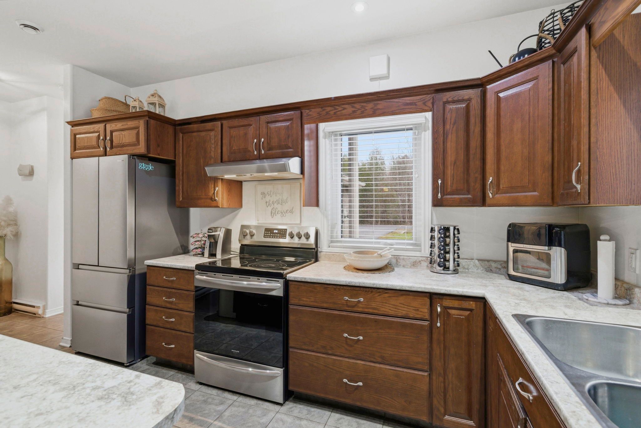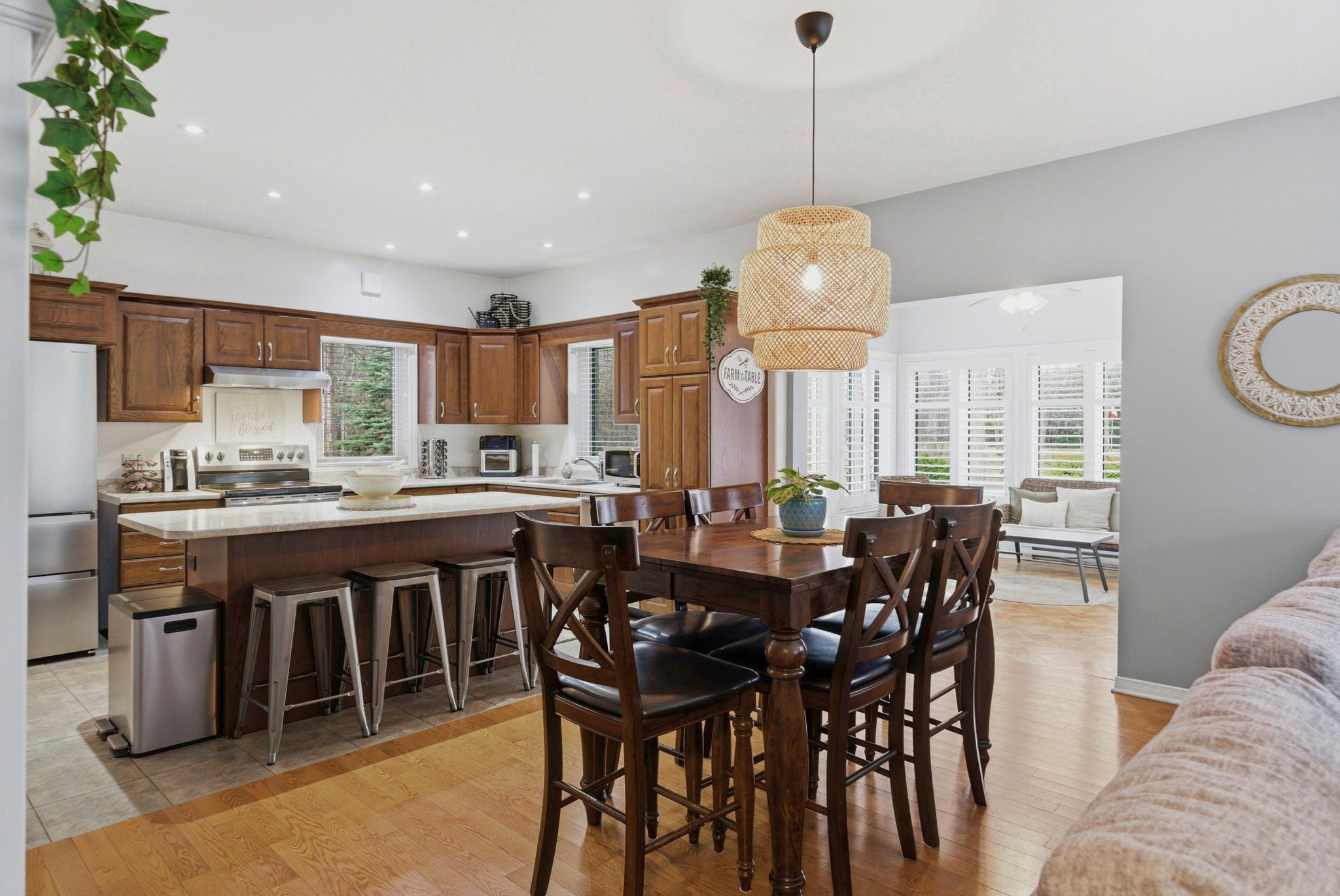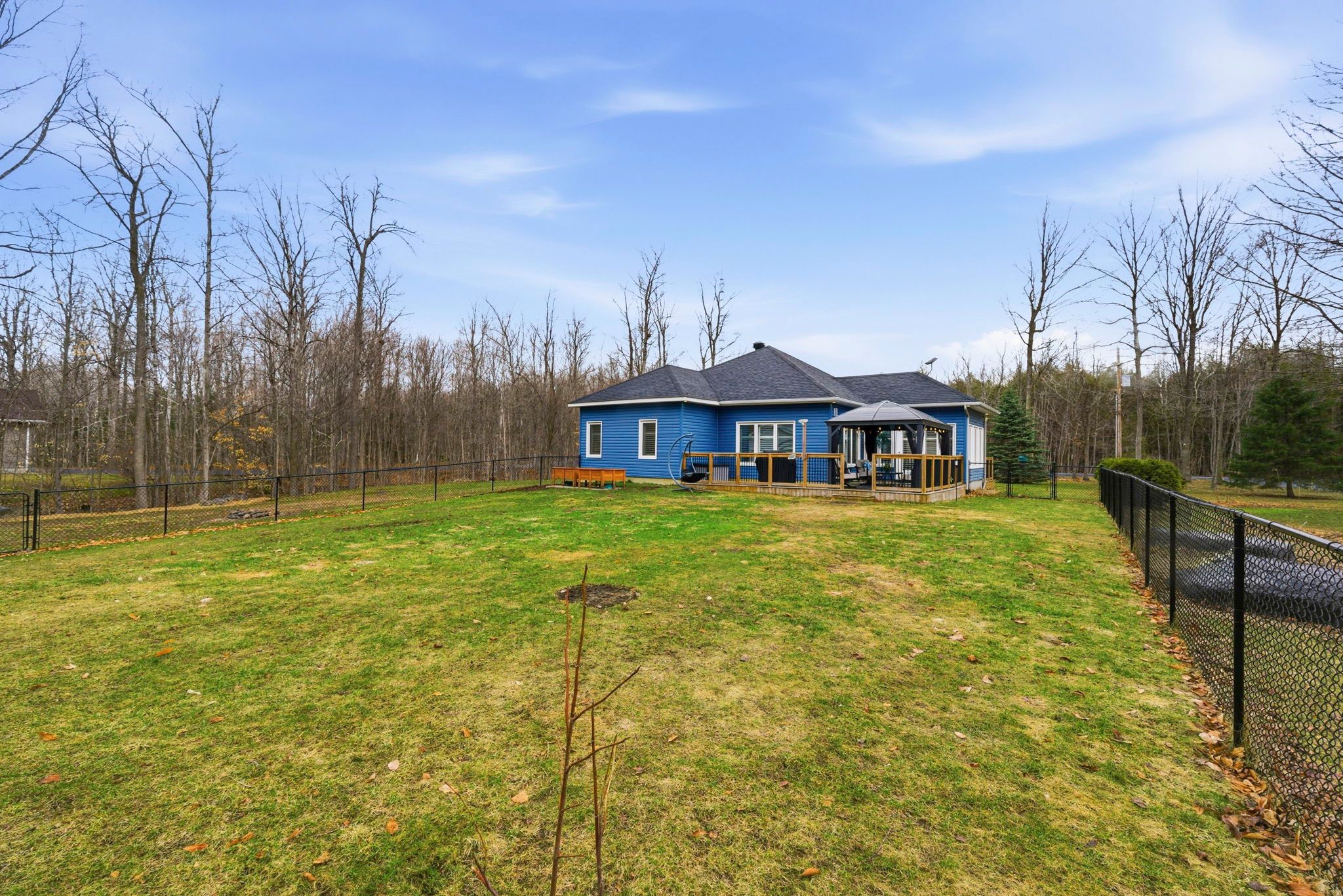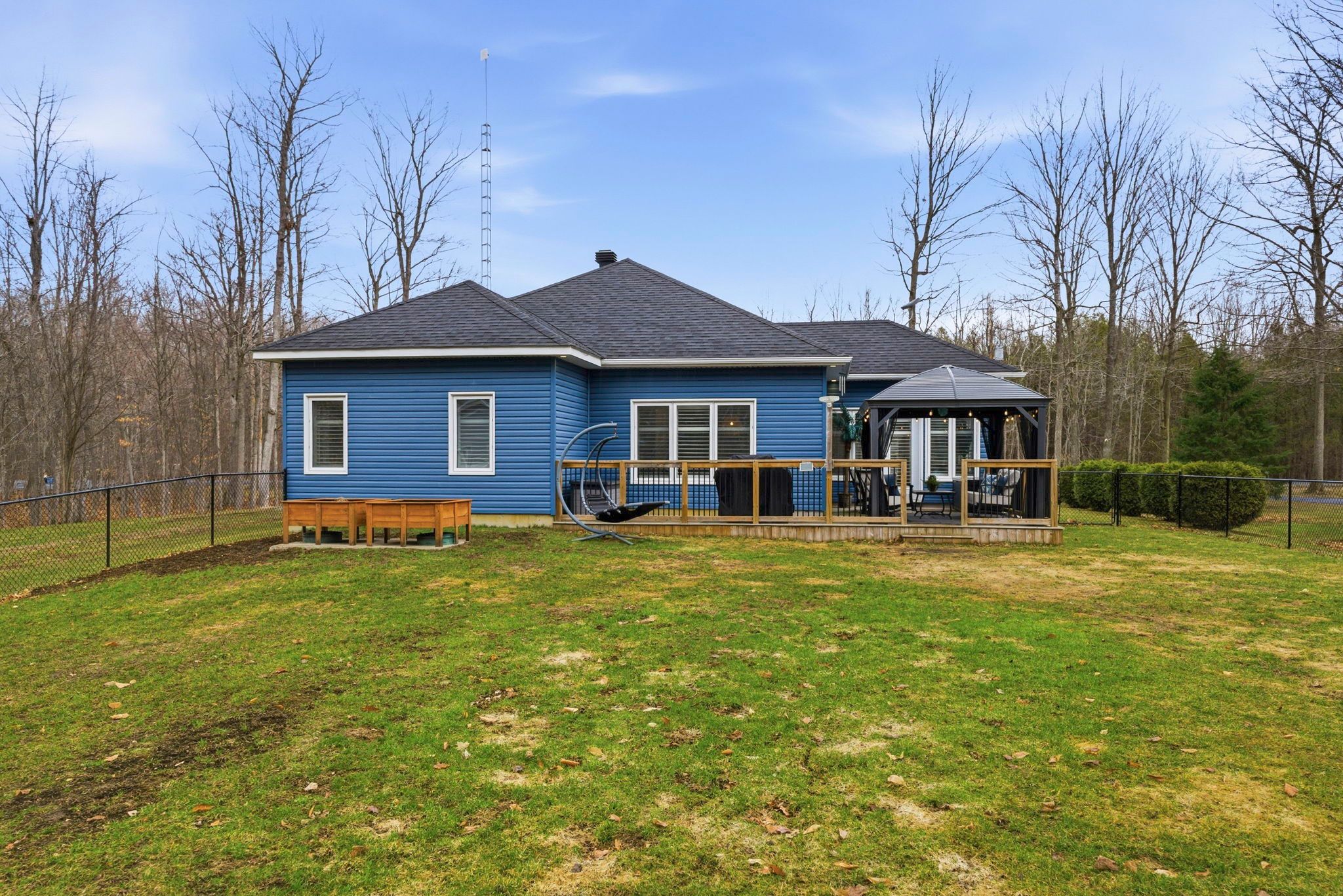 If your idea of the perfect day starts with a quiet walk through the woods and ends on the deck with a glass in hand, this might be exactly what you've been waiting for. Set on just over 2 acres this 1,450 sq ft bungalow (built in 2012) offers that balance so many people are looking for... Space, privacy, and easy, one-level living. Inside, the layout is open, bright, and functional with three bedrooms and two bathrooms, all on one floor. The oak kitchen with a large island is the kind of space that naturally becomes the heart of the home, and the main floor laundry keeps everything convenient. Hardwood and tile flooring run throughout, keeping things clean and low maintenance. The garage setup is a standout - a double oversized heated attached garage plus a separate 24 x 24 detached garage, giving you all the room you need for vehicles, hobbies, or a proper workshop. Efficiency matters here too, with a heat pump system (june 2025) handling heating and cooling. Outside is where this property really settles in. New decks (2022), a screened gazebo, and a fully fenced backyard make it easy to relax or entertain. And then there's the trail - winding through mature trees across the back half of the property - your own space to unplug and just be. Nothing to fix, nothing to figure out. Just move in and enjoy it.