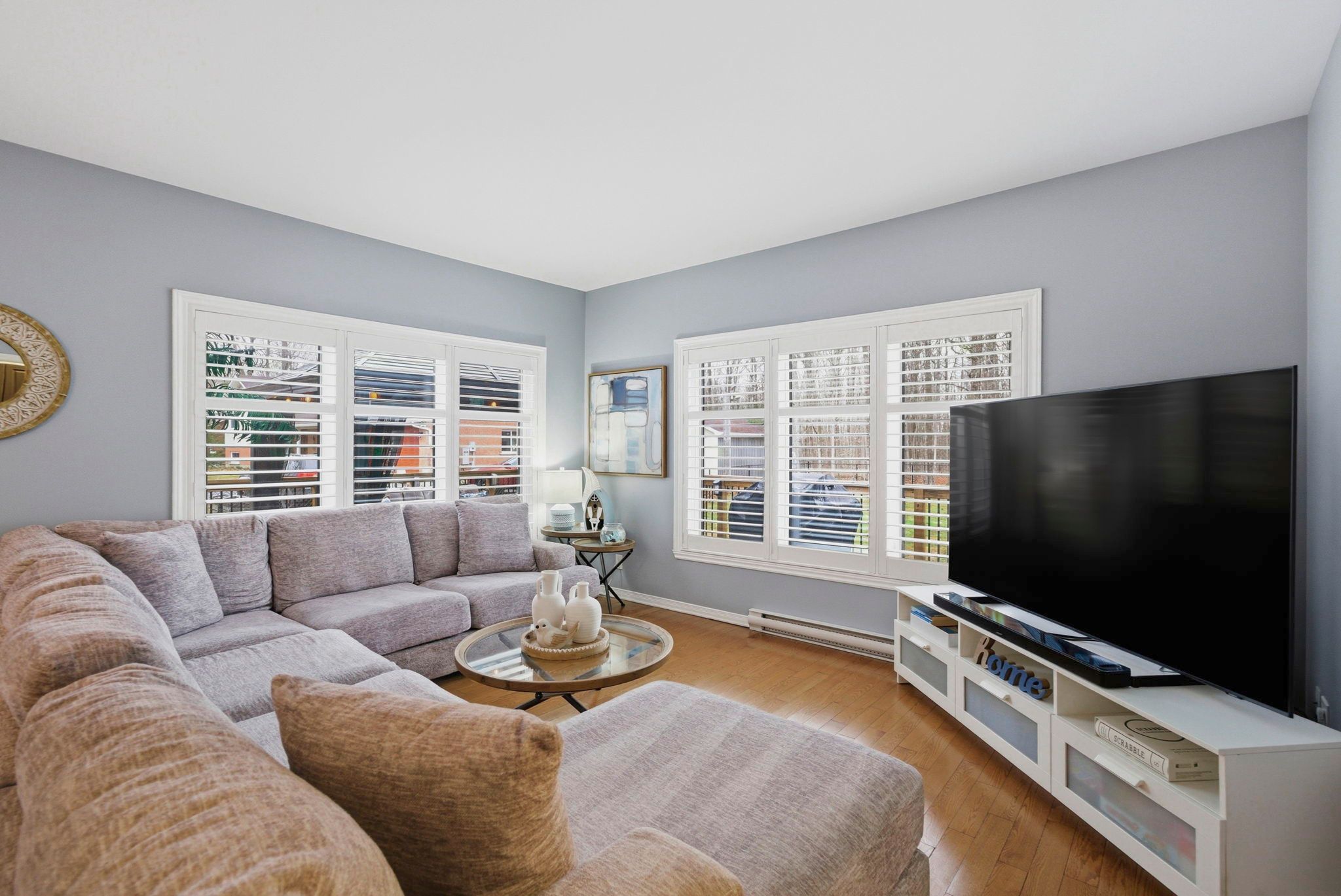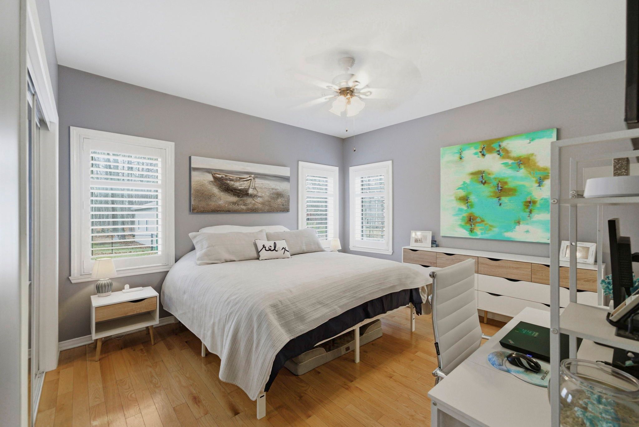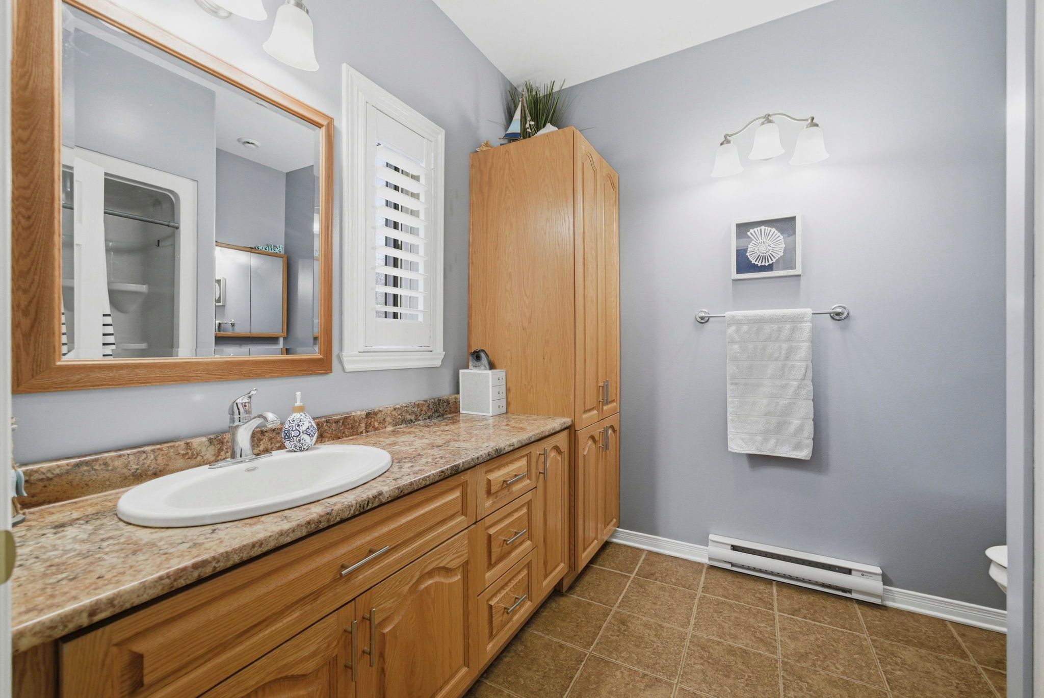 • Open and bright layout with three bedrooms and two bathrooms on one floor.