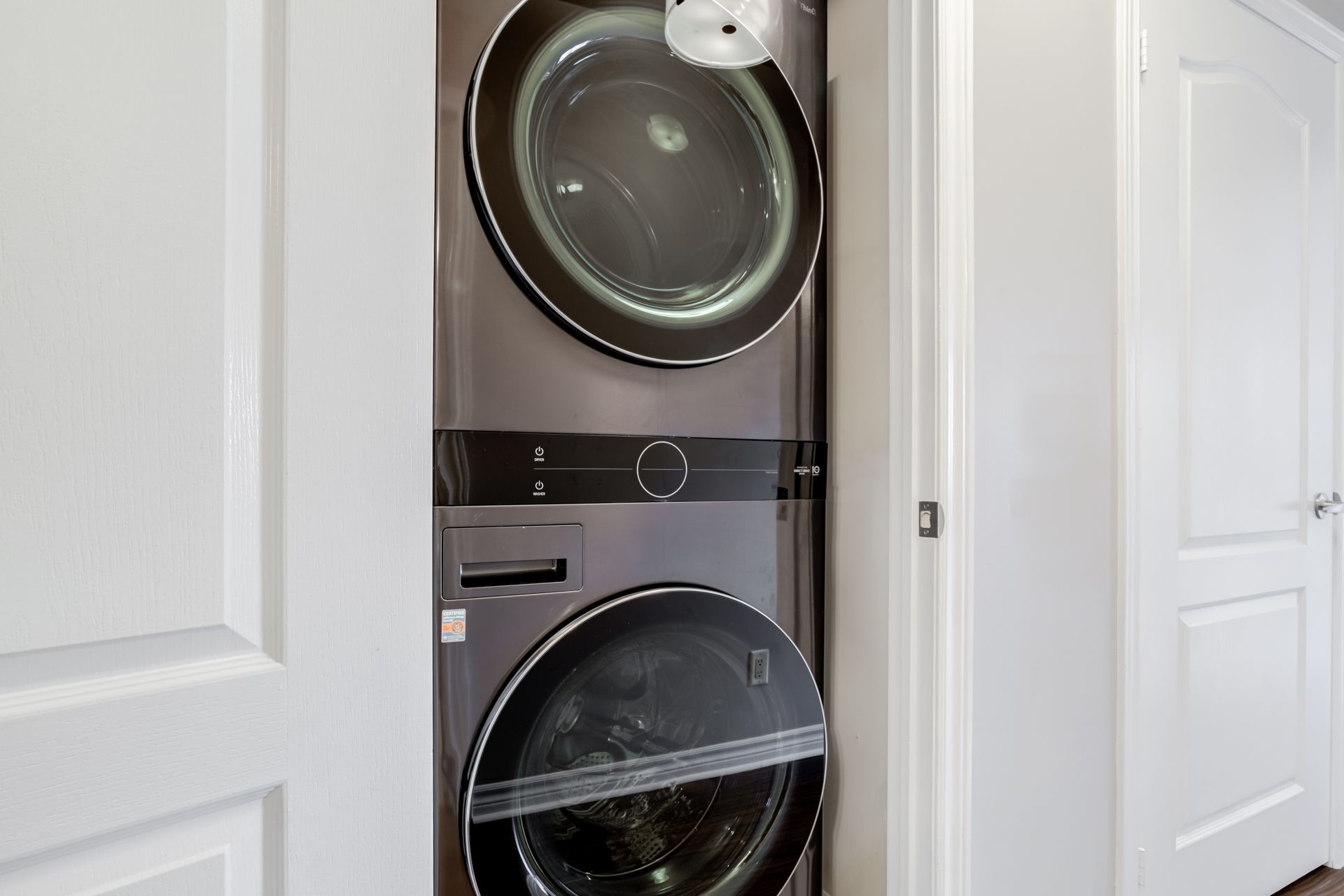 • Chef-inspired kitchen with stainless steel appliances and quartz countertops.