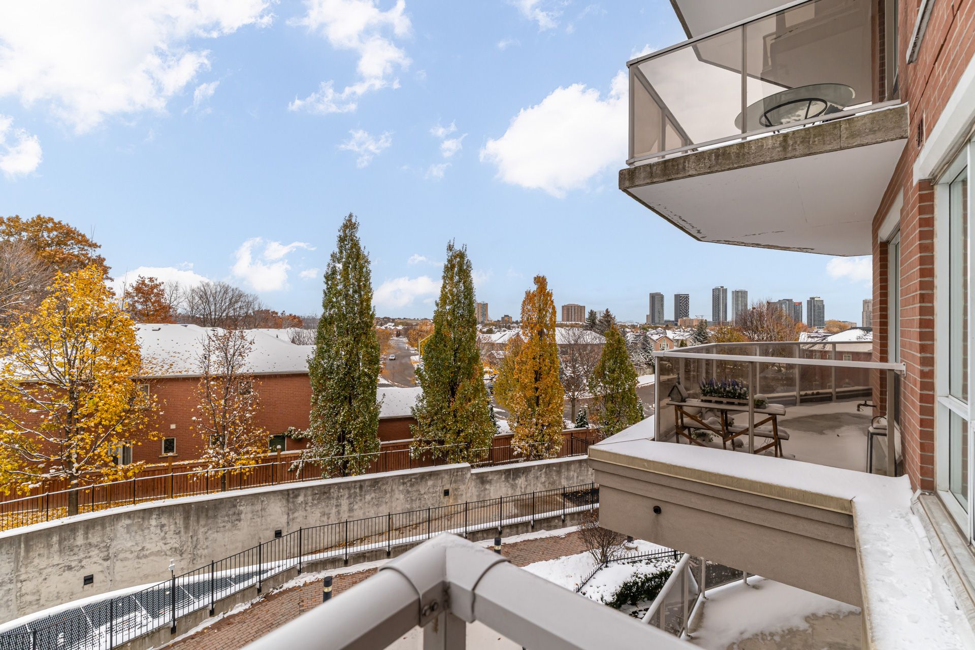 Welcome to 483 faith drive, unit 304! Experience refined condominium living at woods end condominiums-a prestigious, meticulously maintained residence nestled among mature trees that provide an atmosphere of peace, privacy, and natural beauty. This exceptional two-level suite offers a thoughtfully designed layout with abundant natural light throughout. The modern, chef-inspired kitchen with stainless steel appliances and quartz countertops flows seamlessly into an open-concept living and dining area, perfect for both entertaining and everyday comfort. This 2 bedroom, 2 bathroom comes with 1 parking spot + 1 locker! Step outside to enjoy two private balconies-one on the main floor equipped with a gas bbq hookup and another on the upper level, ideal for quiet relaxation. Residents of woods end enjoy a wealth of premium amenities, including concierge and security services, ample visitor parking, guest suites for overnight stays, a party and meeting room, and a bright, well-equipped fitness facility. Don't miss the opportunity to make this beautiful residence your new home!