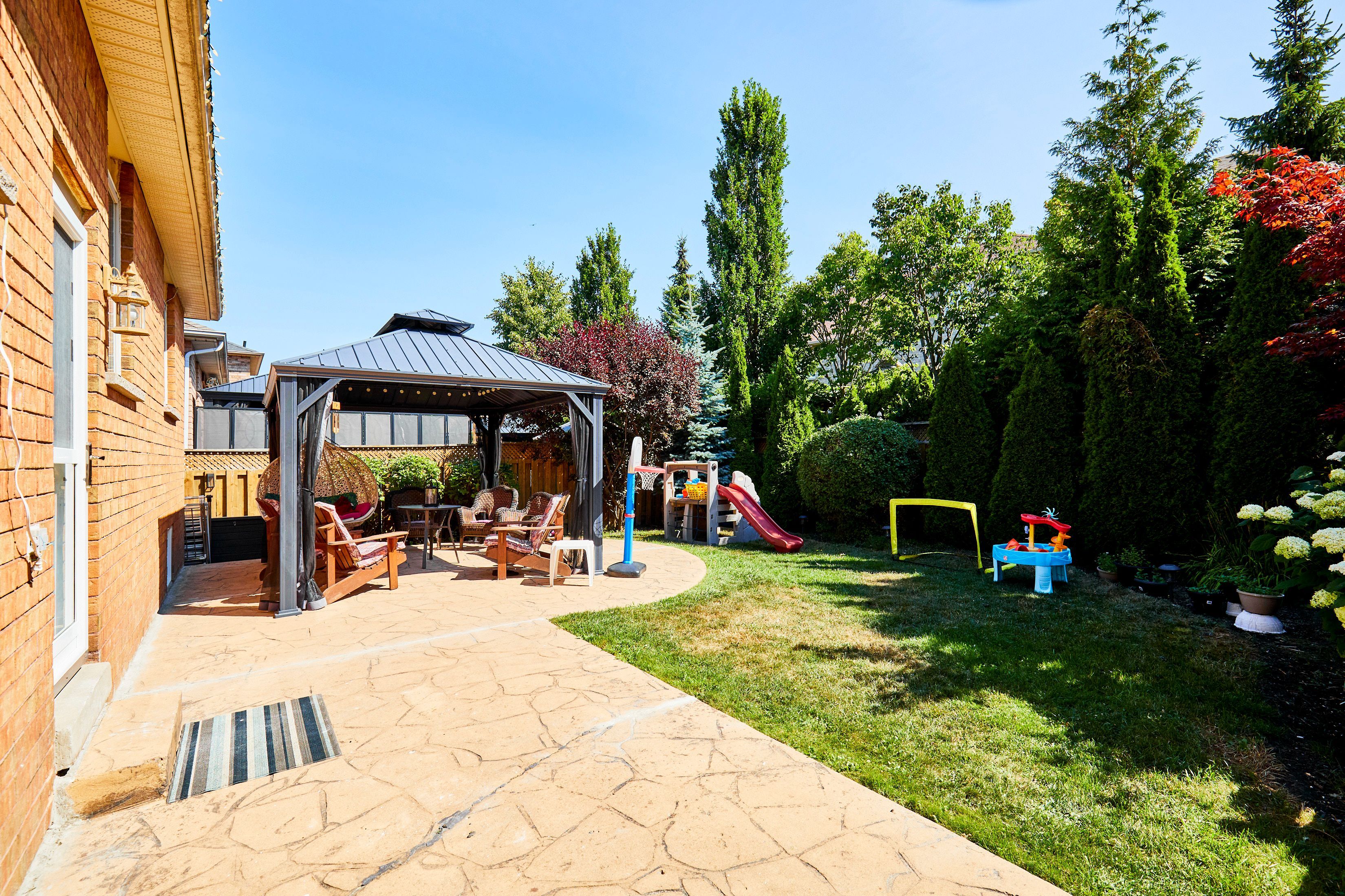 • Professionally landscaped front and back yard with elegant interlocking stonework.