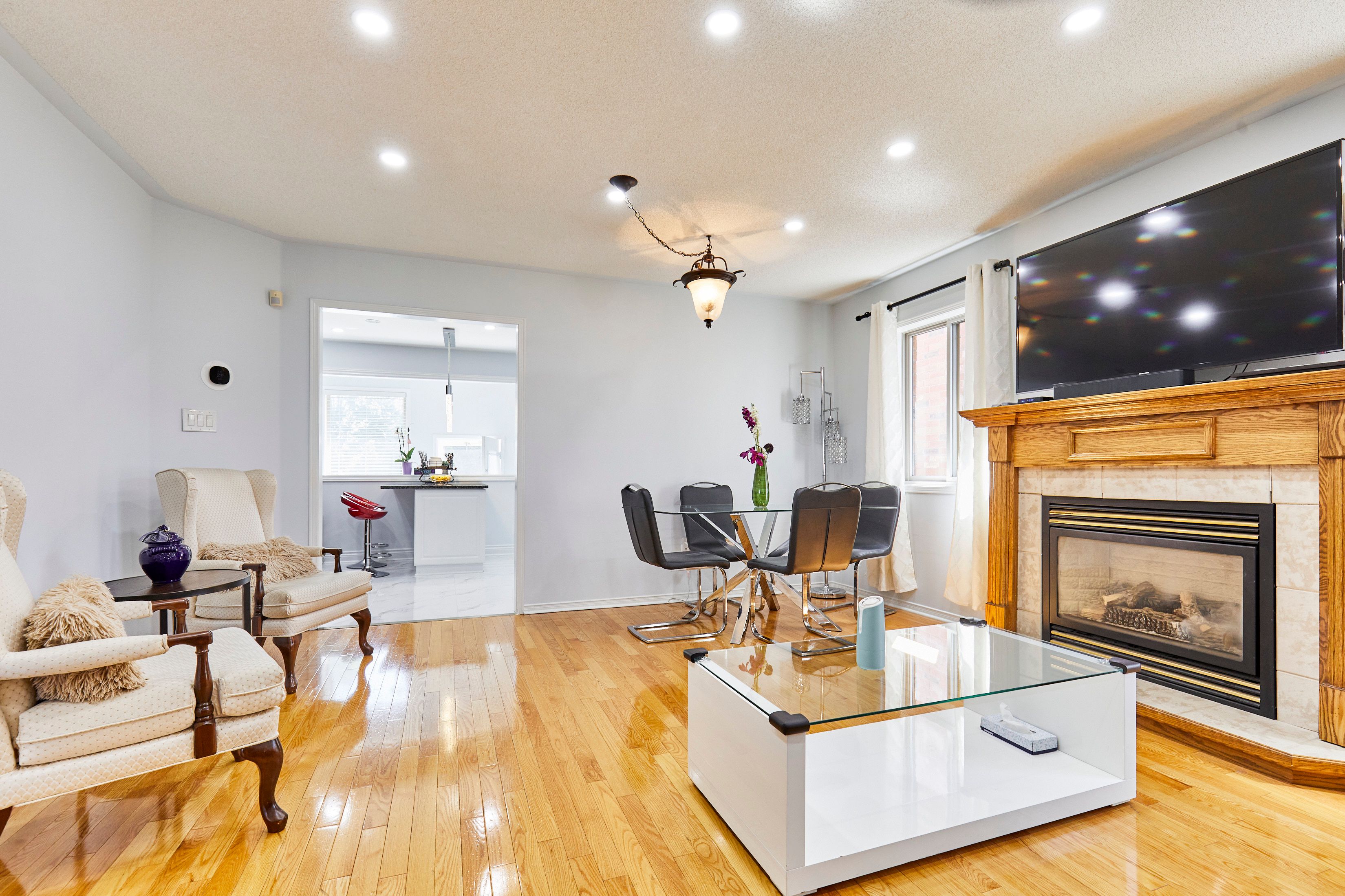 • Main level features hardwood flooring, pot lights, and a cozy fireplace.