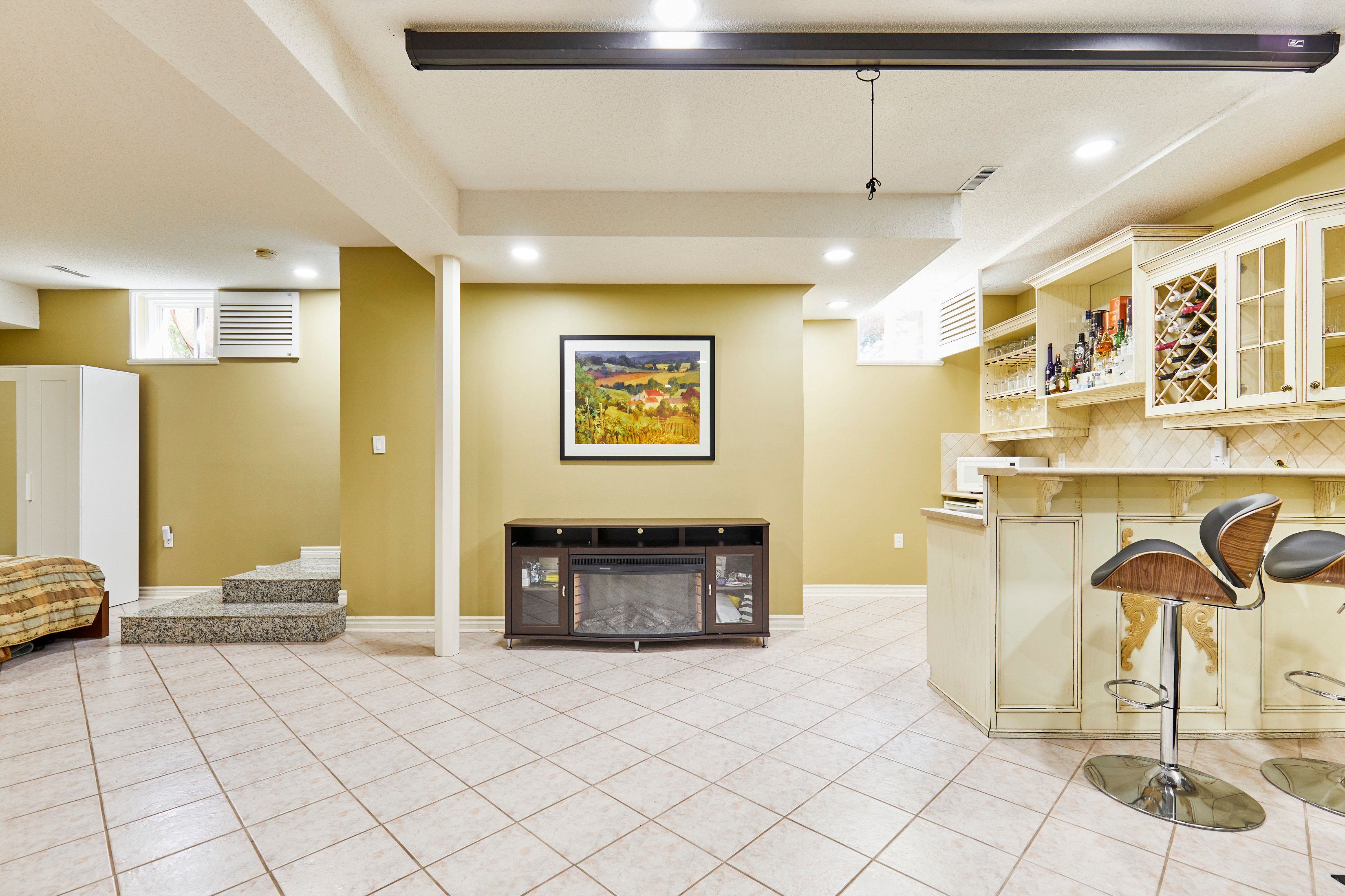 • Finished basement includes a second fireplace and full kitchen, ideal for guests.