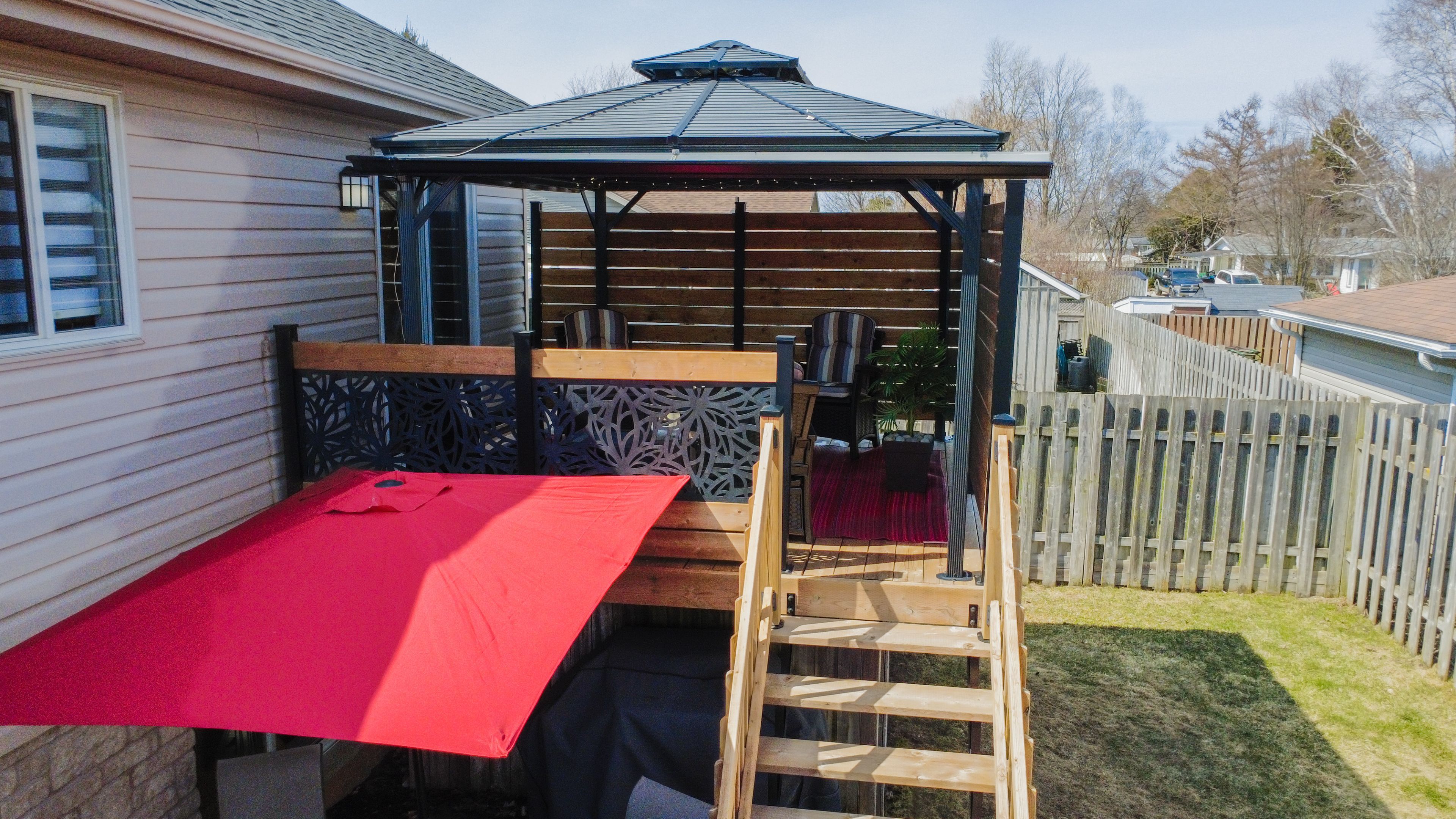 • Outdoor deck with gazebo and fenced yard for privacy and gatherings.