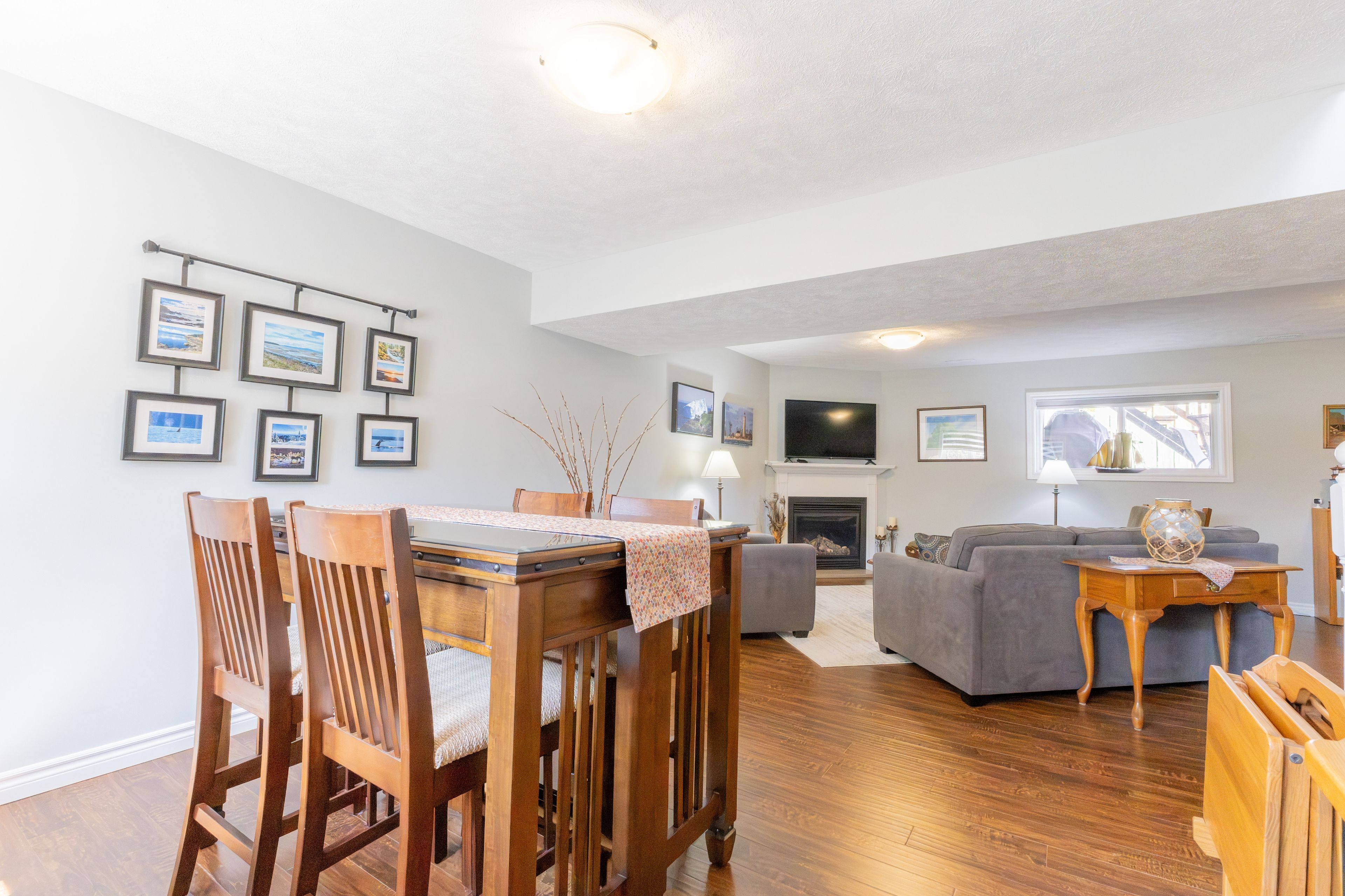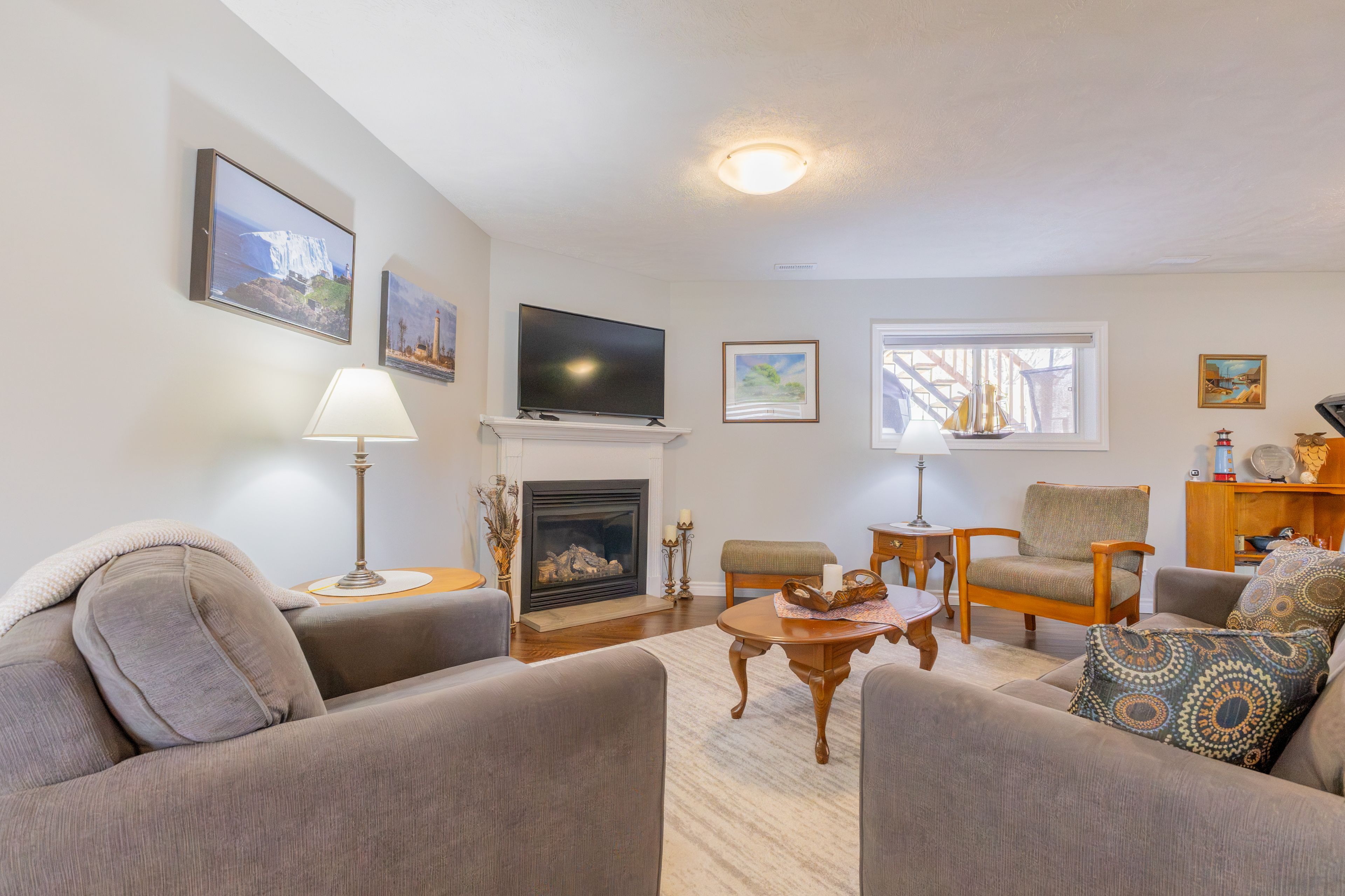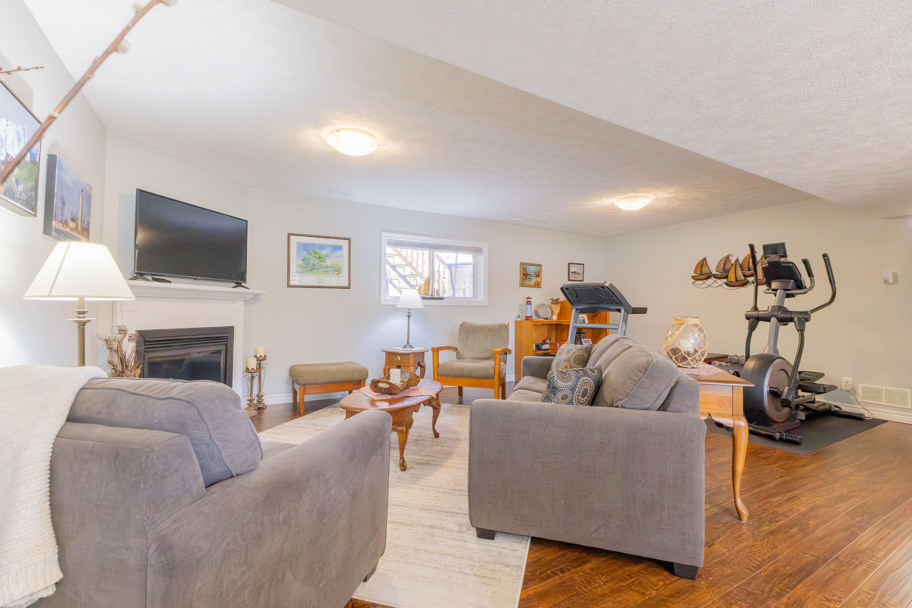 • Finished lower level with gas fireplace, additional bedrooms, and flexible layout.
