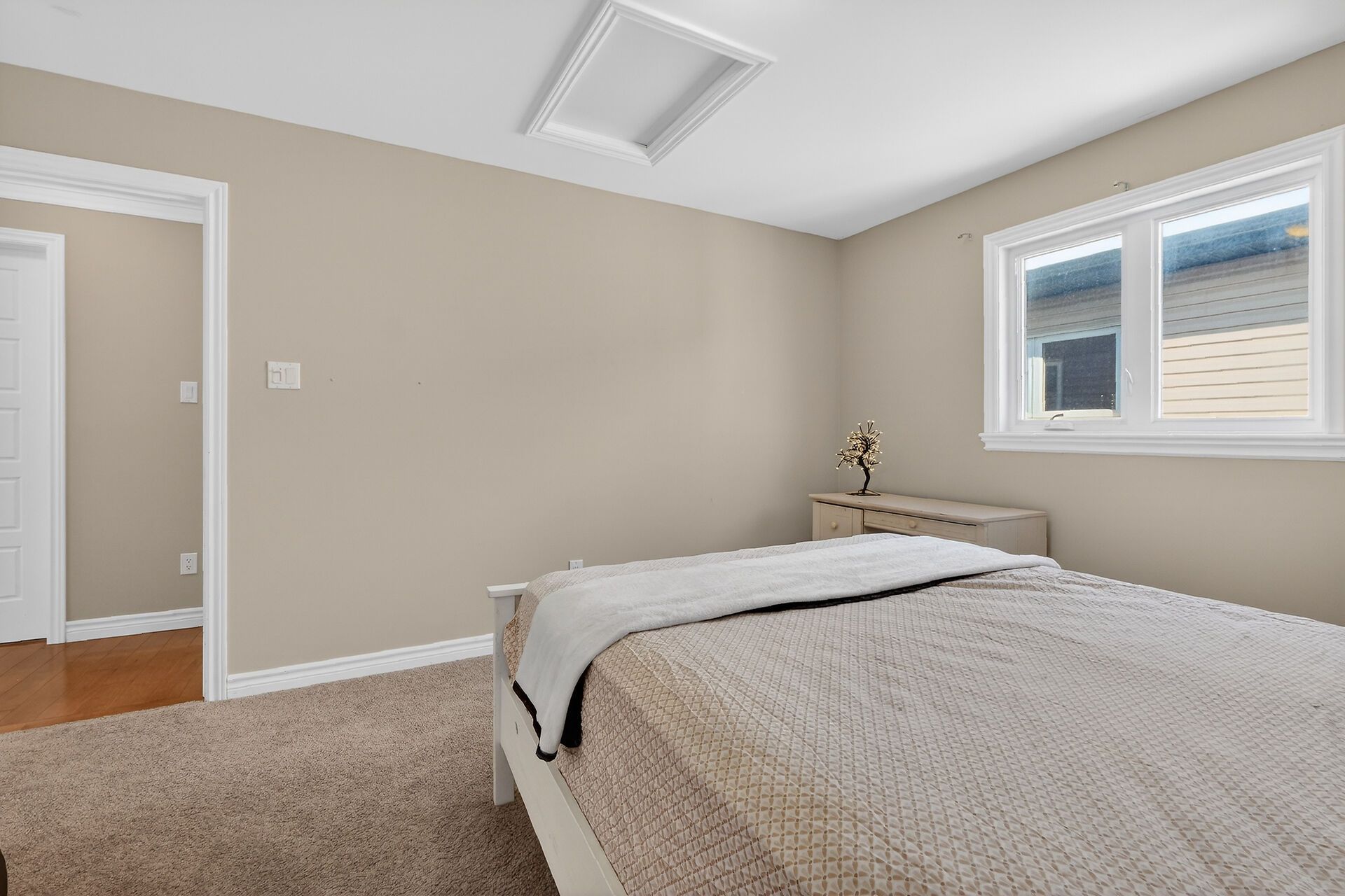 Welcome to this spectacular family home featuring a double insulated garage, set on a premium lot backing onto a nature trail and expansive pie-shaped lots. Freshly painted throughout, this home features 3+1 spacious bedrooms with a cathedral-ceiling open loft on the upper level. Upon entry, the foyer offers a separate walk-in closet, ideal for coats and shoe storage. Hardwood and ceramic flooring throughout the open-concept main floor with 9-ft ceilings, a generous living room, and a chef's dream kitchen with corner pantry. The primary bedroom includes a walk-in closet. The fenced backyard features a wooden deck, perfect for outdoor enjoyment. The finished basement offers a recreation room painted in black, ideal for a tv or media room, stain-resistant carpet, a third full bathroom, and a fourth bedroom