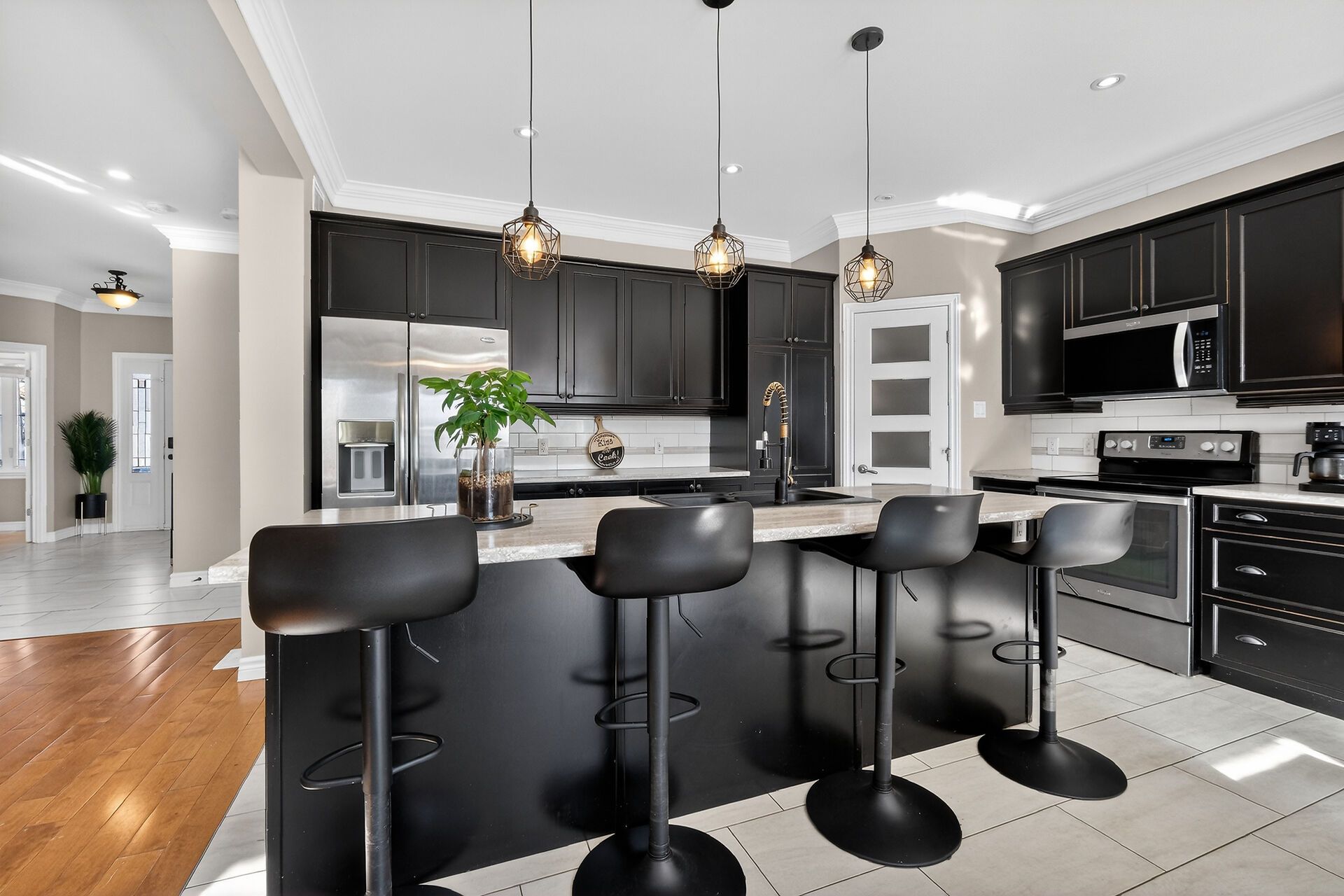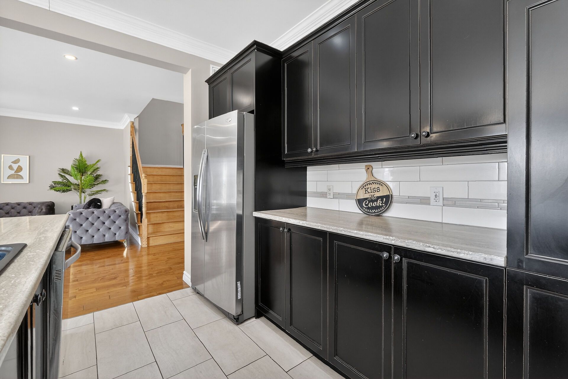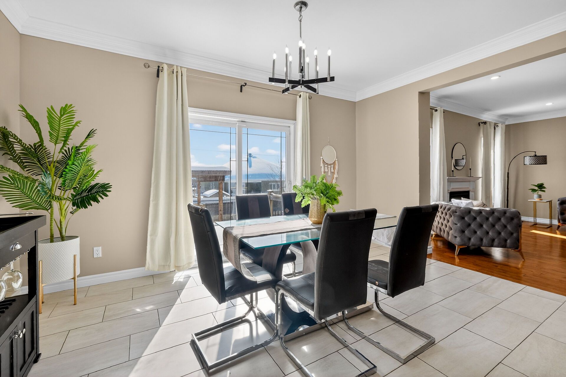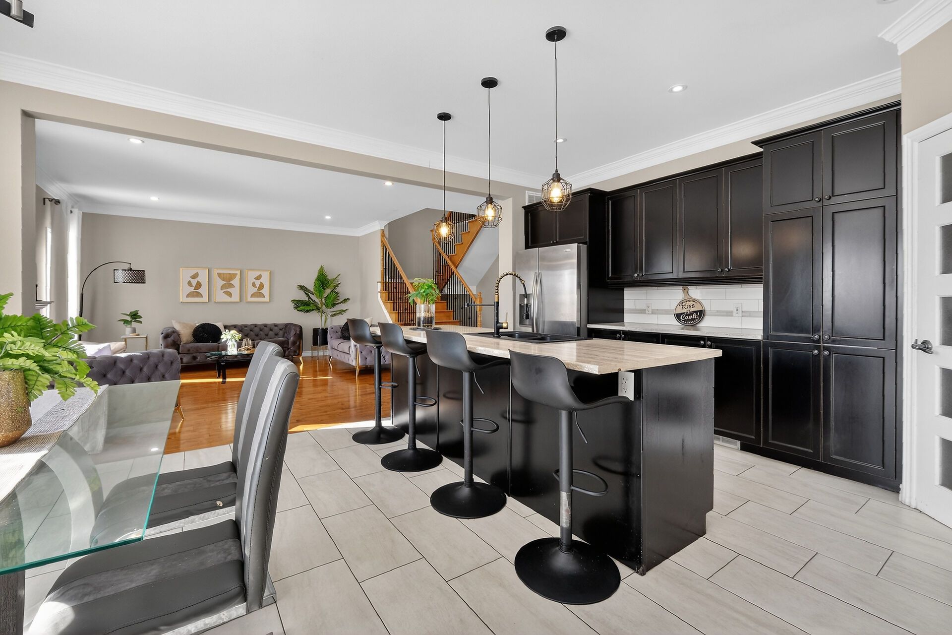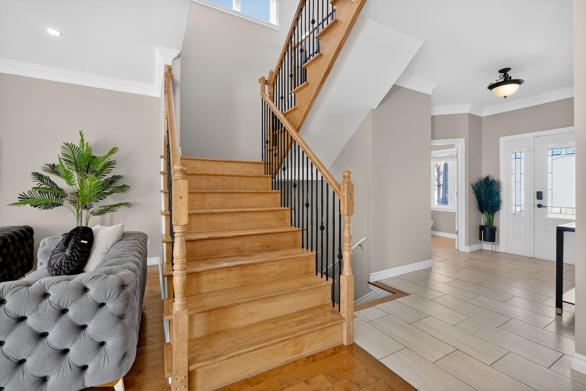 • Spacious open-concept main level with hardwood floors and bright living room.
