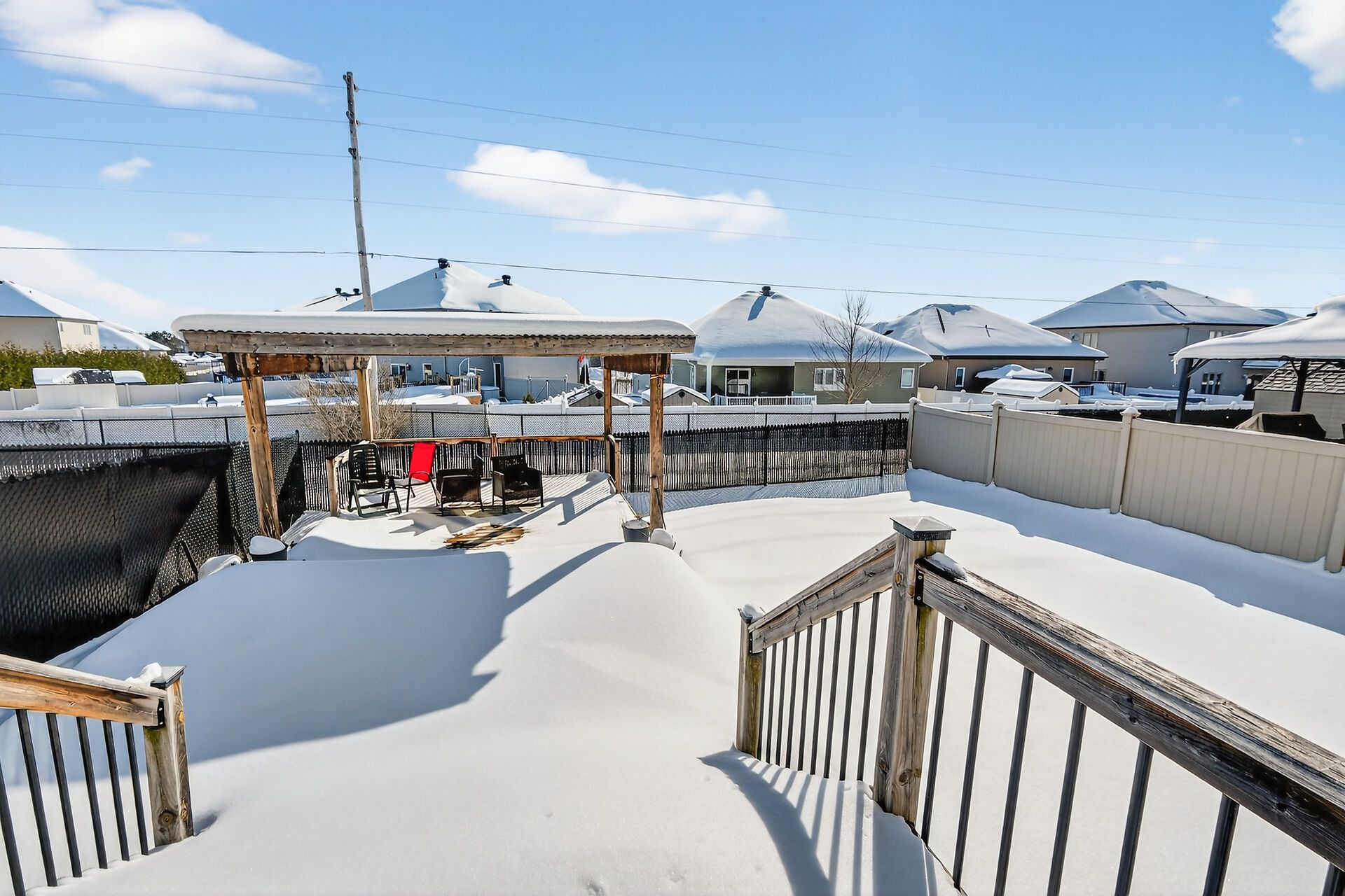 • Large fenced backyard with deck, great for outdoor gatherings and relaxation.