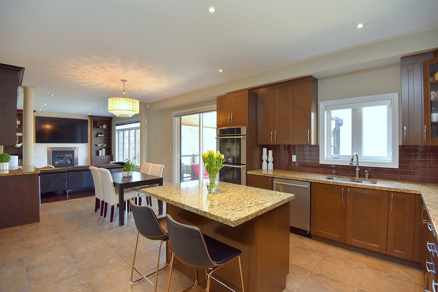• Chef's kitchen features modern appliances and a large island.