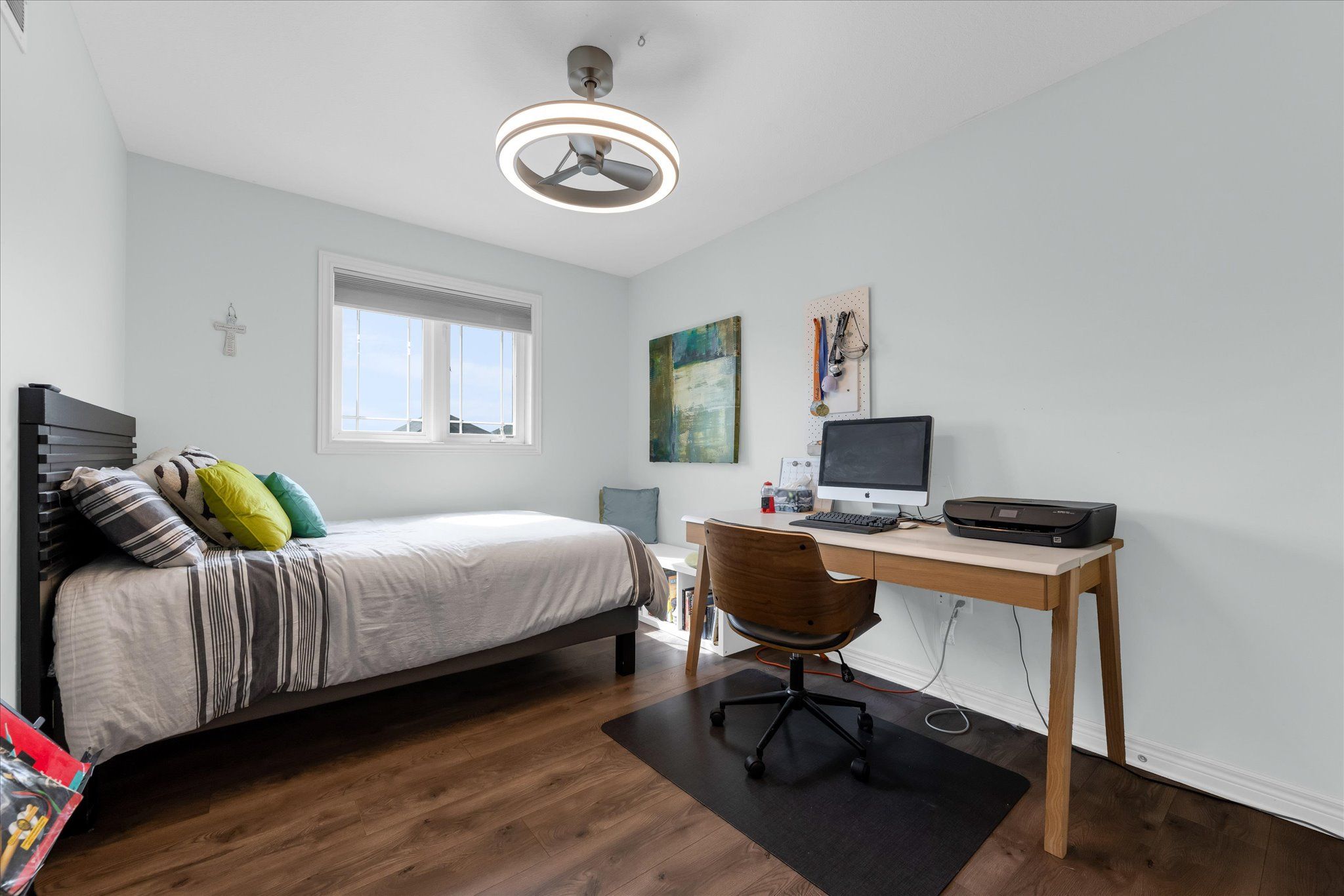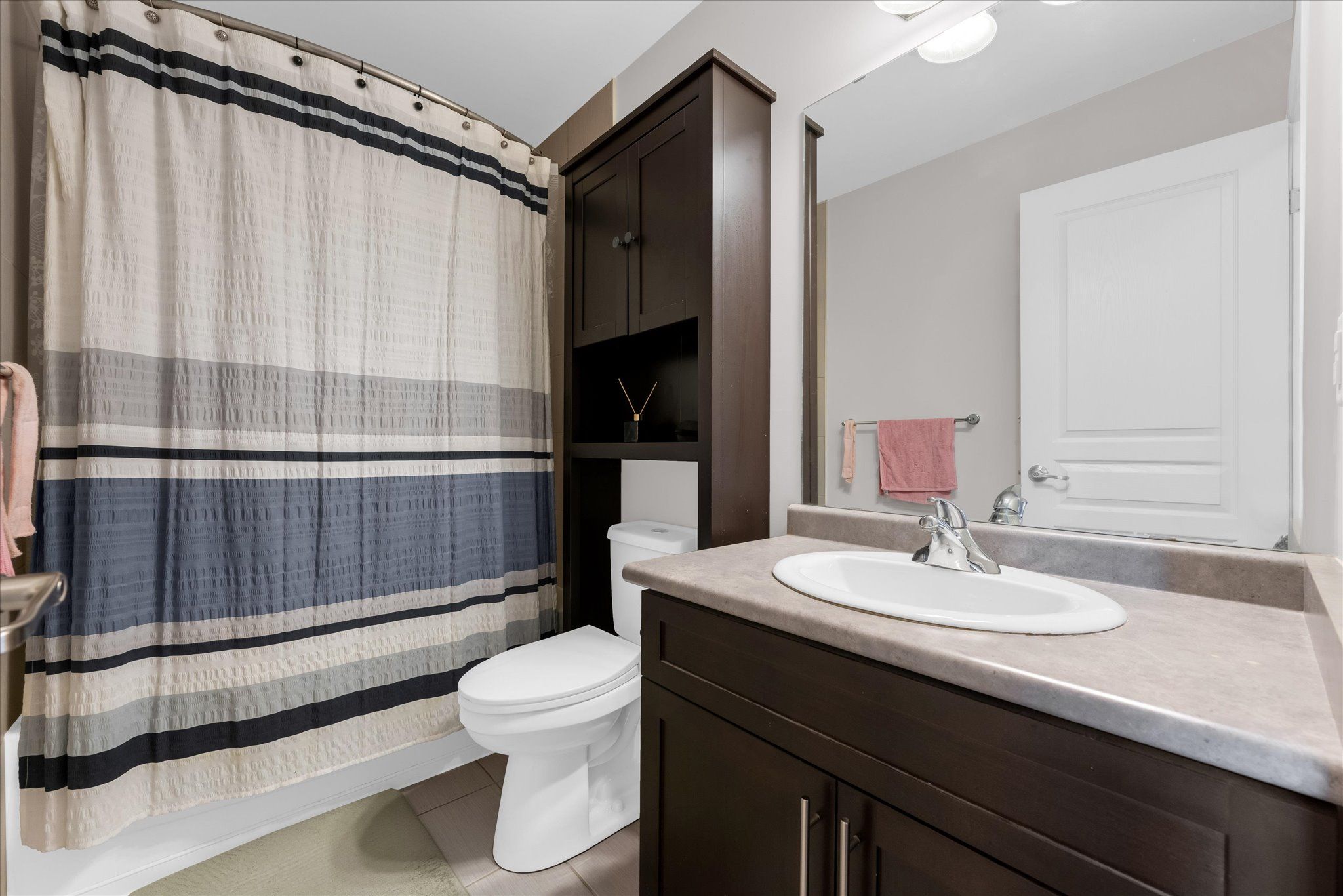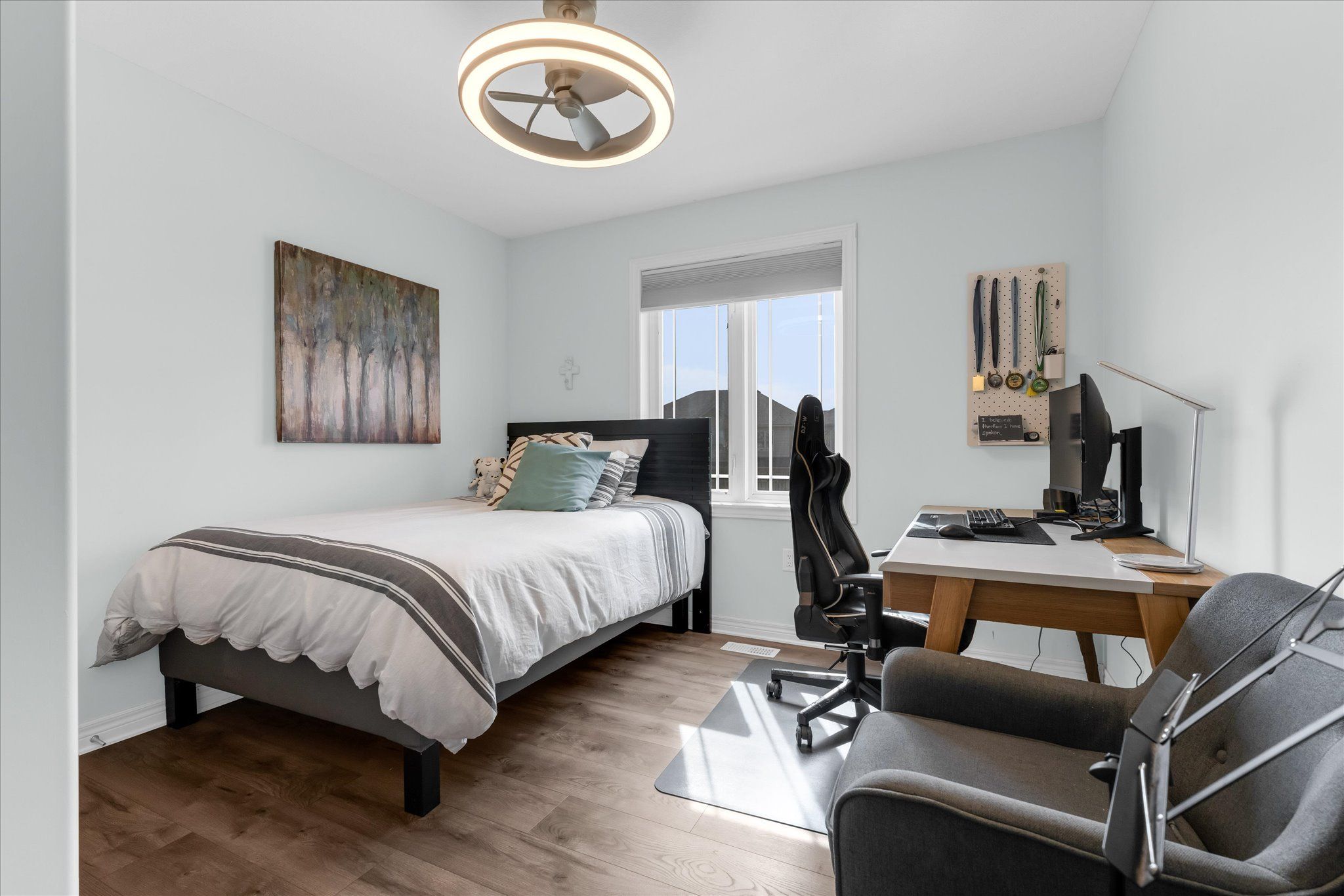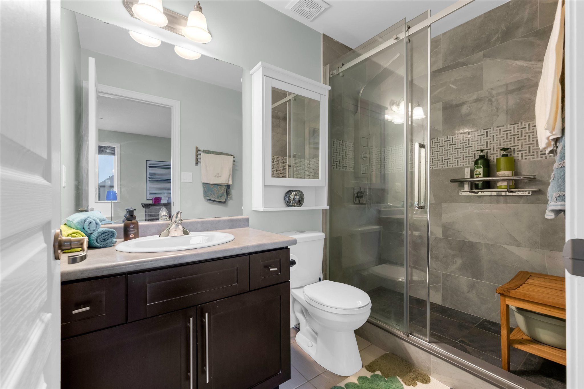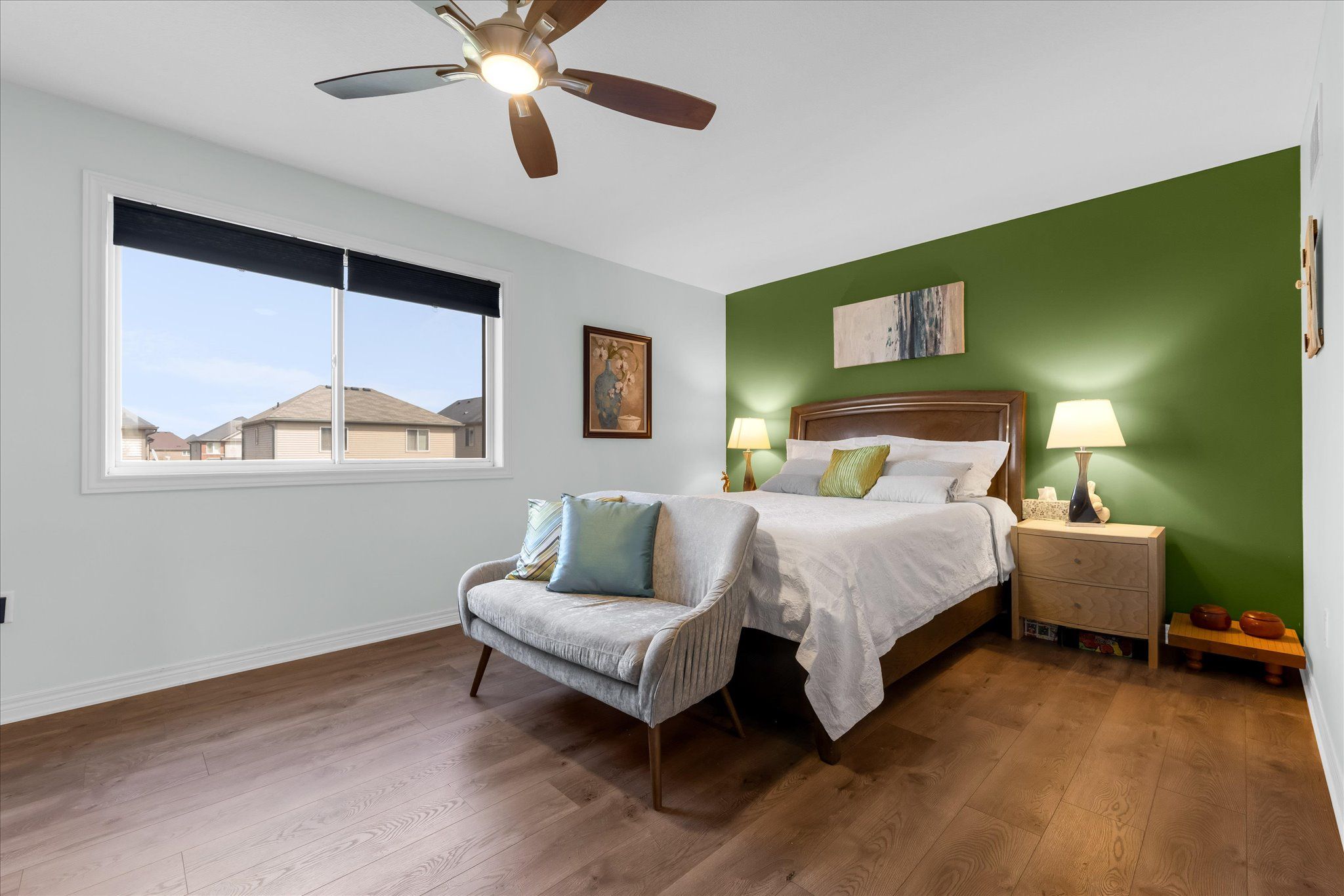 • Three spacious bedrooms and two full bathrooms on the upper floor.