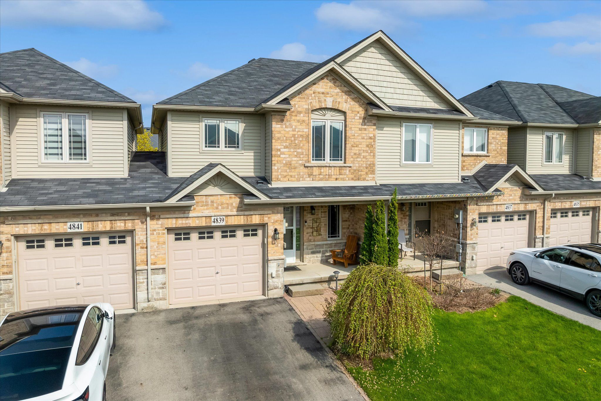 Welcome to 4839 adam court. This unique townhouse design, attached only by the garage on one side, offers the feel of a semi-detached home and is ideally situated in a family-friendly neighbourhood, conveniently located close to all amenities and within walking distance to schools. The thoughtfully designed main floor features a functional open-concept layout, highlighted by a custom built-in dining area that seamlessly flows into the spacious family room at the rear of the home. This inviting space offers a walk-out to the fully fenced backyard-perfect for entertaining, children, pets, and enjoying private outdoor living. Upstairs, you'll find three generously sized bedrooms and two full bathrooms. The primary suite provides a private retreat, complete with a well-appointed ensuite and a walk-in closet. The additional bedrooms offer flexibility for growing families, guests, or a home office, and are serviced by a conveniently located full bath. The fully finished basement extends the living space, offering endless possibilities for a recreation room, home gym, or media area, and is complete with a convenient 2-piece bathroom. Additional features include parking for three vehicles, with a private single-car garage and a driveway accommodating two additional cars. Complete with a brand new furnace you can just unpack, enjoy and call 4839 adam court home!
